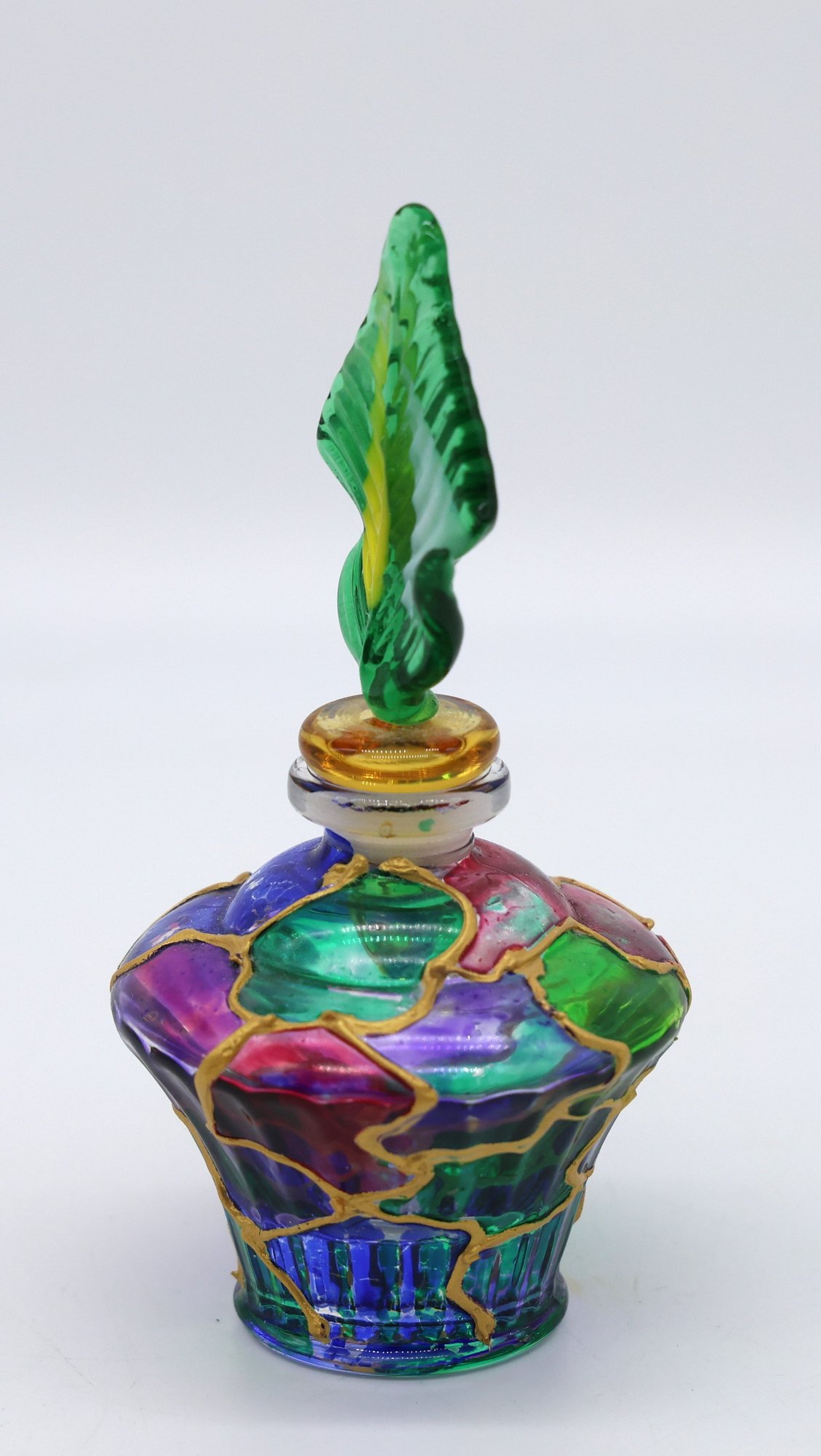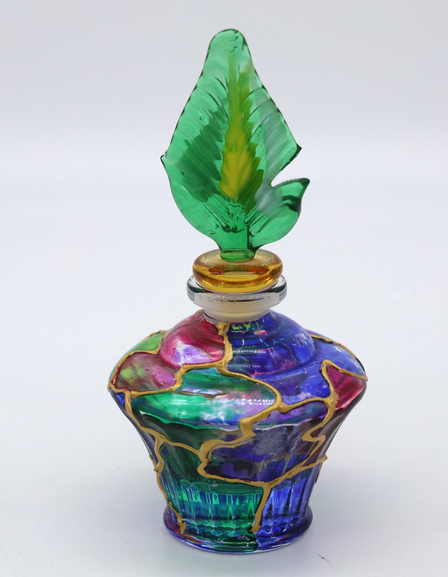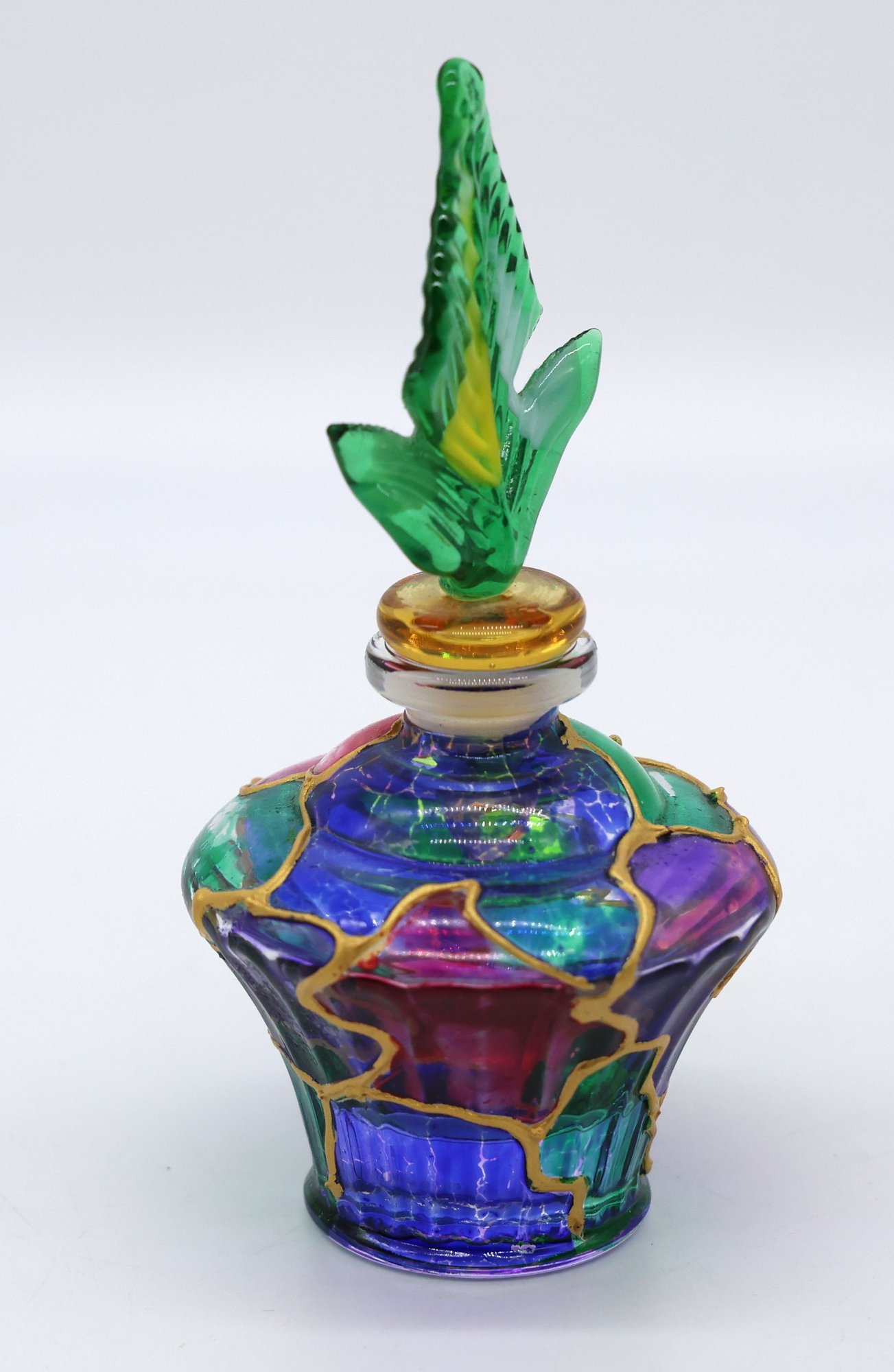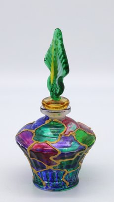 Parfume bottle with top accented with gold, 4.5"H