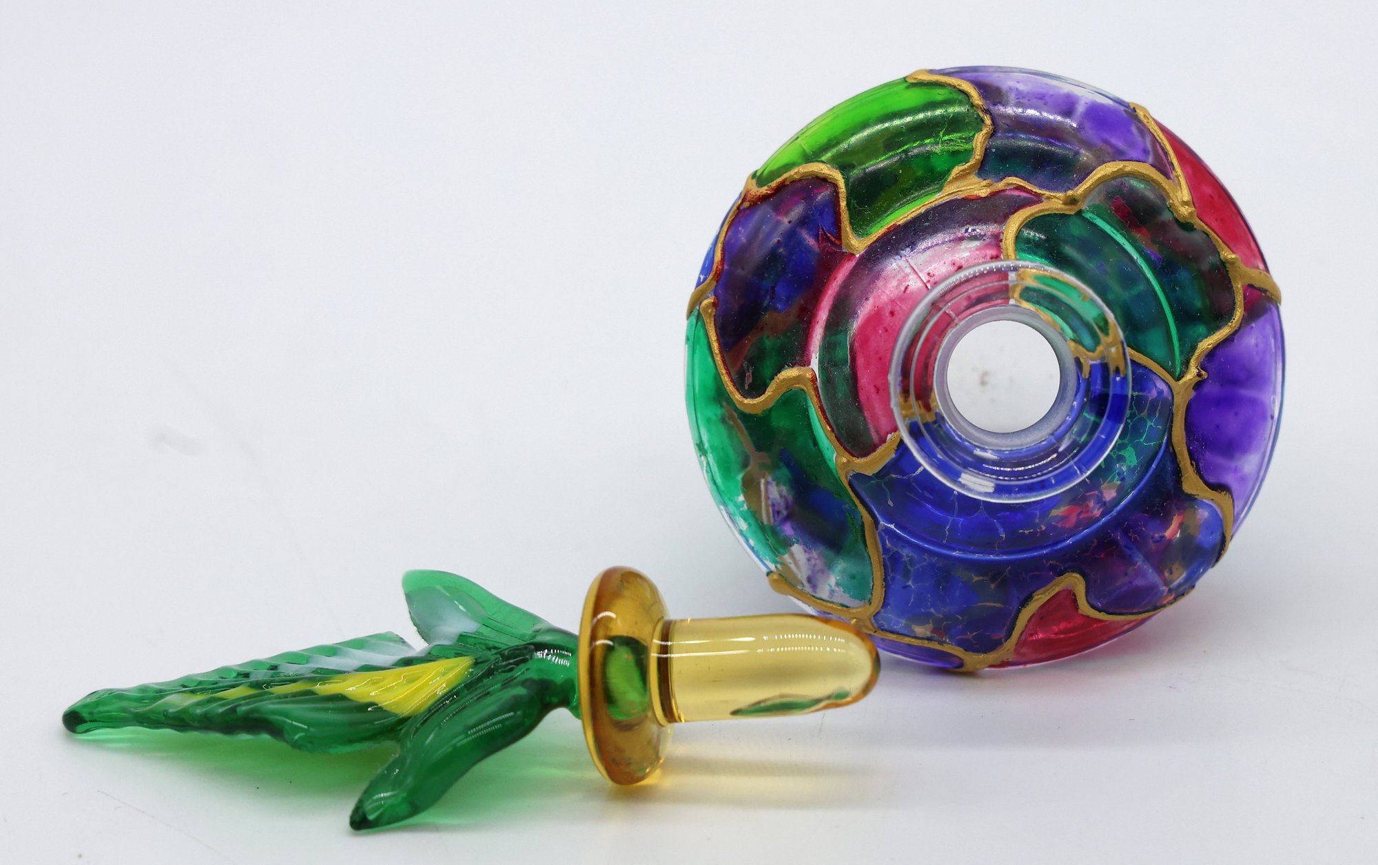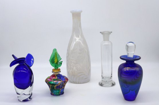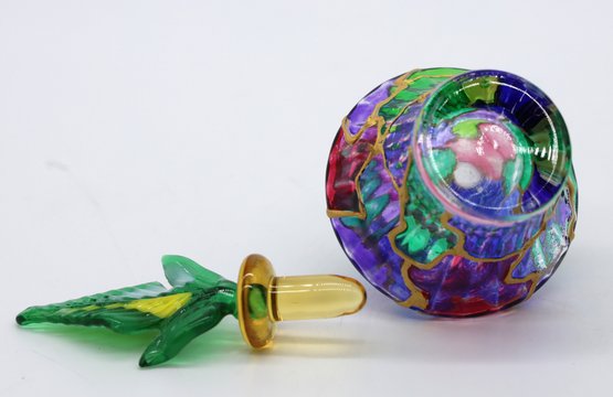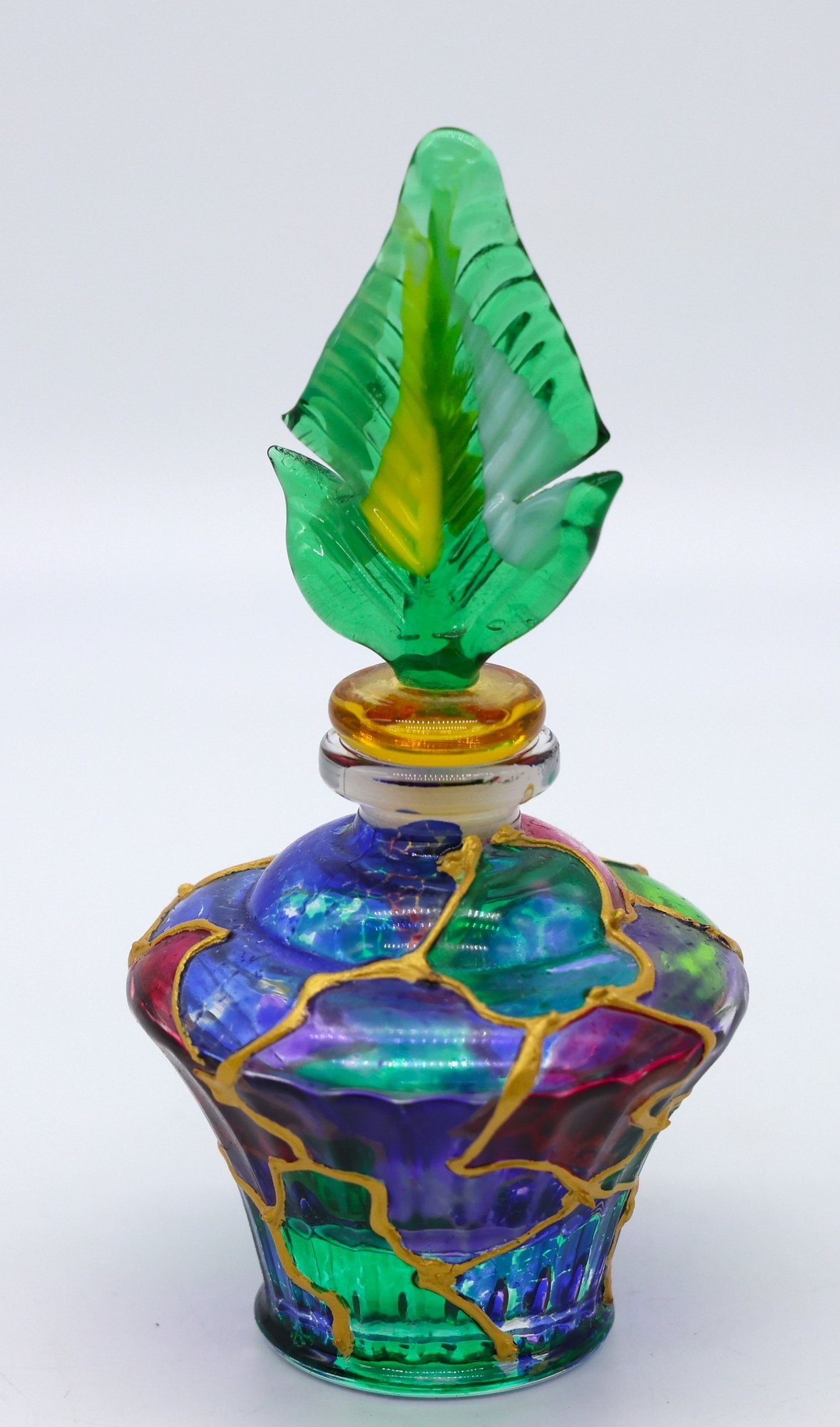 Parfume bottle with top accented with gold, 4.5"H