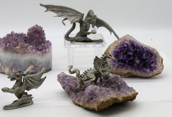 Amethyst geode with dragon 4.5"W