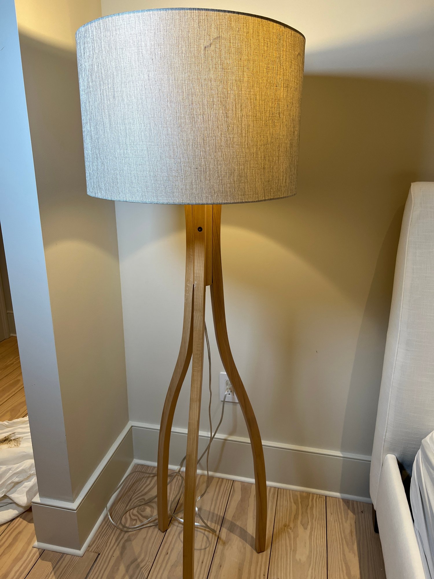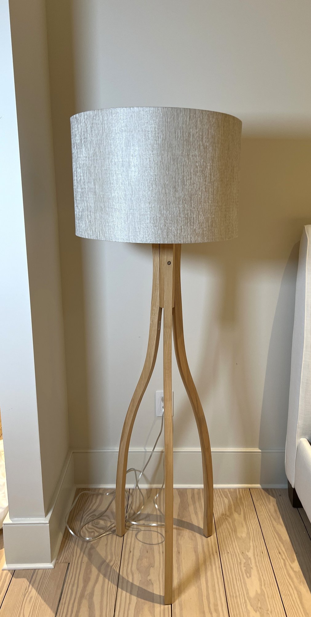 The Alton floor lamp with natural finish wood base