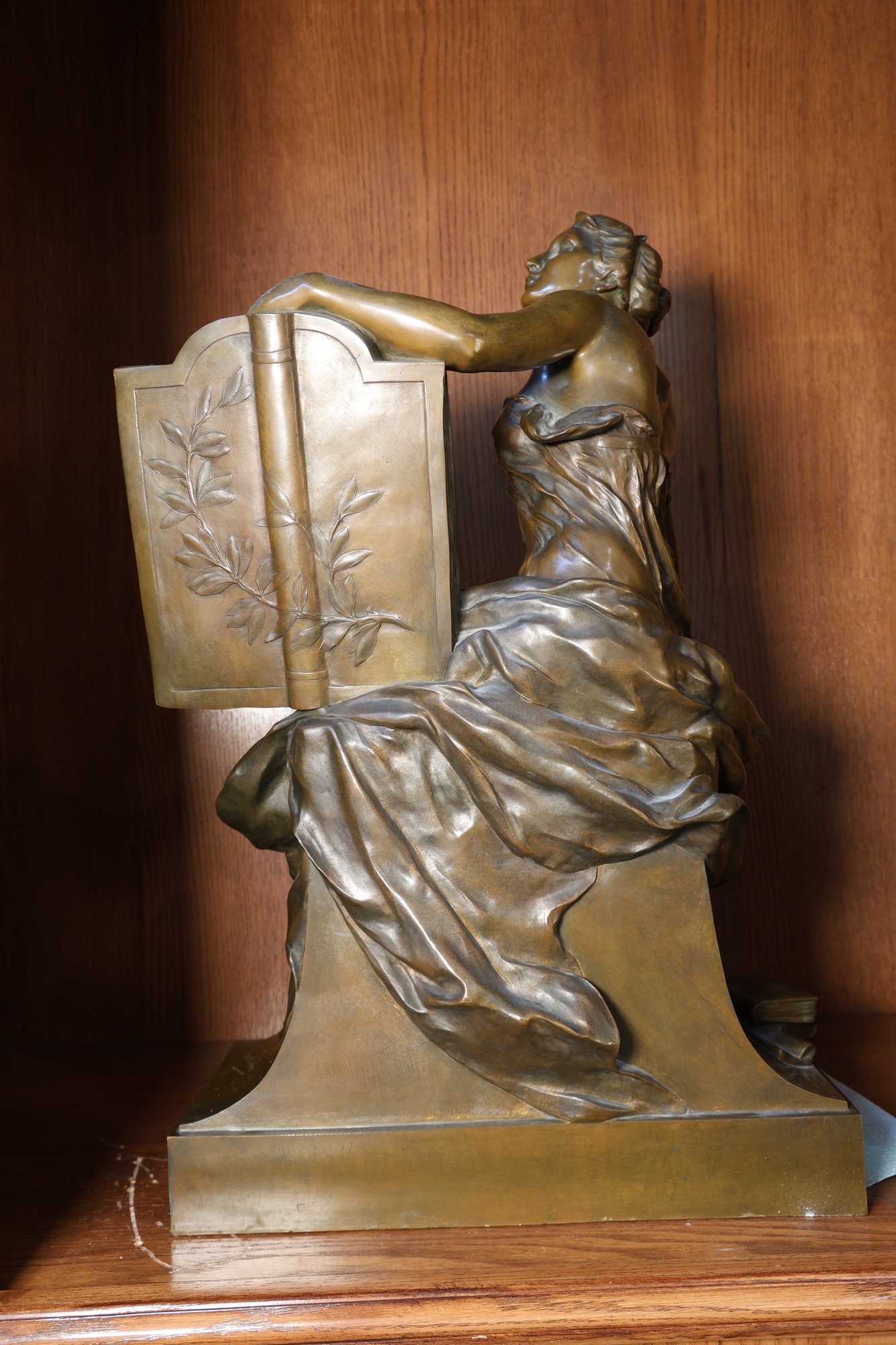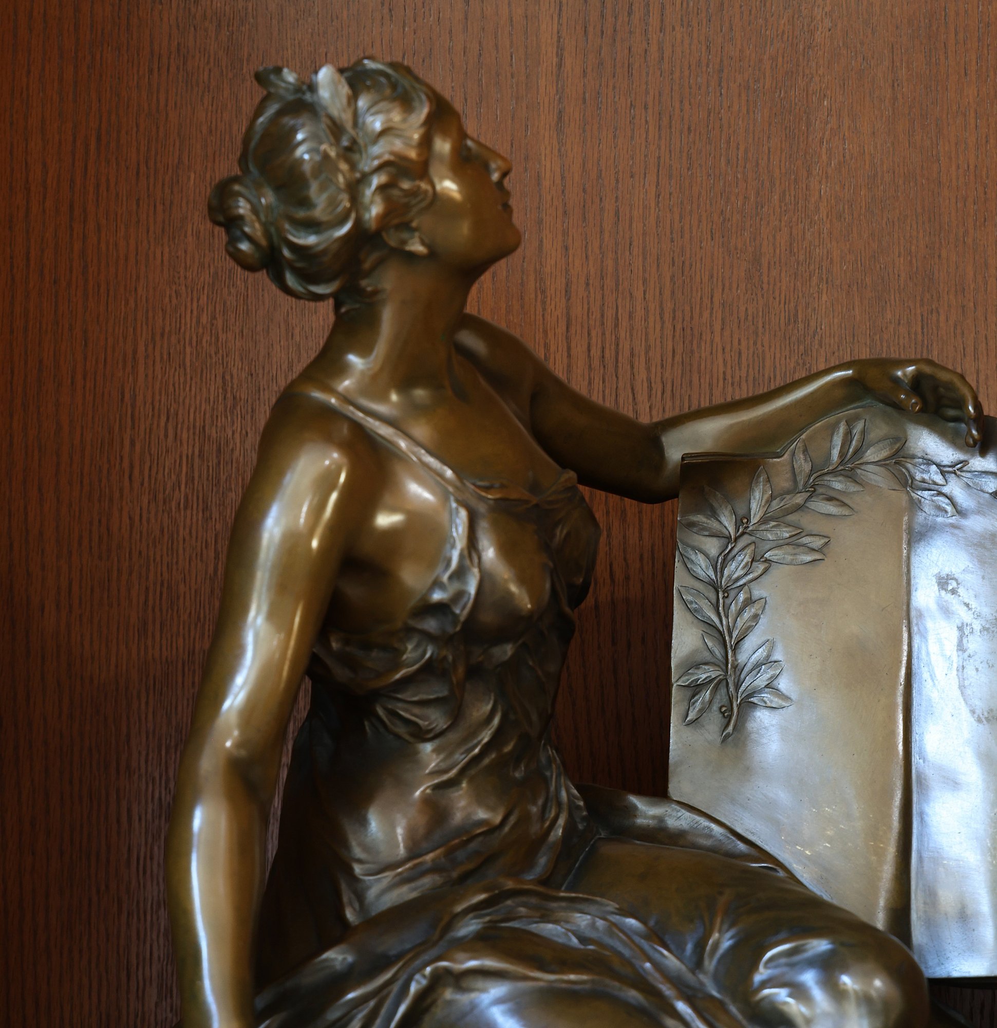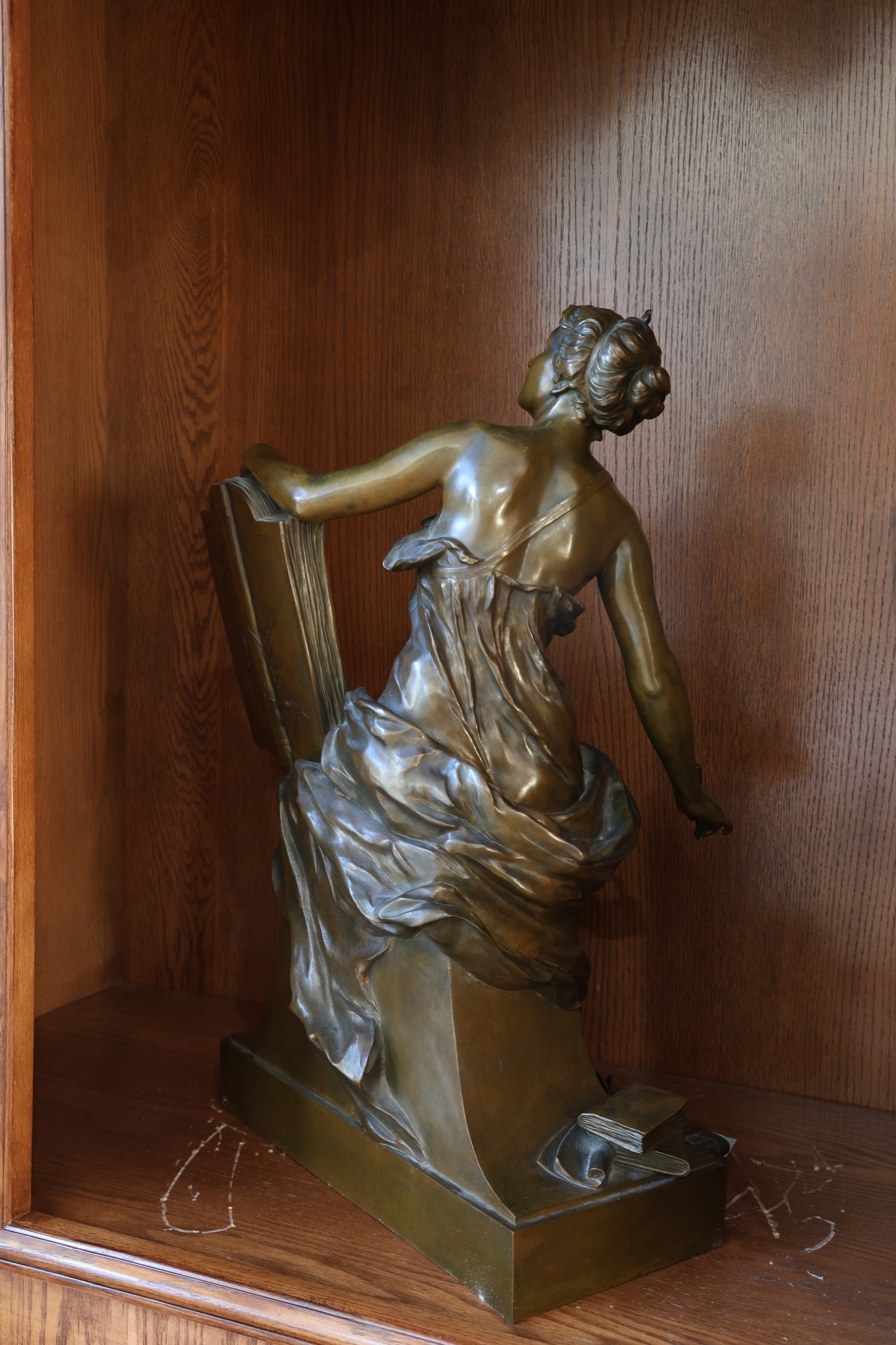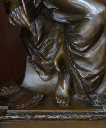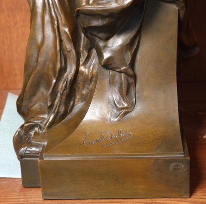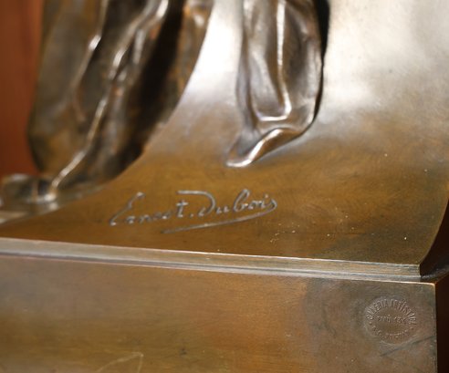 E. Dubois ( 1963-1930) was a French sculptor from Paris. He was commissioned to create a huge bronze for the Dieppe War Memorial, the Statue de Jules Meline in Remiremont, the monument to Eugene Fromentin in La Rochelle, the Monument to Jean Guiton, and many more! His work is well respected. This Large bronze has incredible detail throughout, including feet and hands.