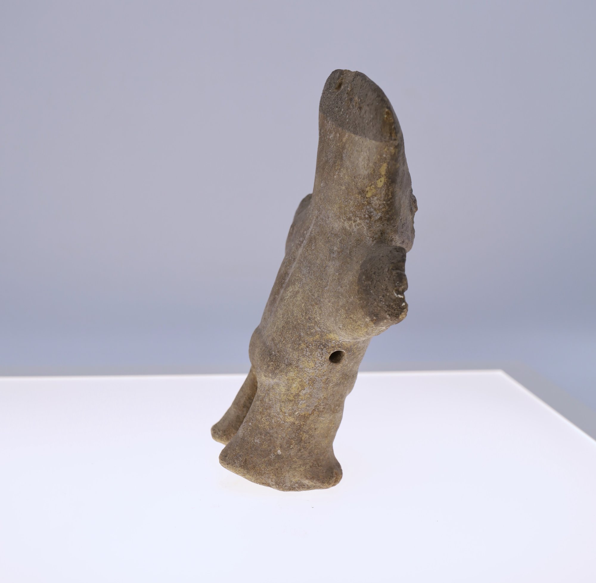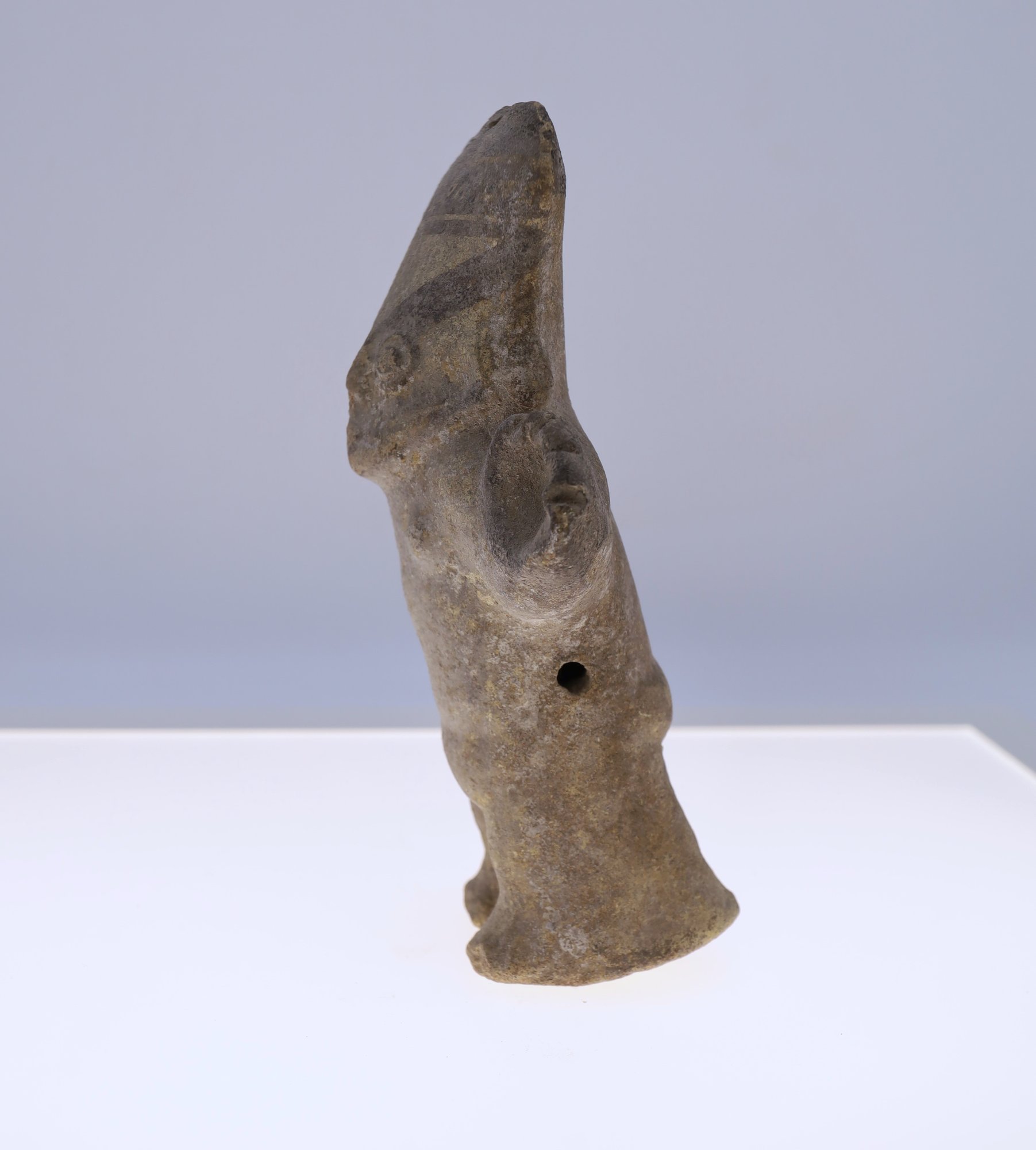 Cuchimilco Figure 1000-1450AD, Chancay Peru. This figure is of a nude female, hand built pottery. This is a star gazer figure that stands with outstretched arms and exposed genitalia.