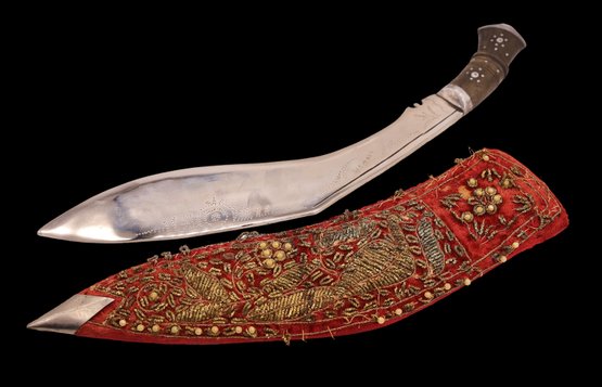 some wear to velvet sheath - engraved India on blade