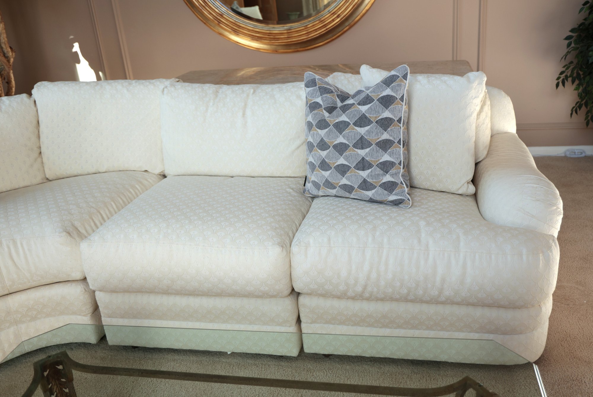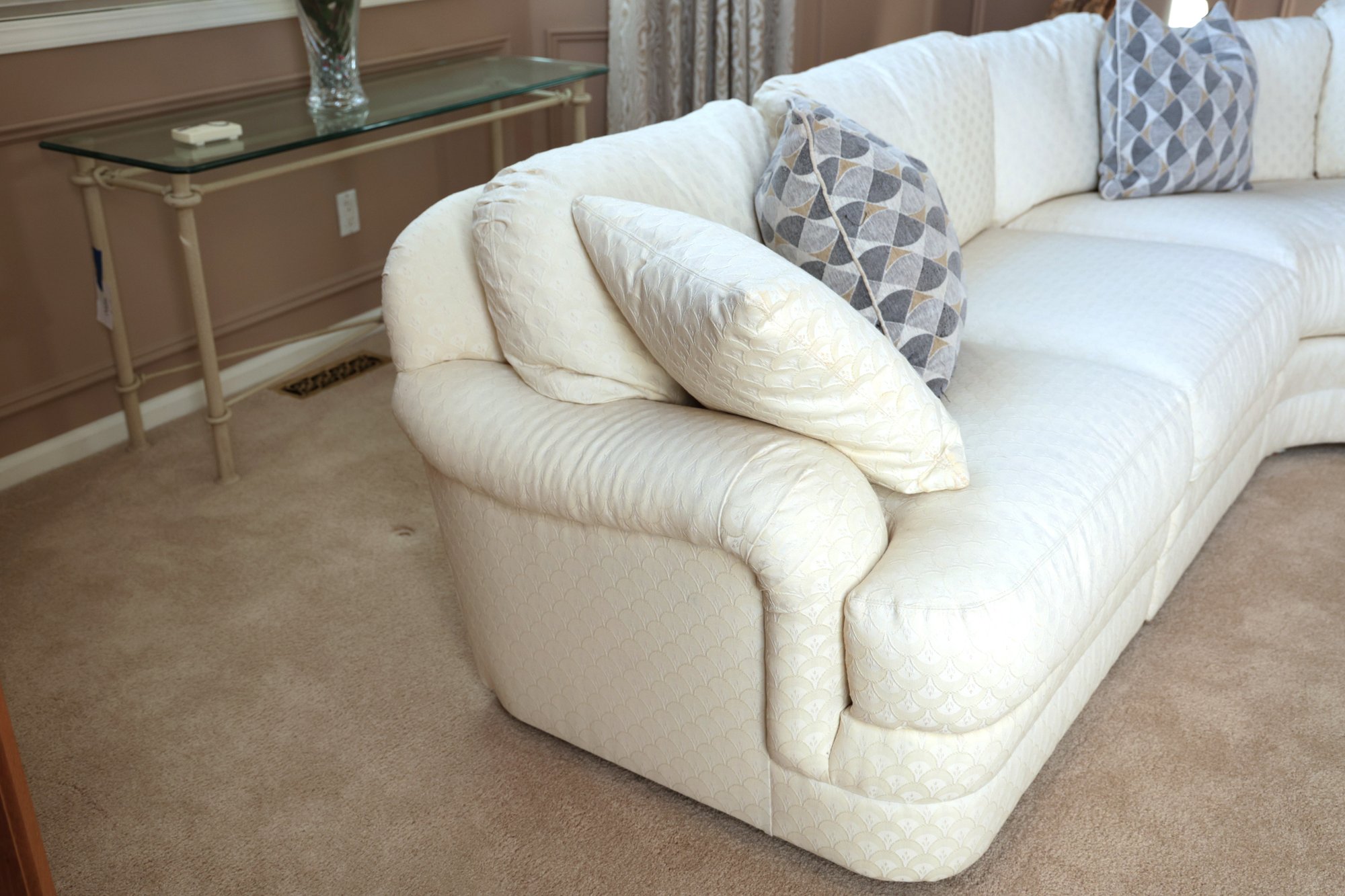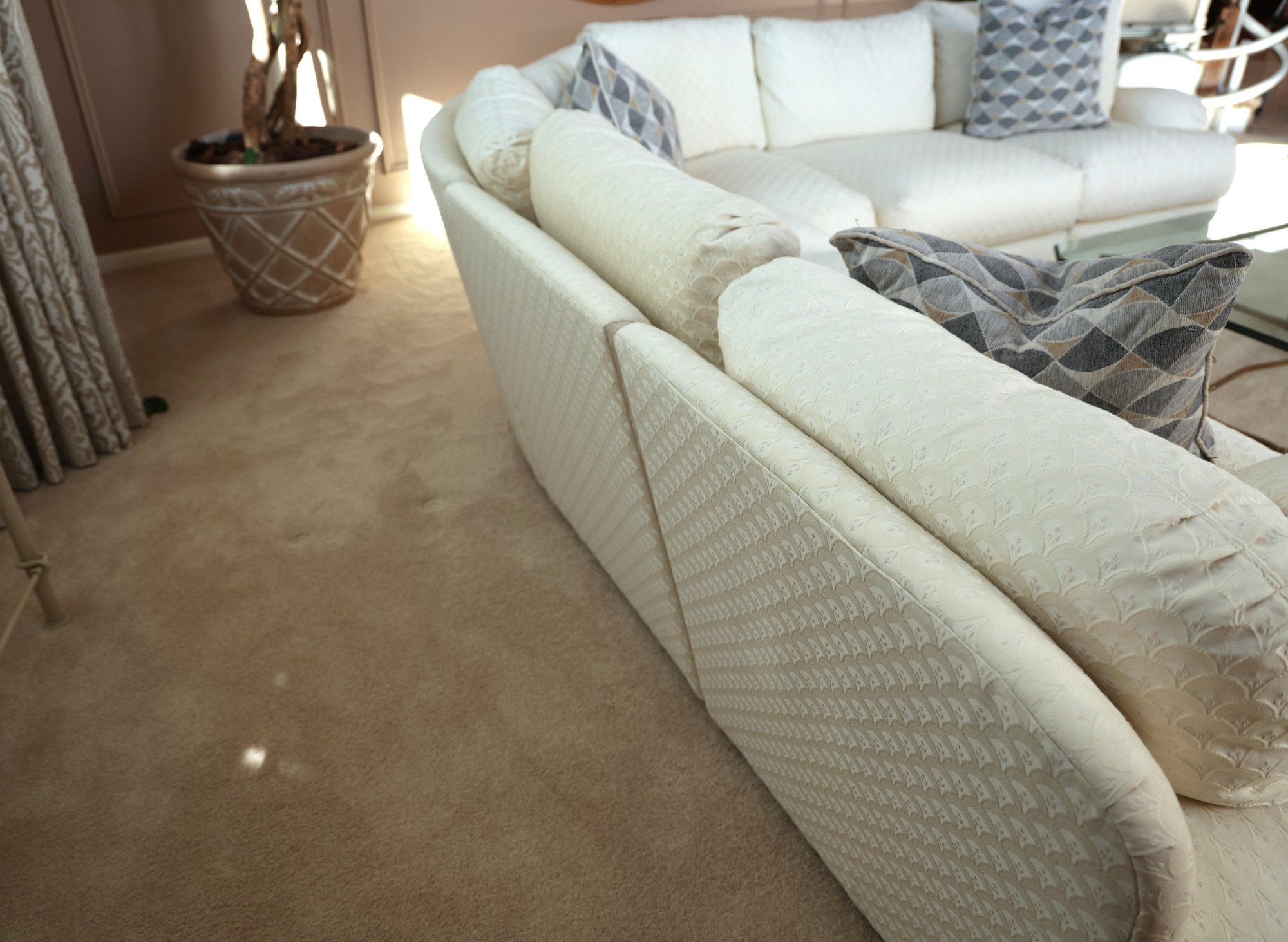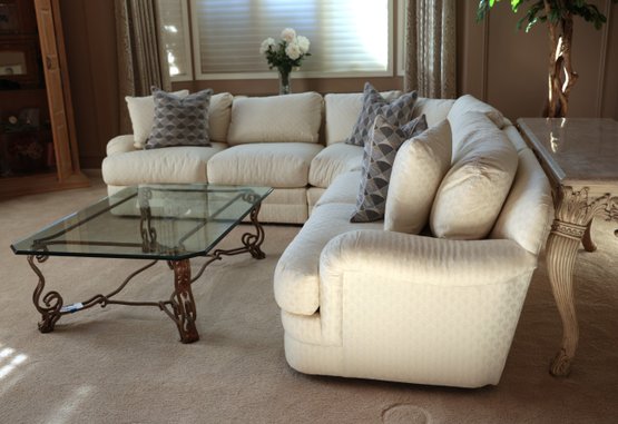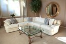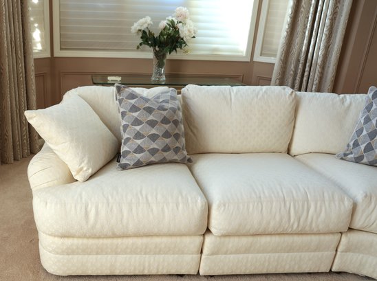 Drexel Heritage Vintage sectional barely sat in. White zippered cushions with a small print.