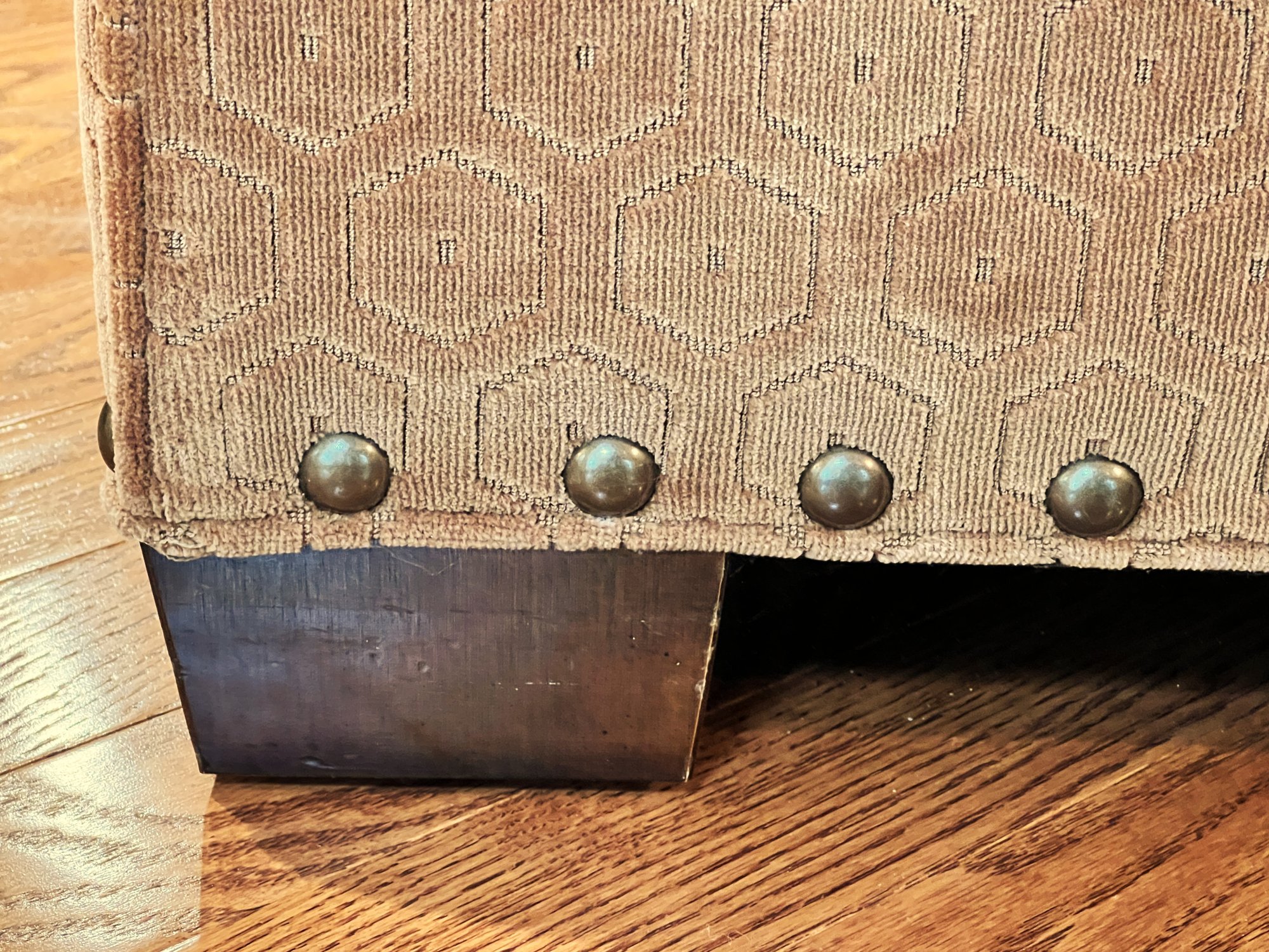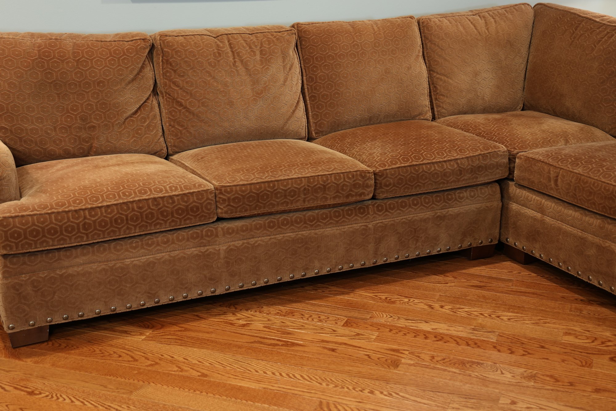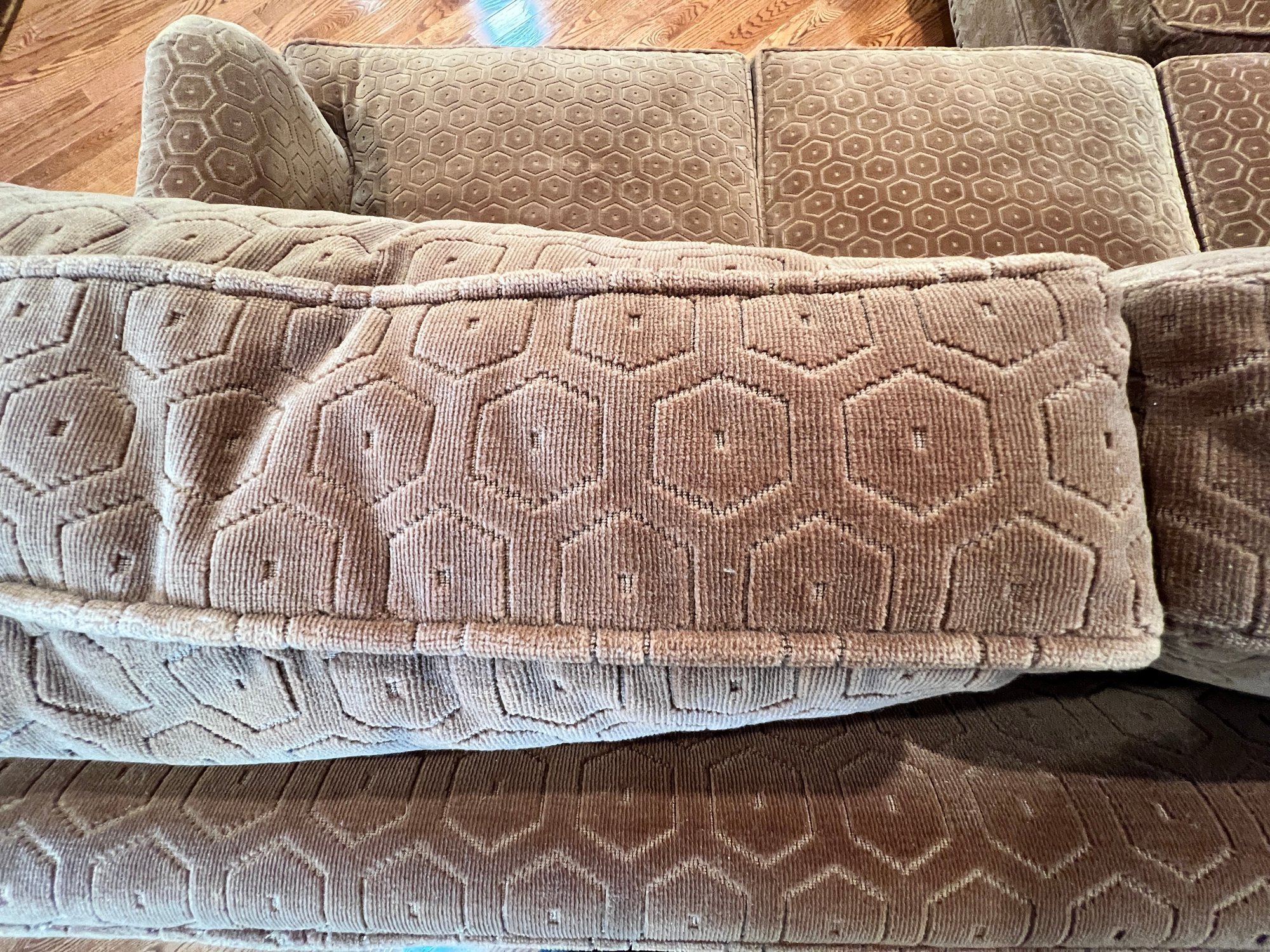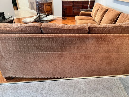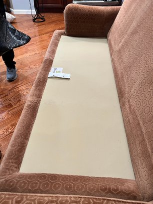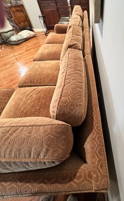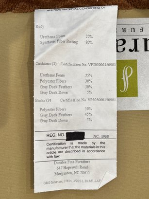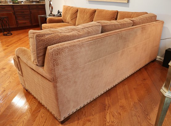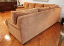Duralee Fine Furniture Duck Down and Duck Feather Sofa, extremely comfortable. Very sturdy barely sat on with a lovely modern pattern and nail heads lining the base. Two pieces