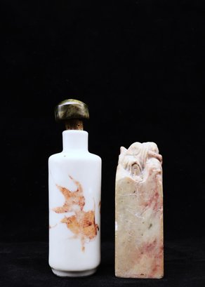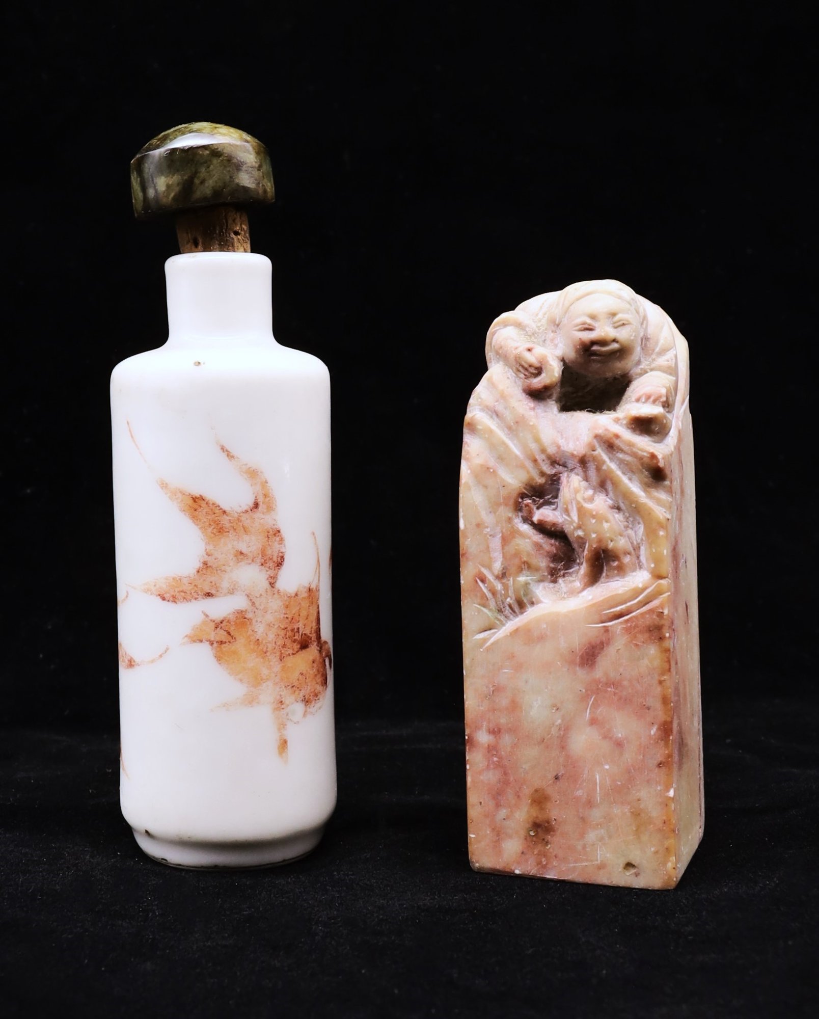 One soapstone antique stamp 2.5"H