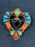 Signed sterling heart shape pin for Don Lucas, southwester, Coral, Onyx, Turquoise and more !