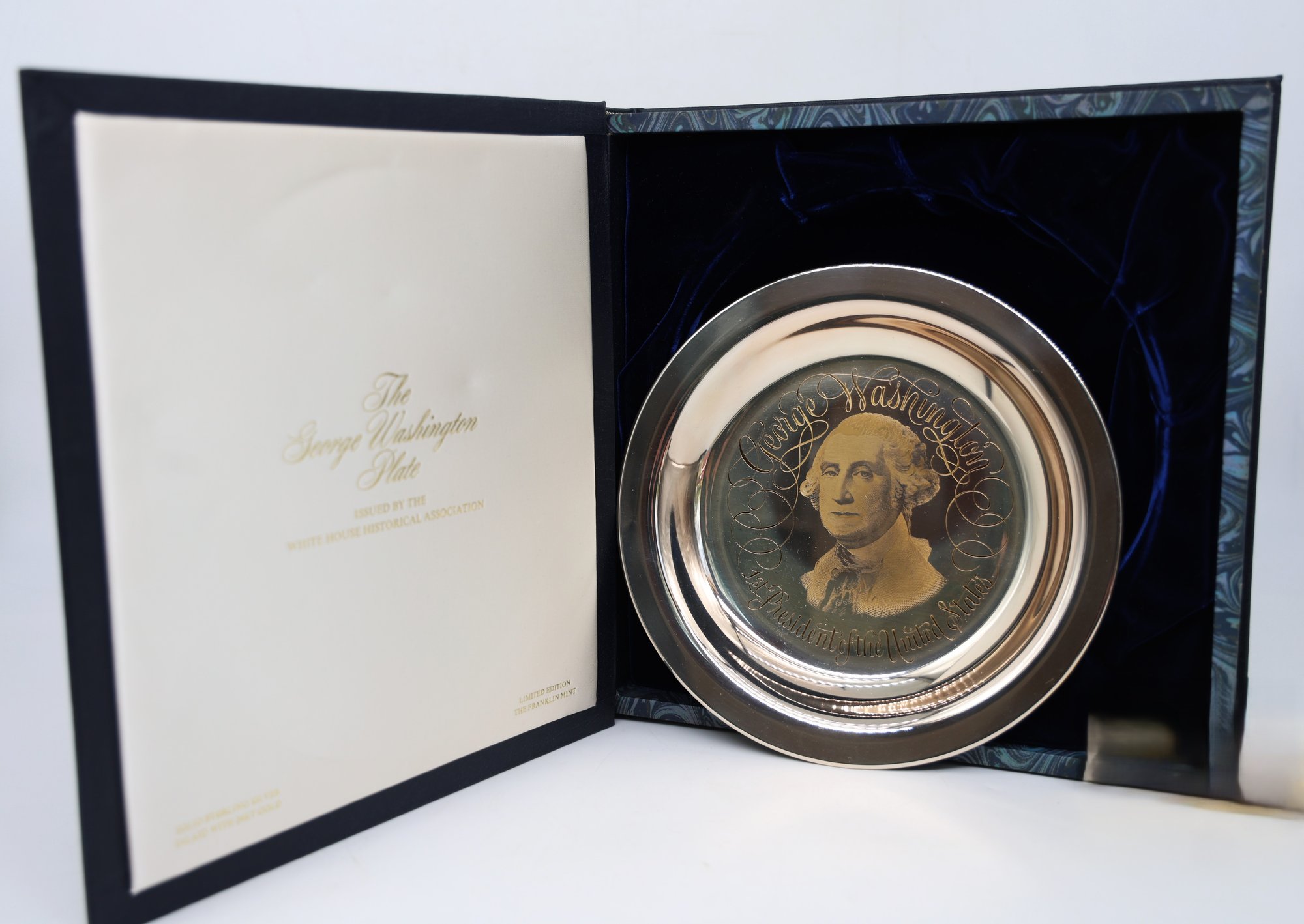 Edition number 3520. Franklin Mint George Washington plate with box. Weighs approx . 7.5 oz
