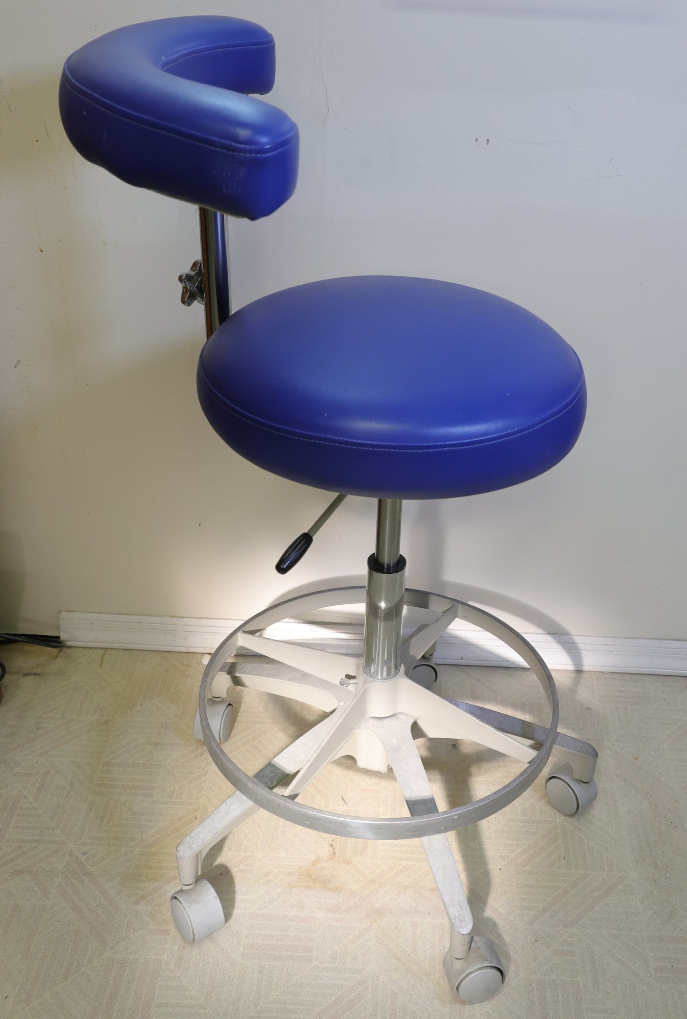 It features a height-adjustable, 360-degree-rotating body support arm, configurable for left- or right-handed use. 16"D x 2.5" padded seat