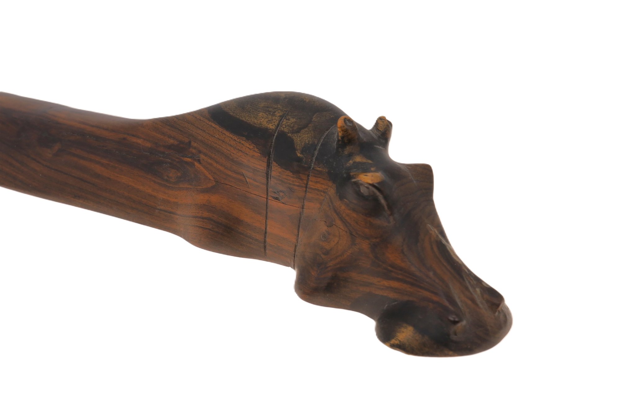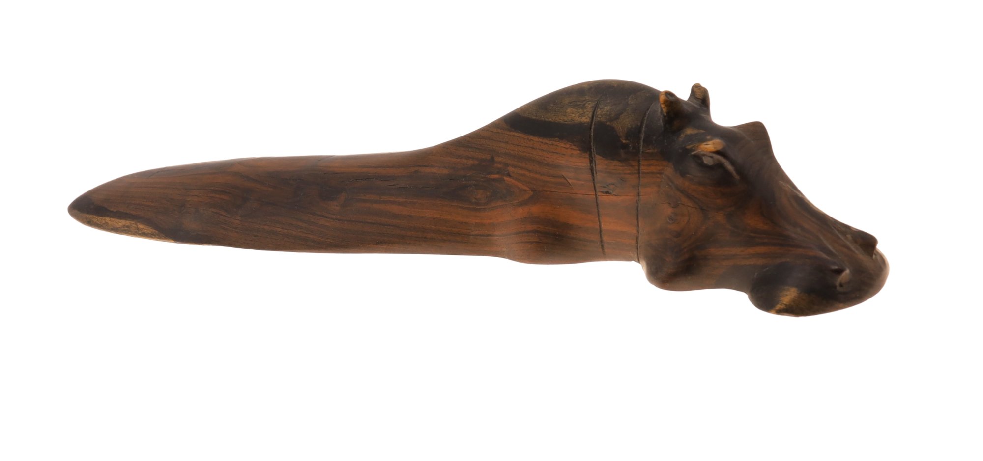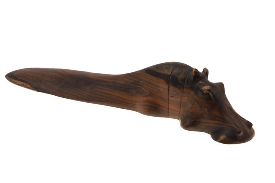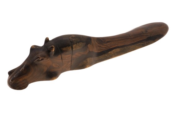 Exquisite vintage hand-carved wooden hippopotamus with a beautiful patina and a substantial weight, measuring 13.5 inches in length. Please see photos in regards to a small scratch.