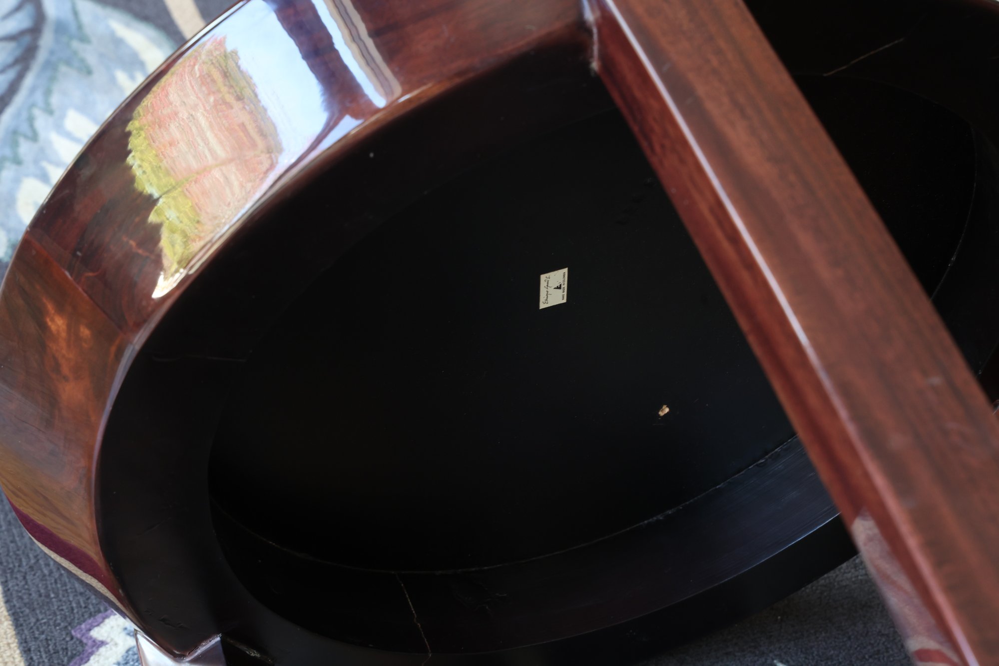Sticker with Enrique E. Garcel - handmade , very nice table to go anywhere. Curved legs are very art deco feel.