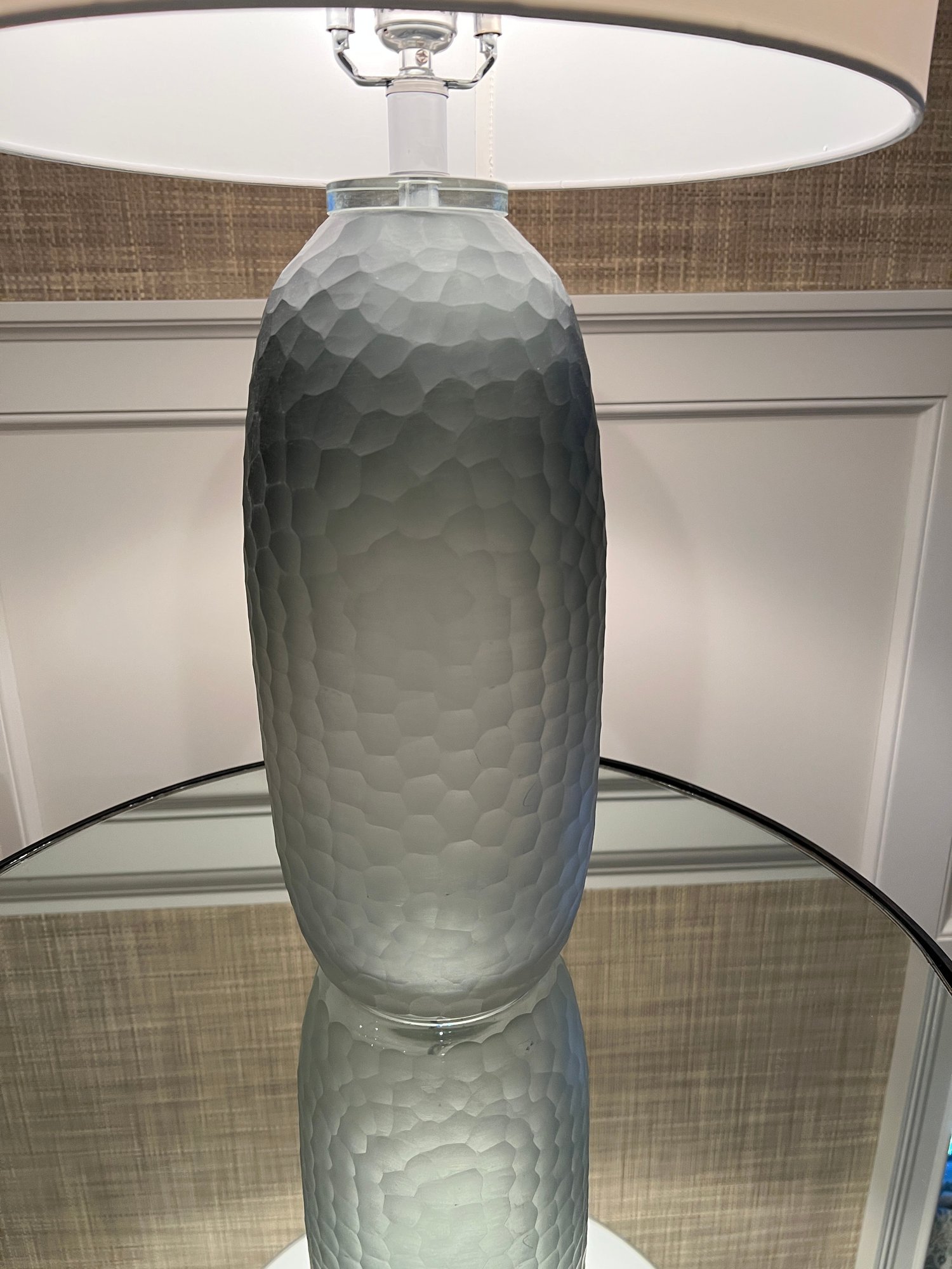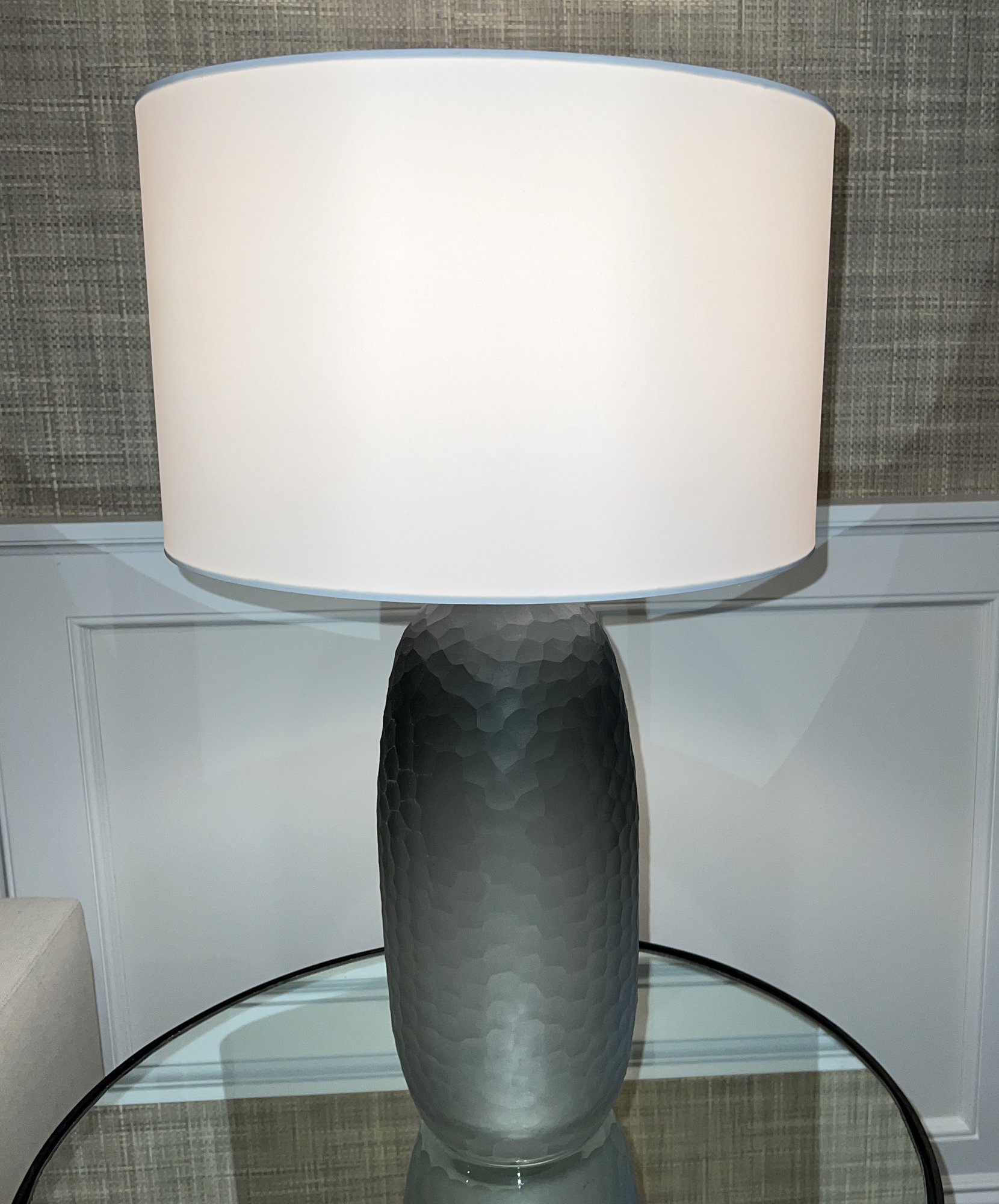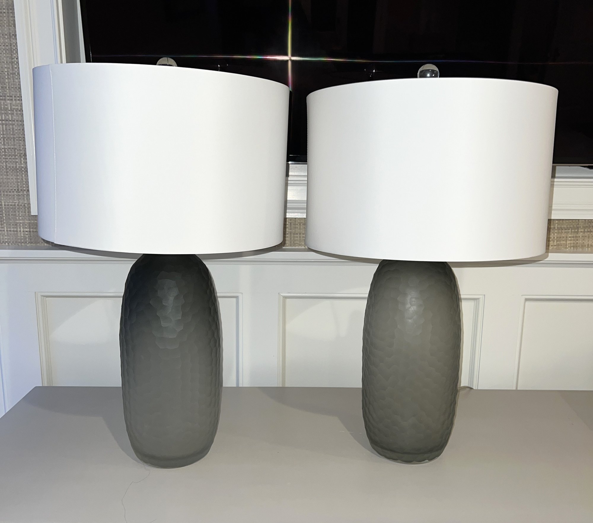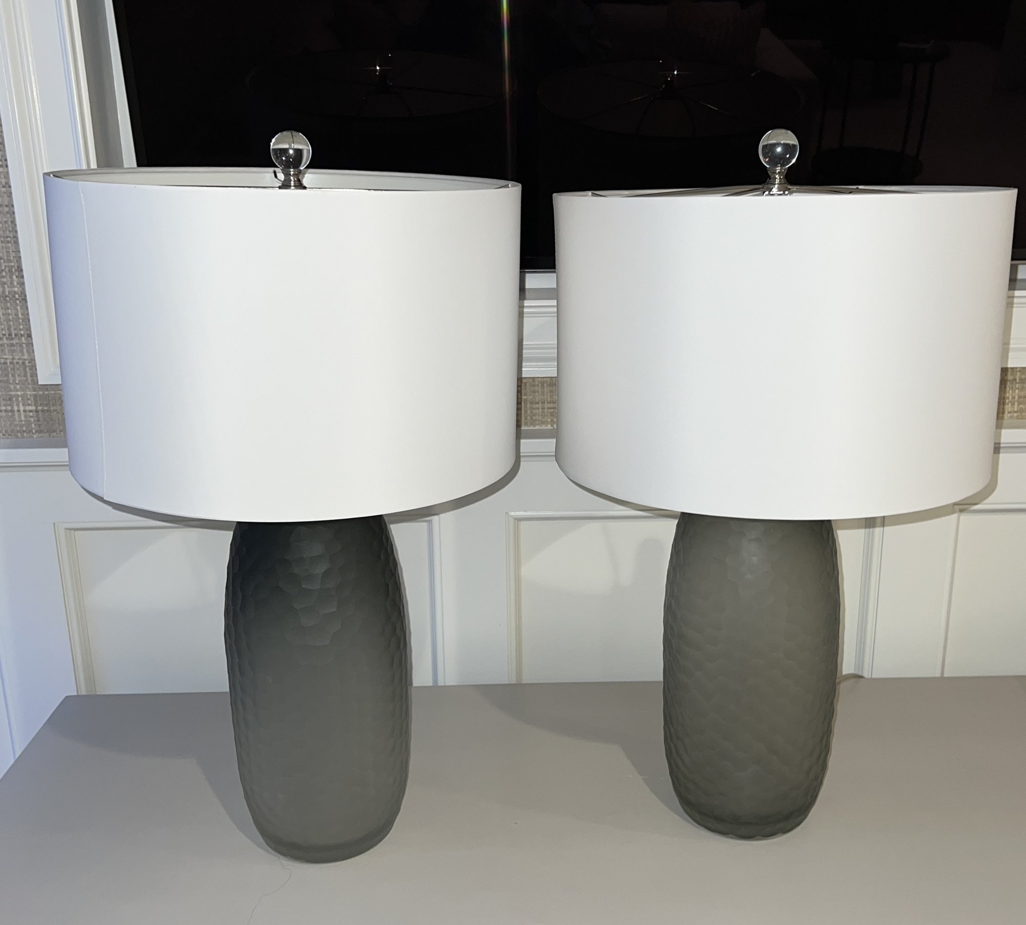 pair leonardo bellagio hand made lamps with lucite top and white round shade