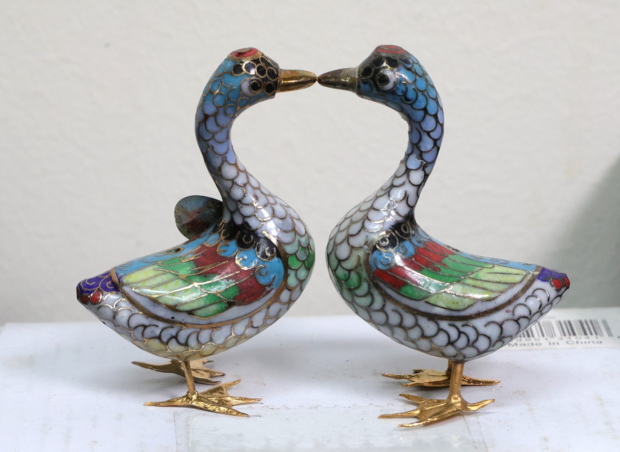 Pair of Chinese ducks in bronze filigree and cloisonné enamel - 2.5"