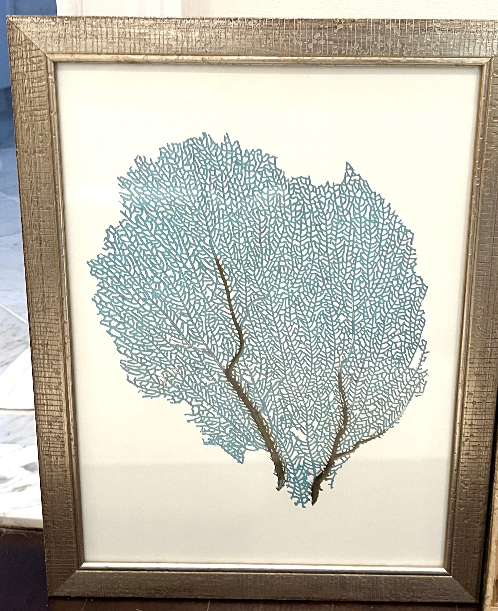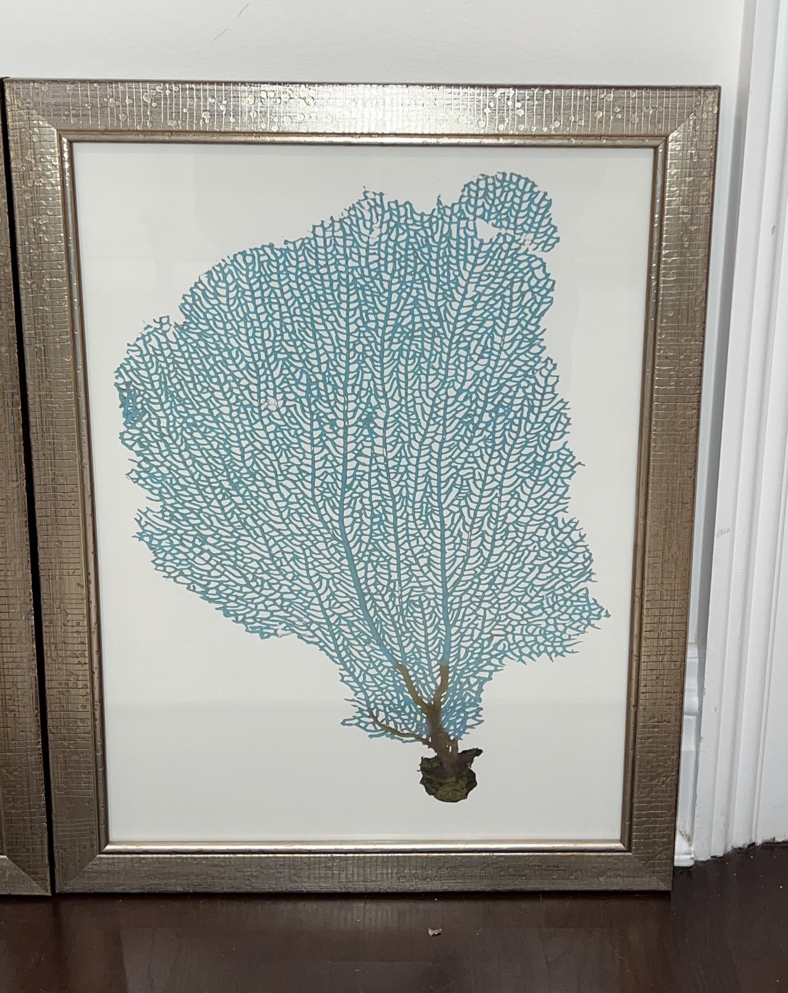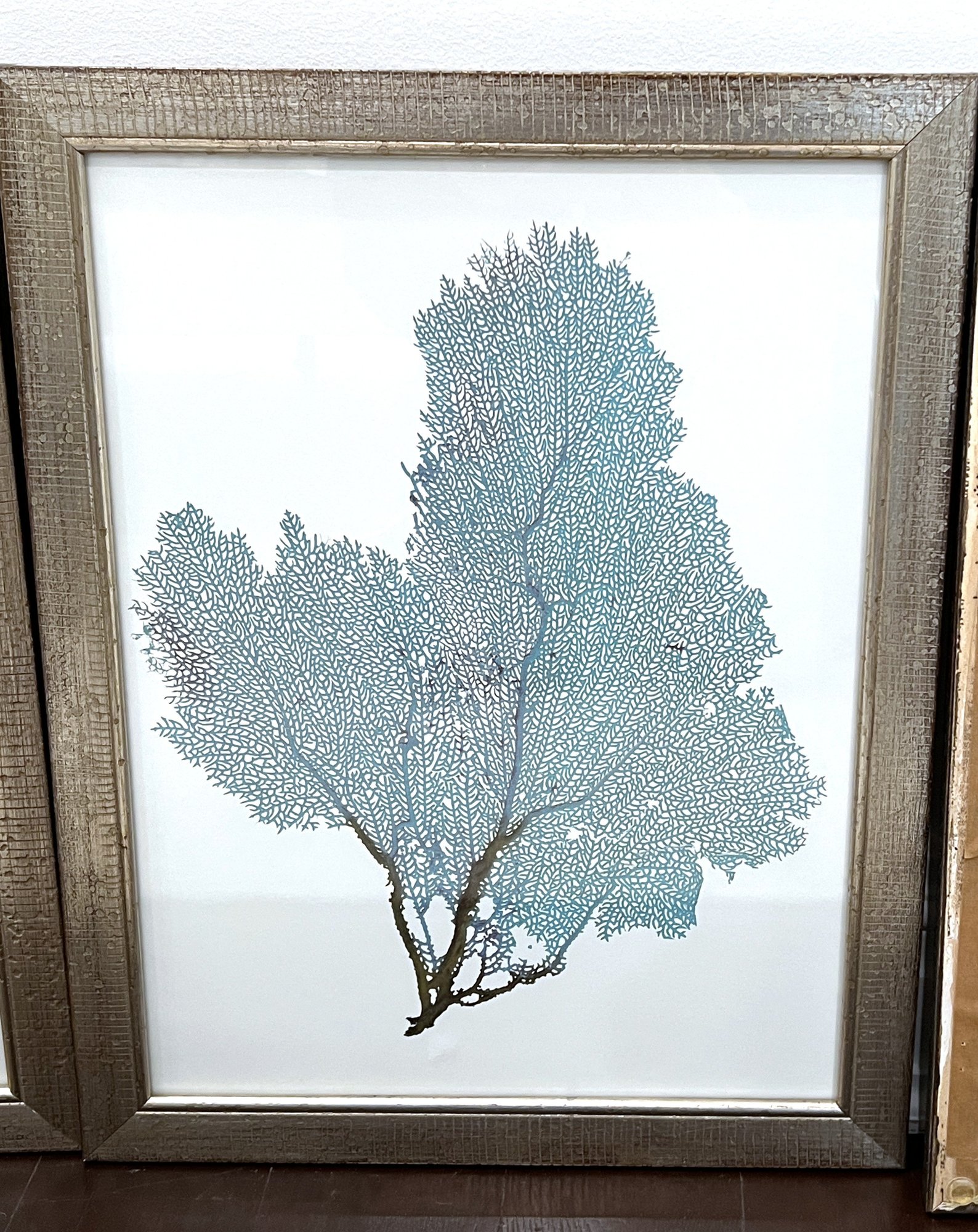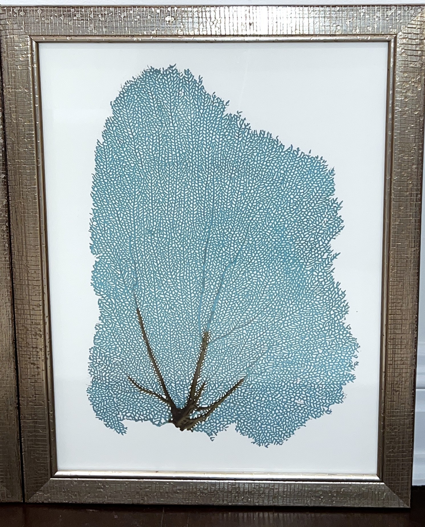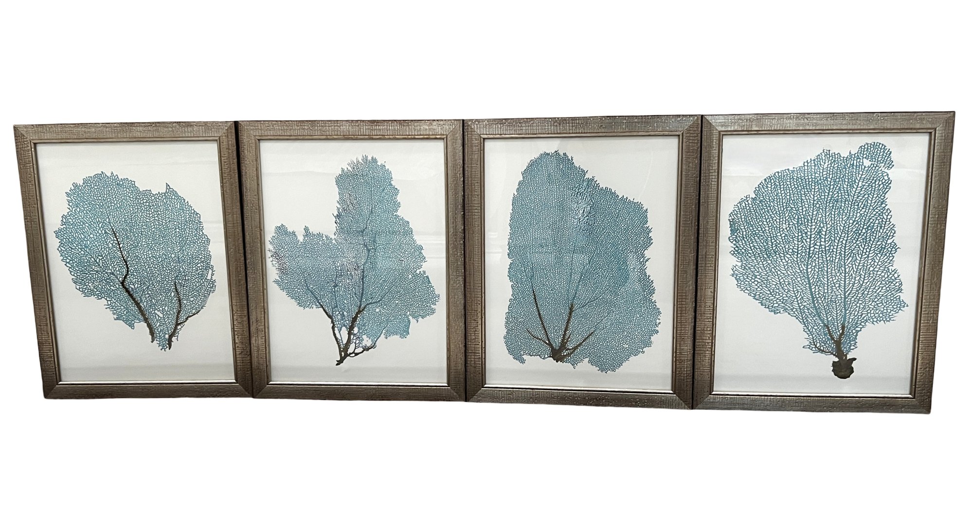 Four blue fan coral with silver style frame