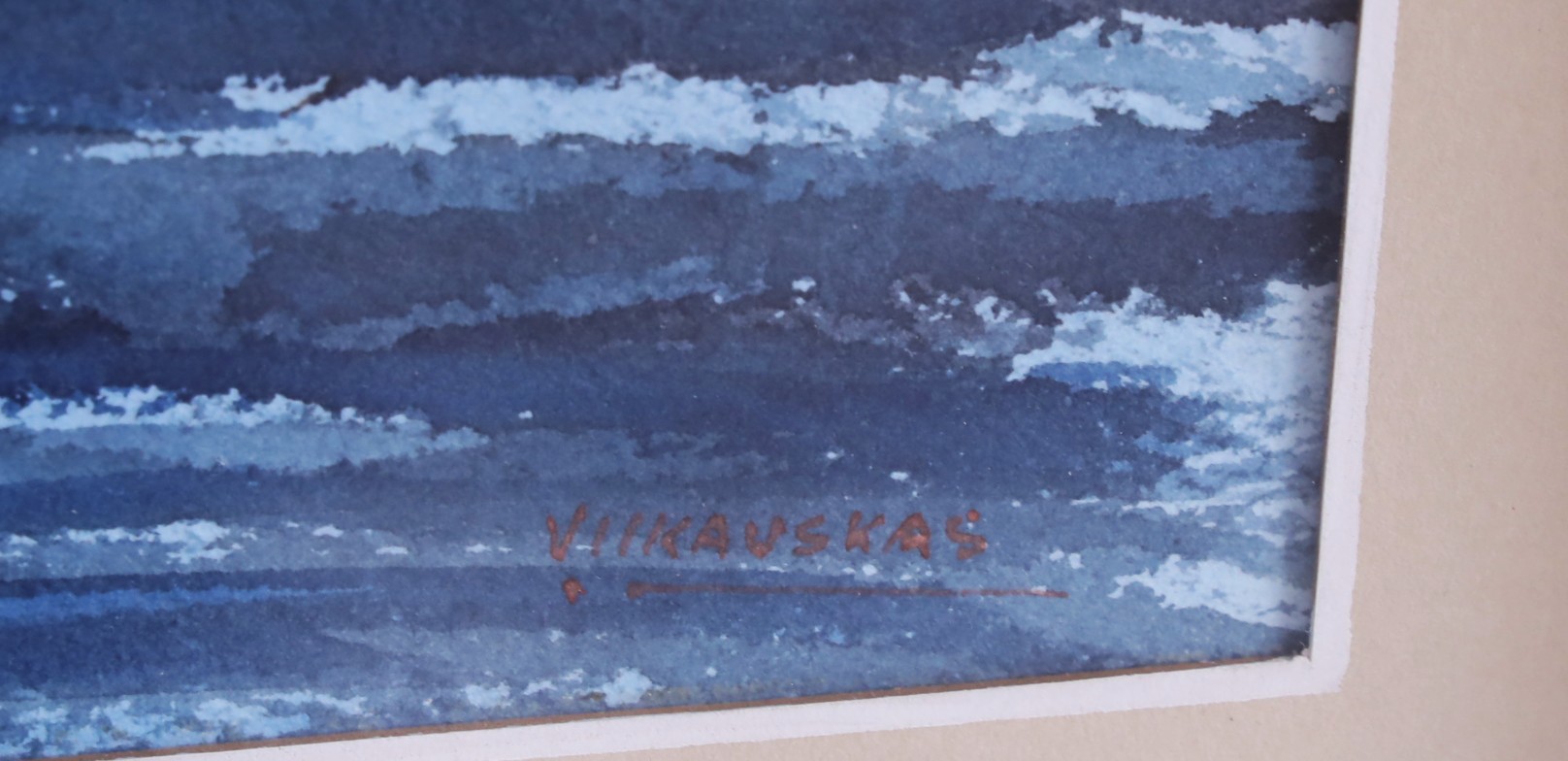 Watercolor by Rolandas Vilkauskas, signed in the lower right corner.