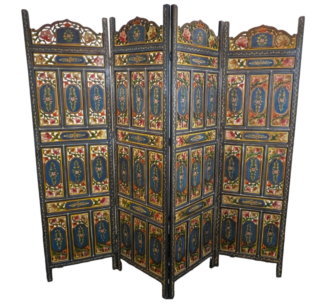 Hand-Painted Lovely Wooden Screen/Divider 4 panel