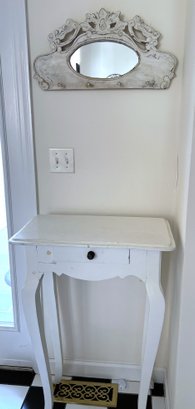 Coat rack with mirror, white distressed - 11.5" x 23.5"W