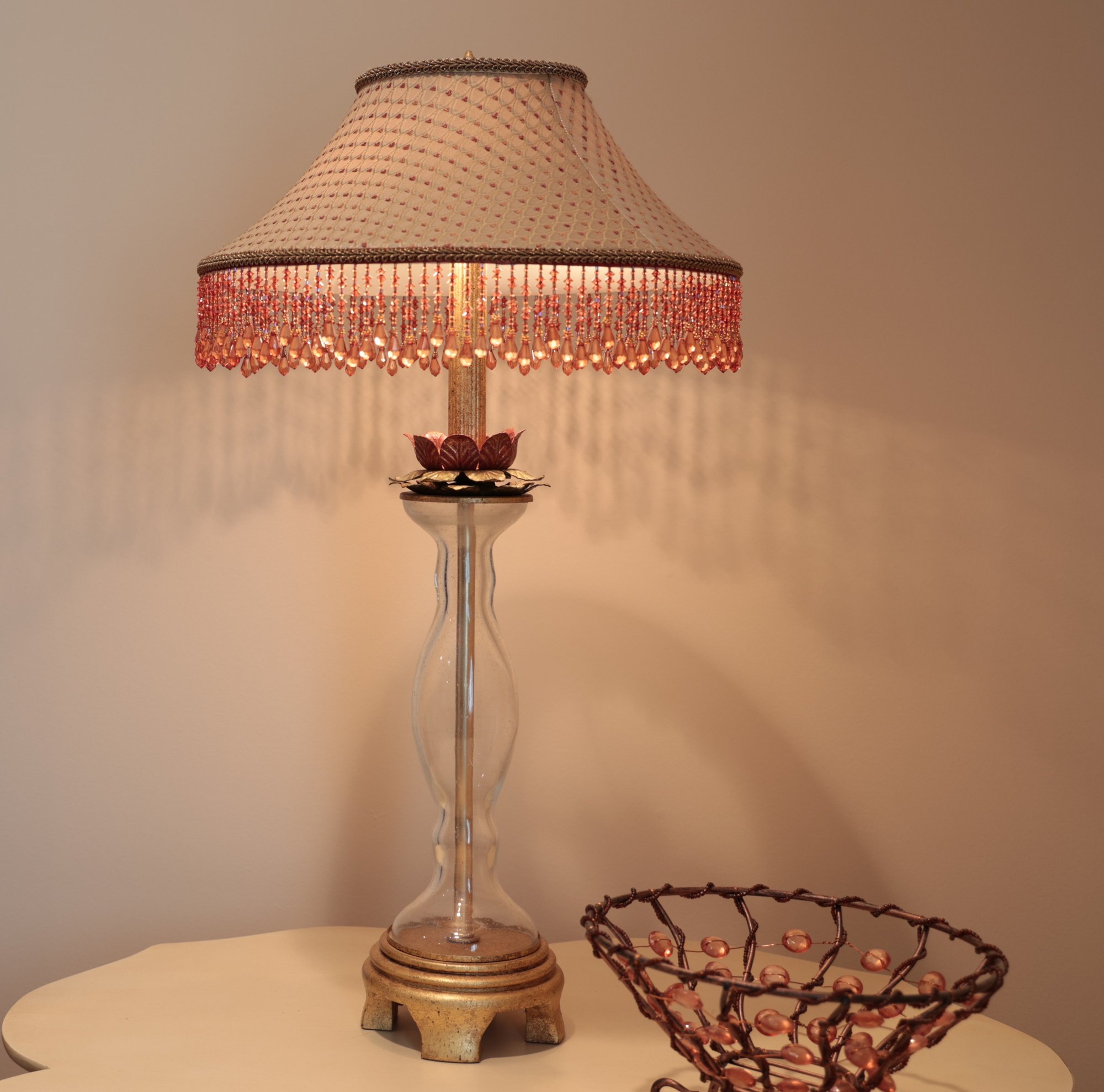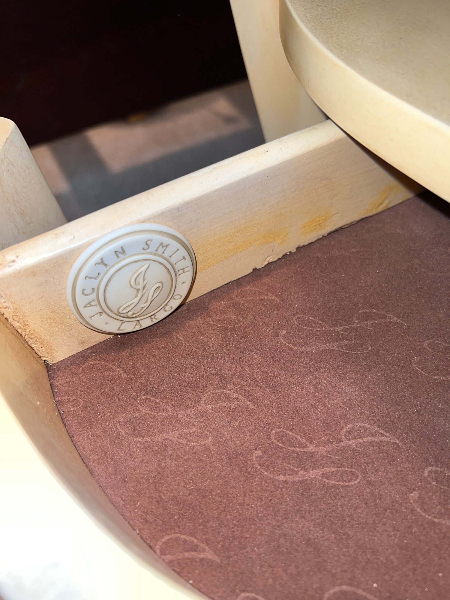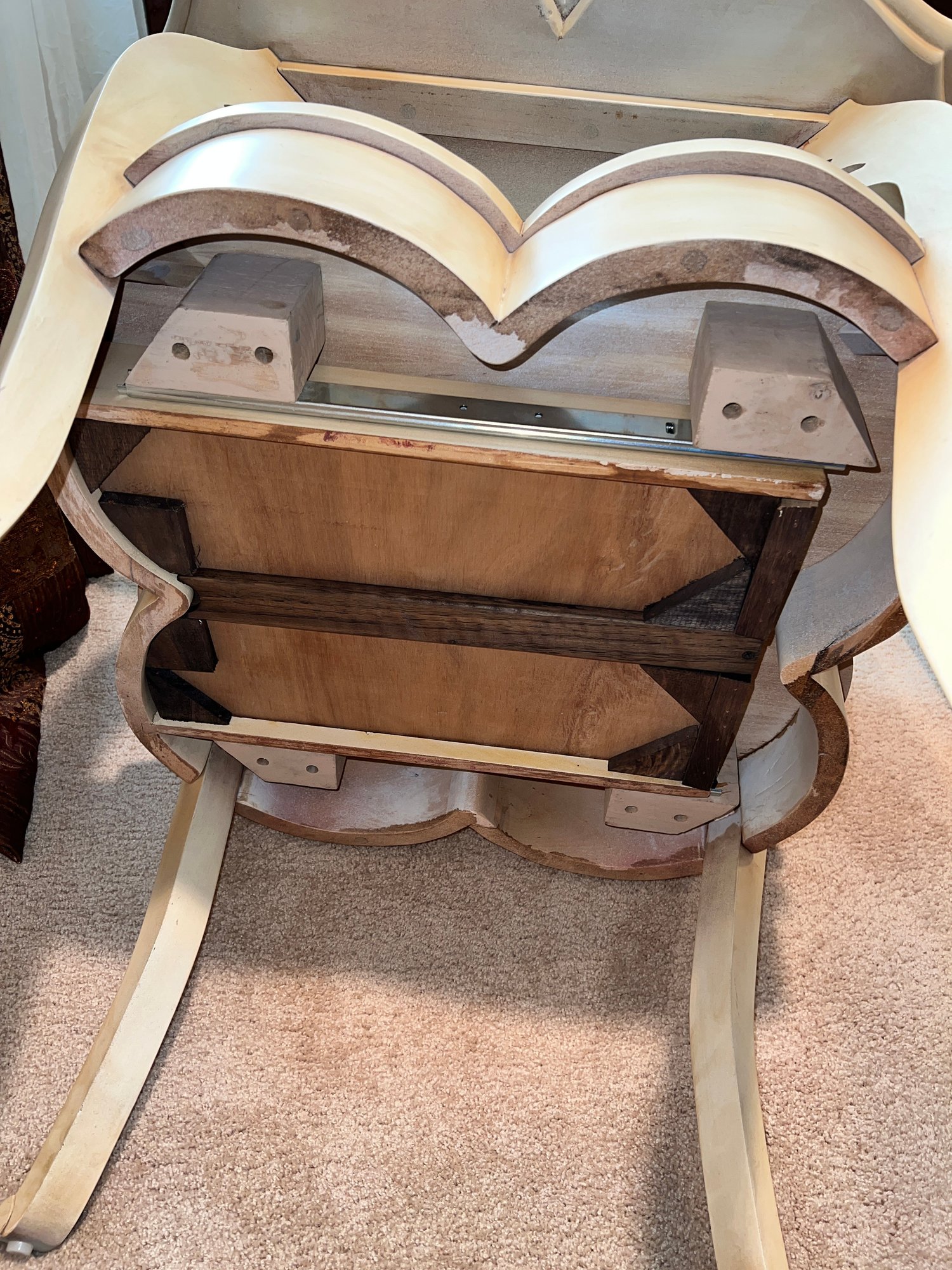 Jacyln Smith Table With Drawer with scalloped top and cabriole legs. Ivory color