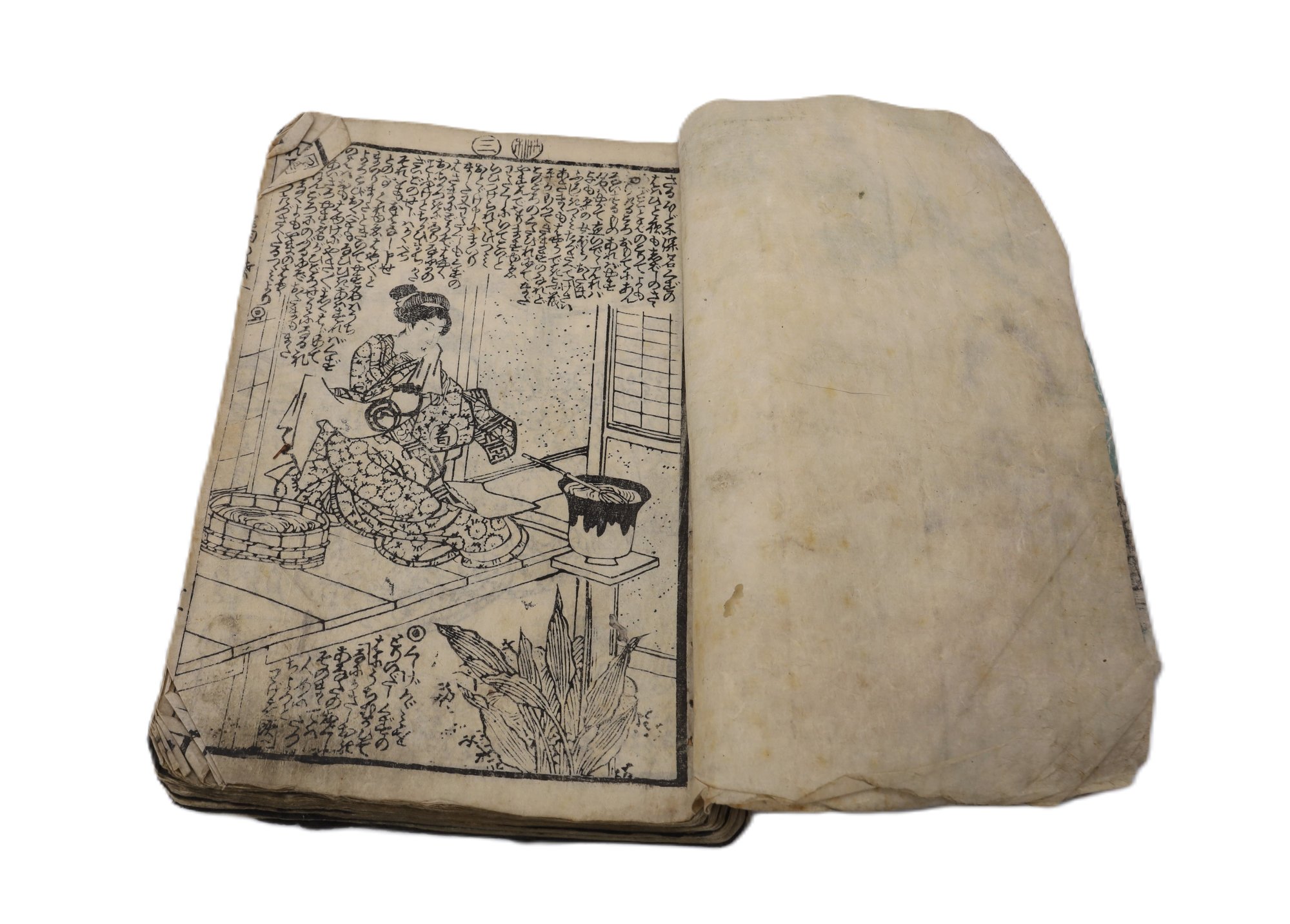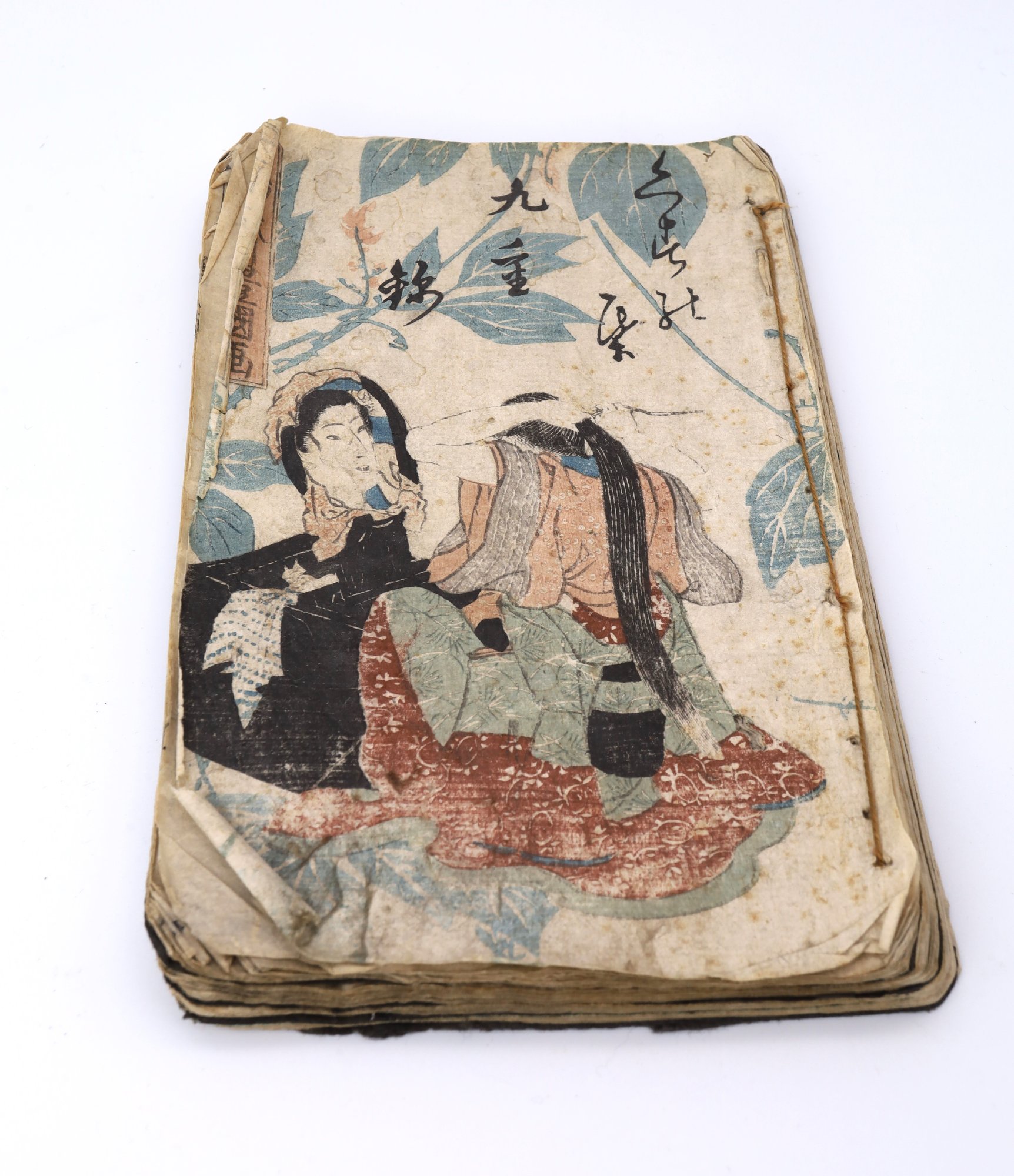 Antique Japanese booklet strung together with string. Beautiful pictures inside.