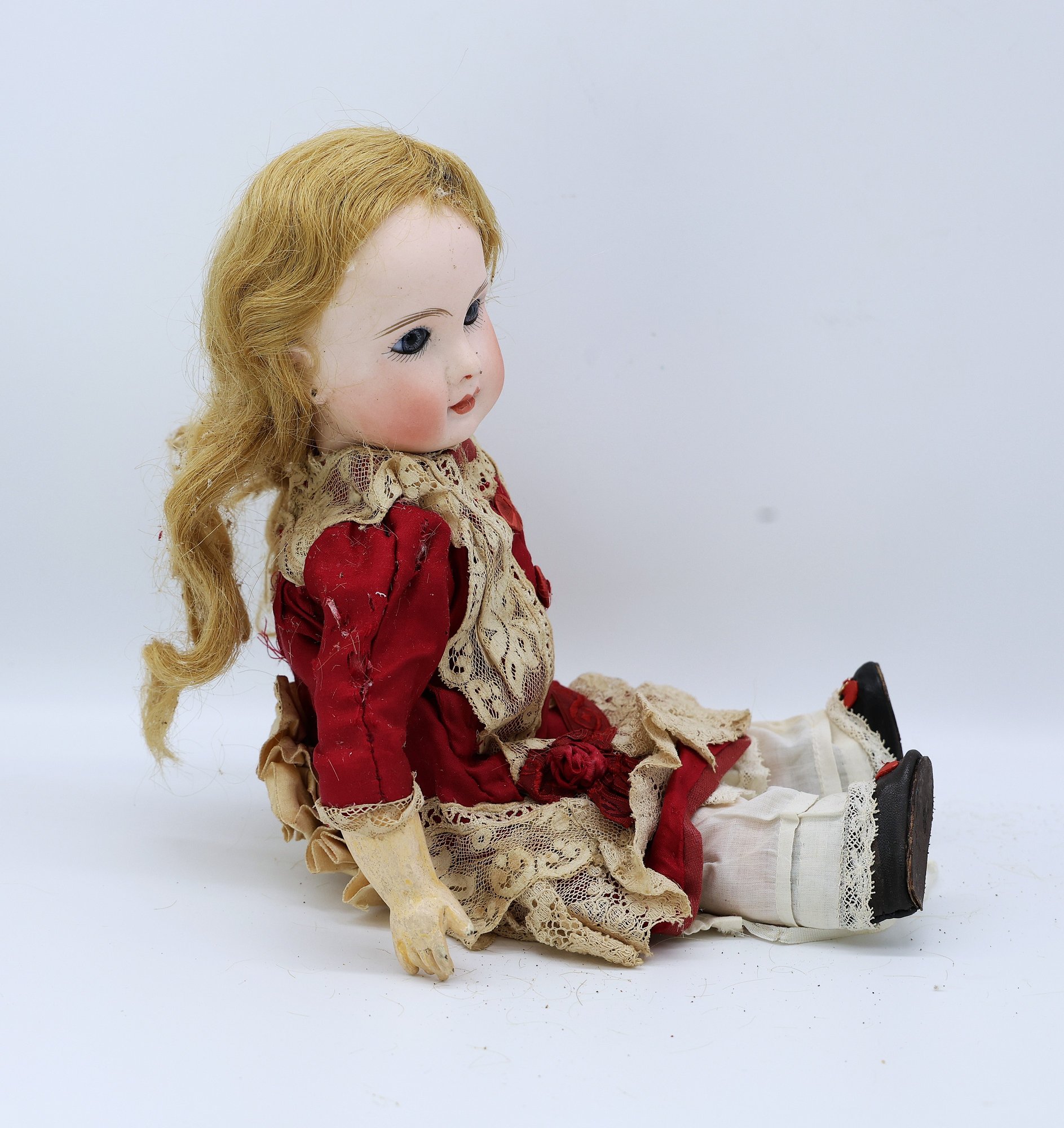 Jules Nicholas Steiner (1855-1908) Paris A-7 fabulous bisque head signed on neck with papier mache body and leather shoes. 12"L