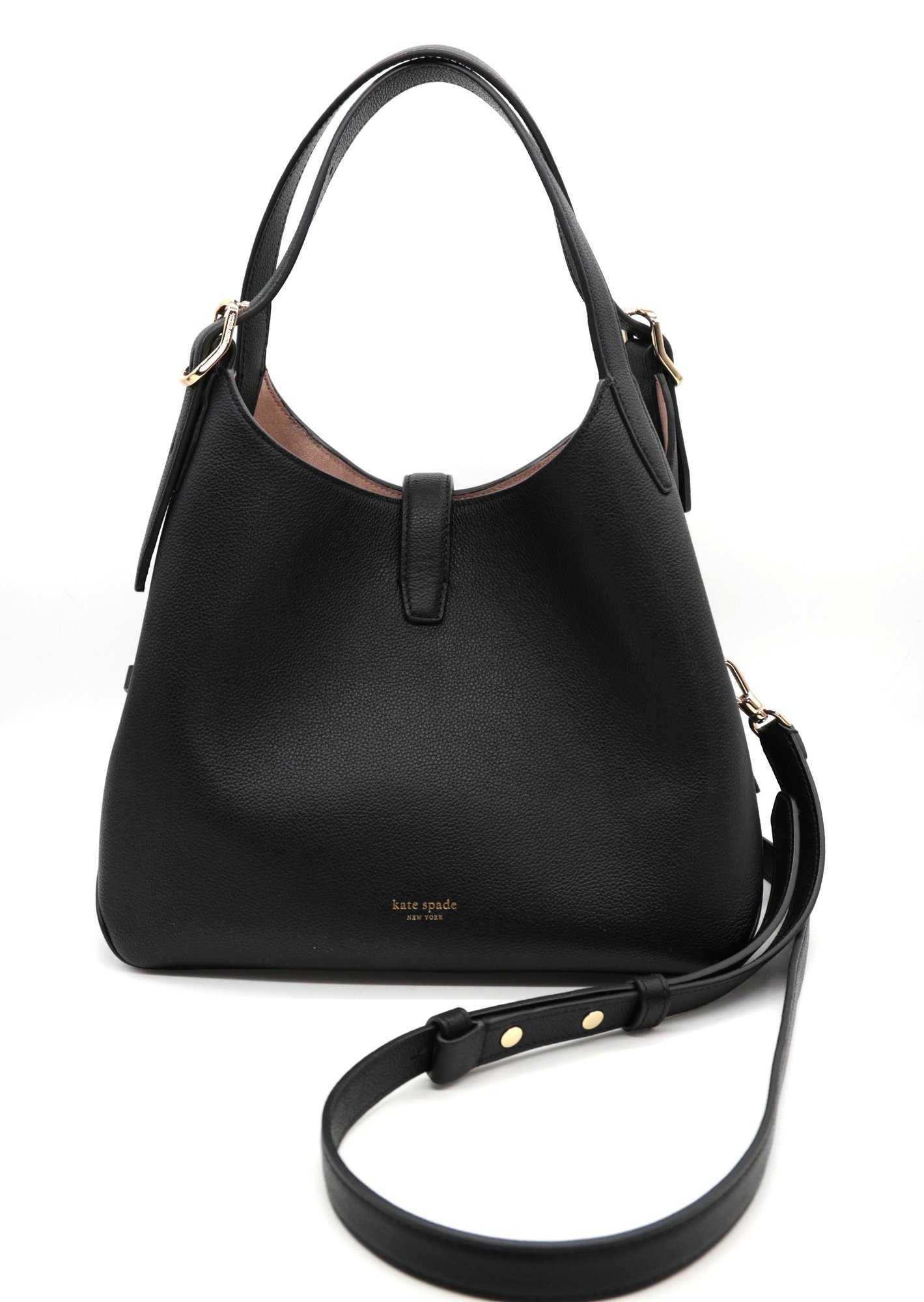 Kte Spade Hobo Bag in black pebbled leather. Interior zipper and pocket with original dust bag. Very Nice condition.