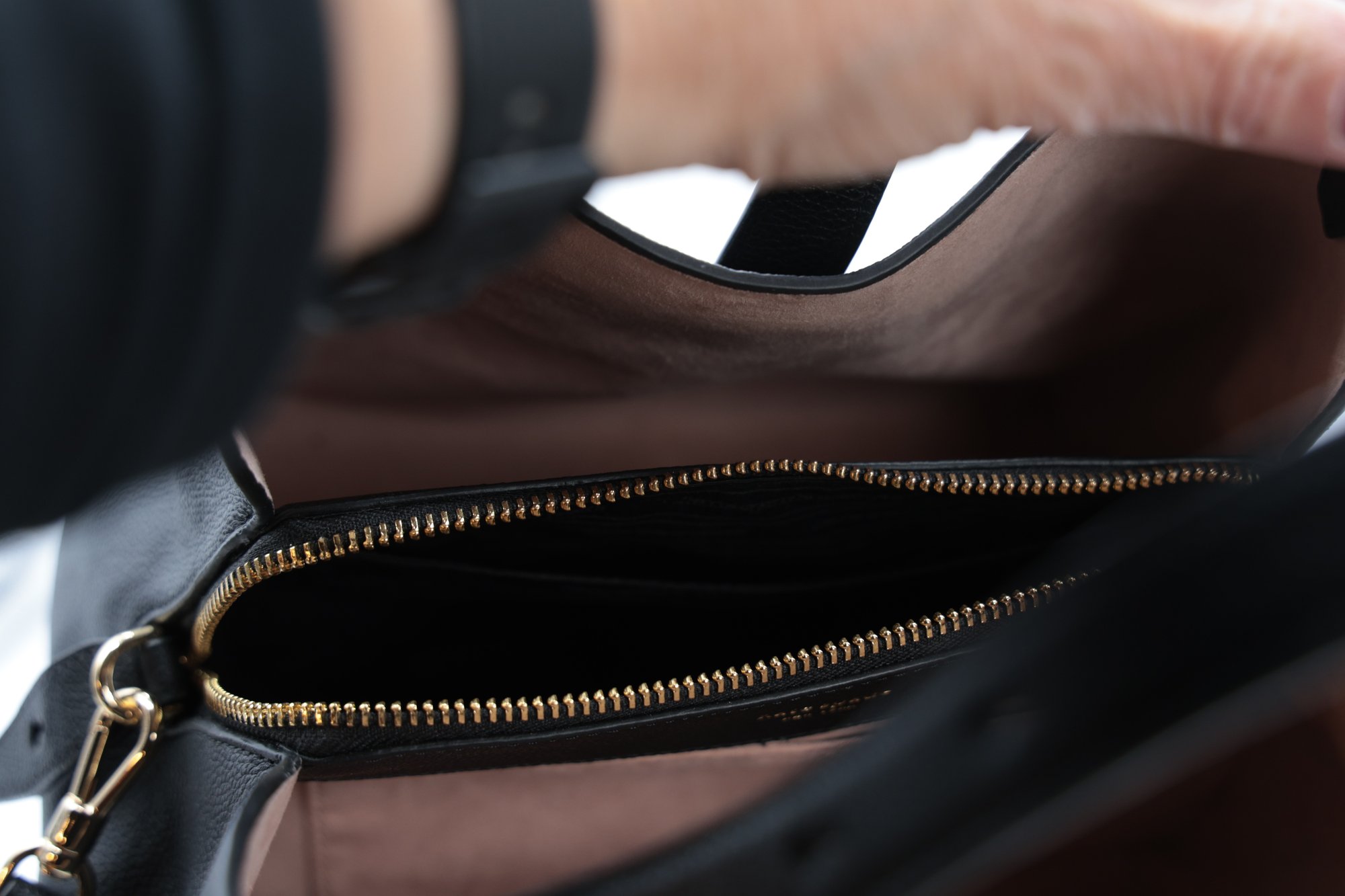 Interior center zip compartment & one slip pocket