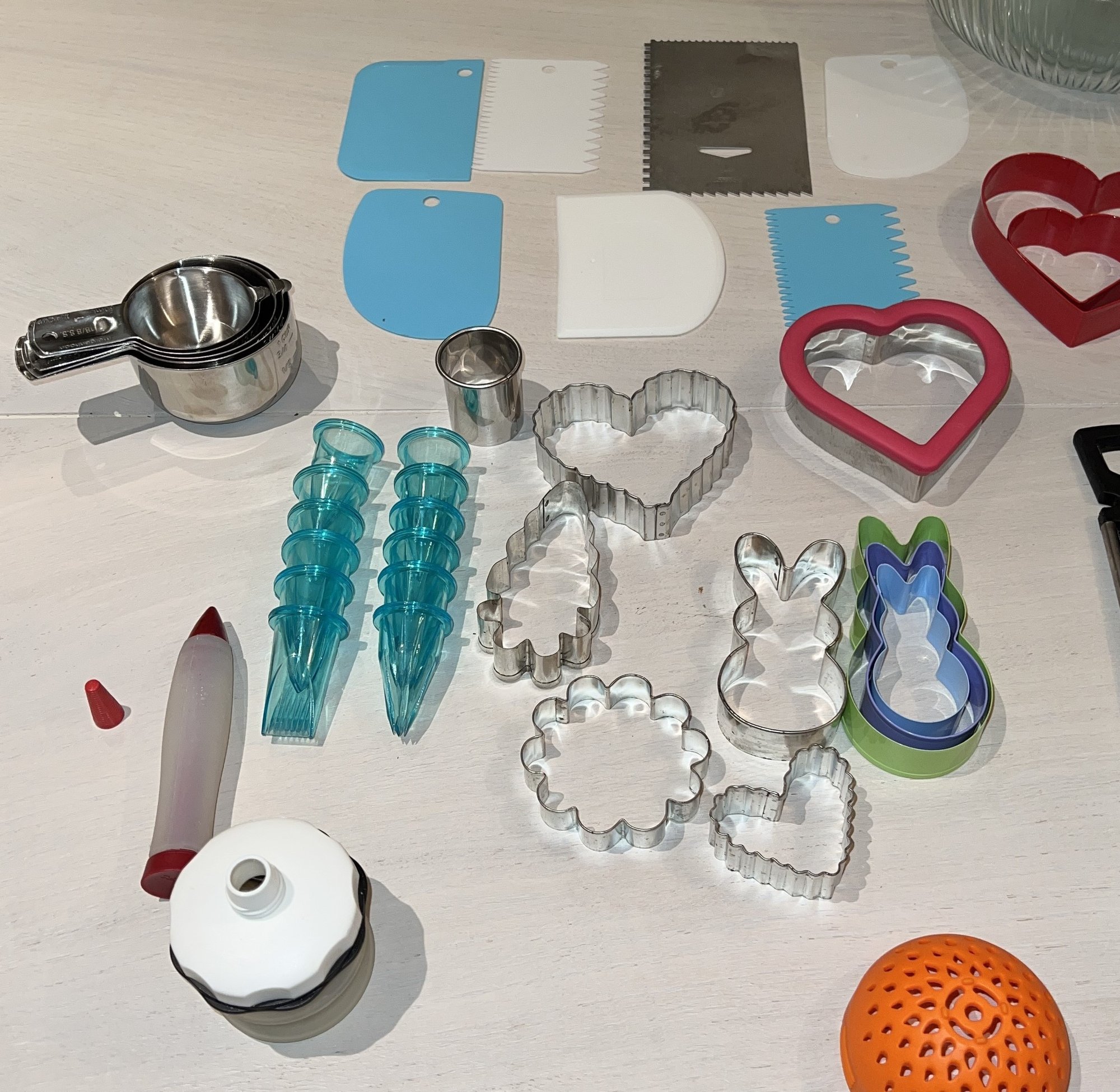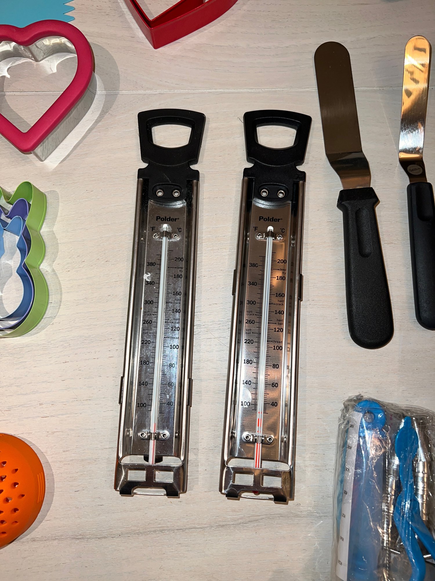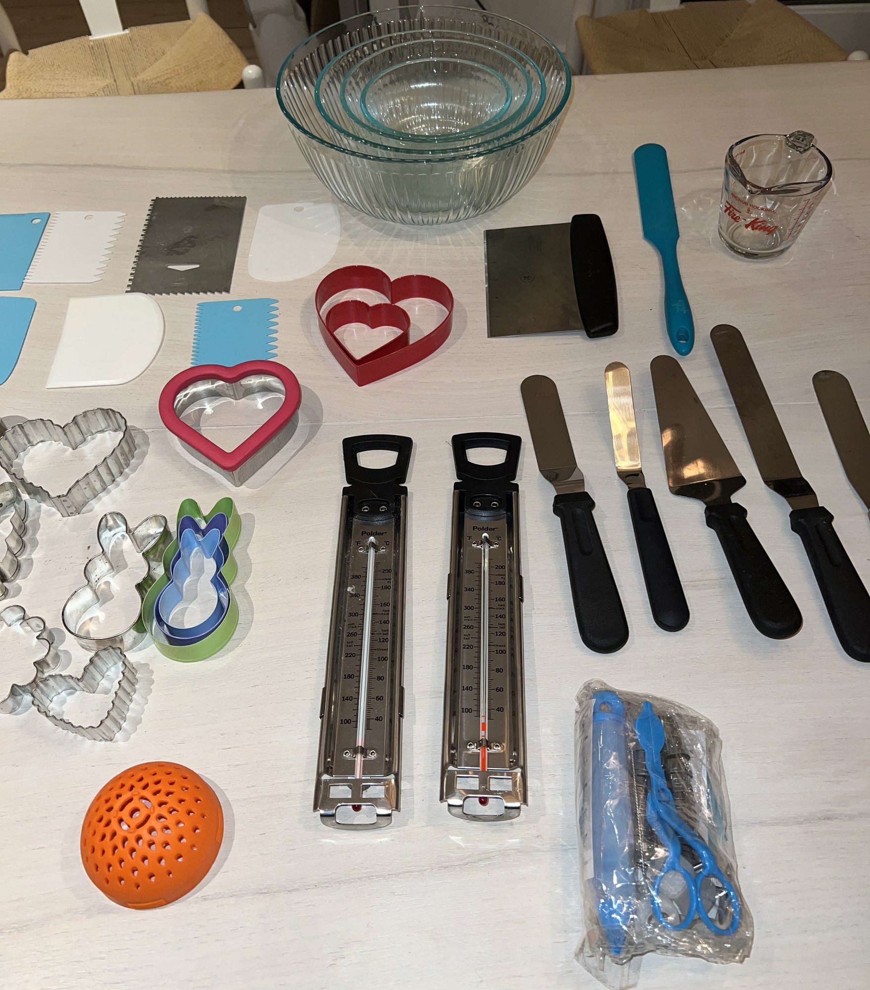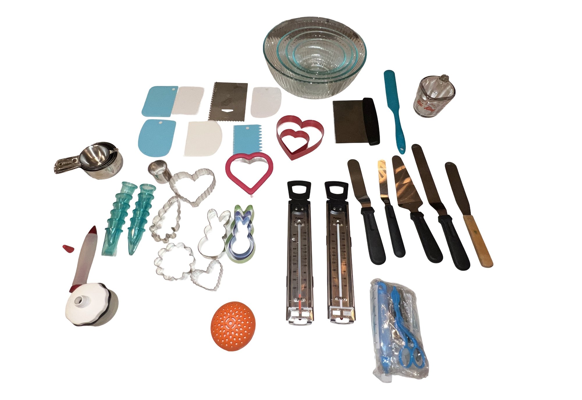 Pyrex mixing bowls, baking tools, thermometers, measuring cups and more