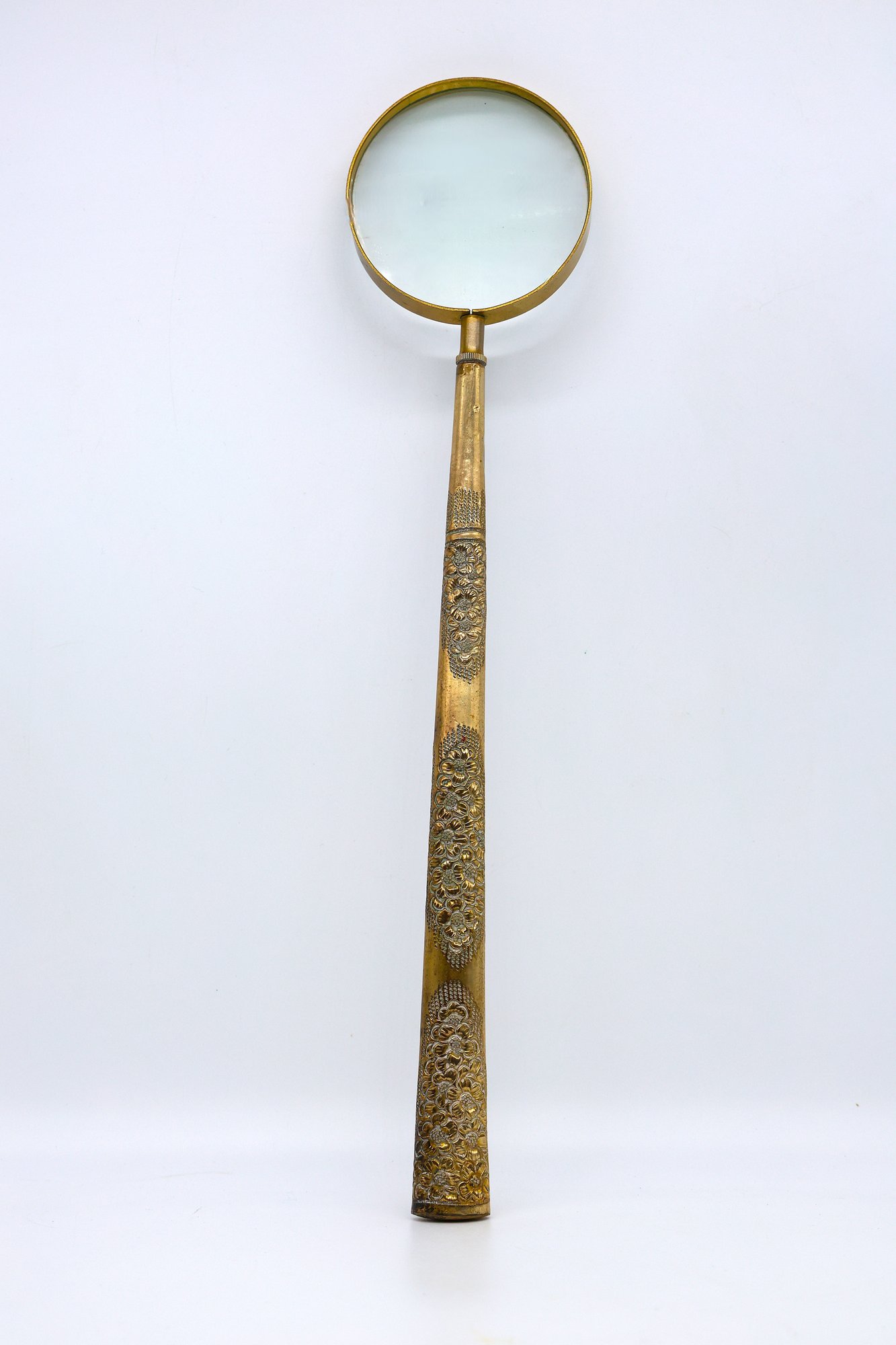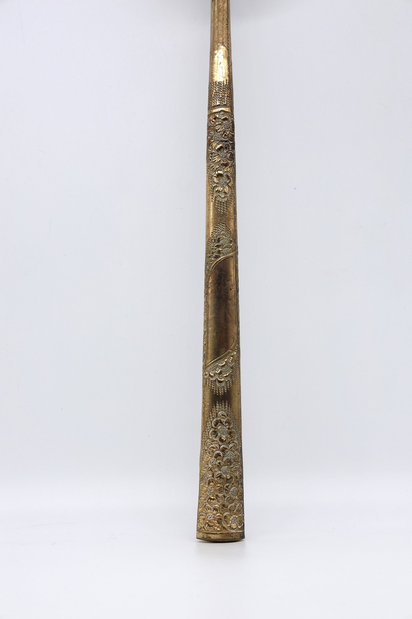 The handle is ornately embossed with a flower design - 16"L x 3.5"D (glass)