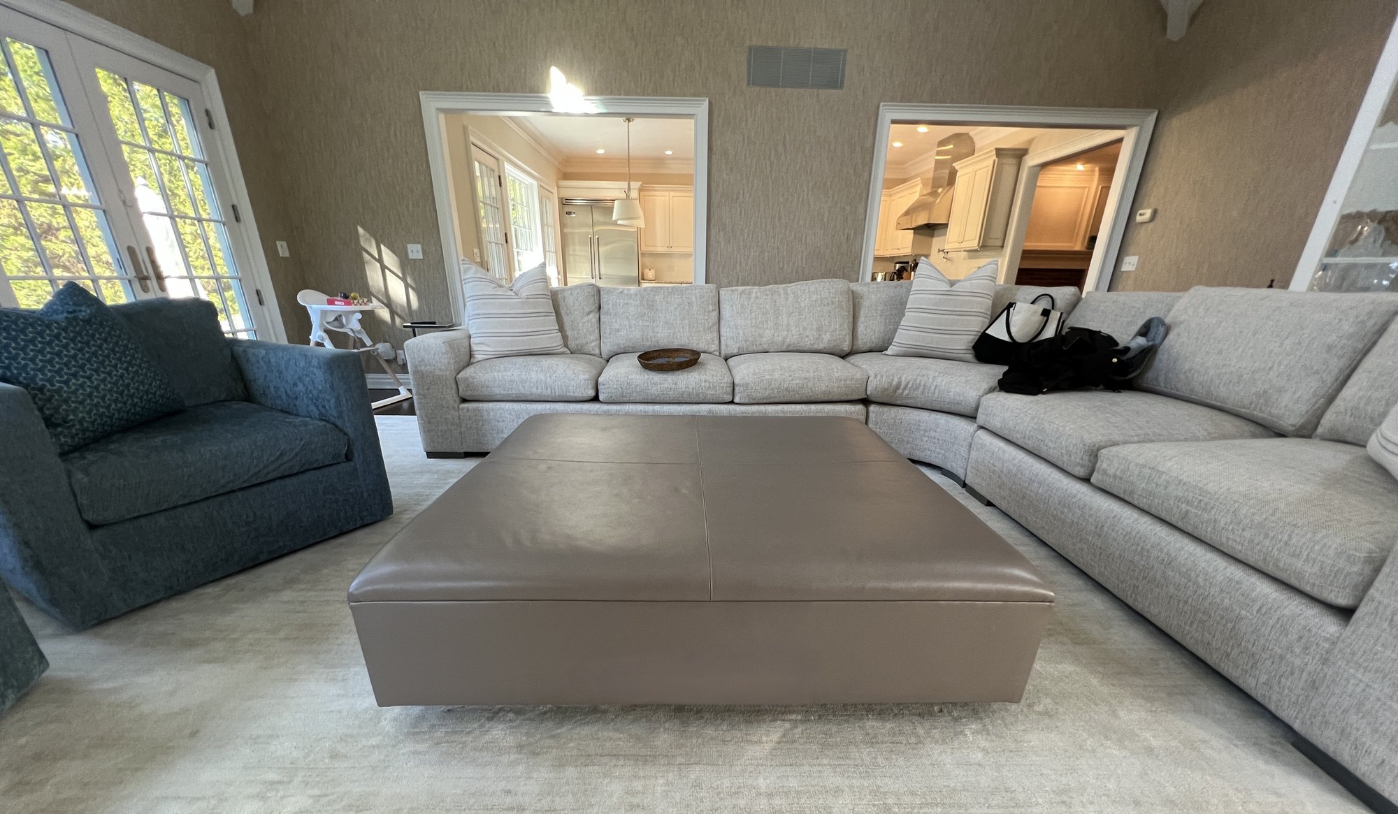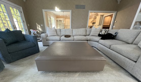 Fantastic large ottoman/coffee table. Perfect for a large room and do not have to worry about corners with kids or animals, these corners are soft!!