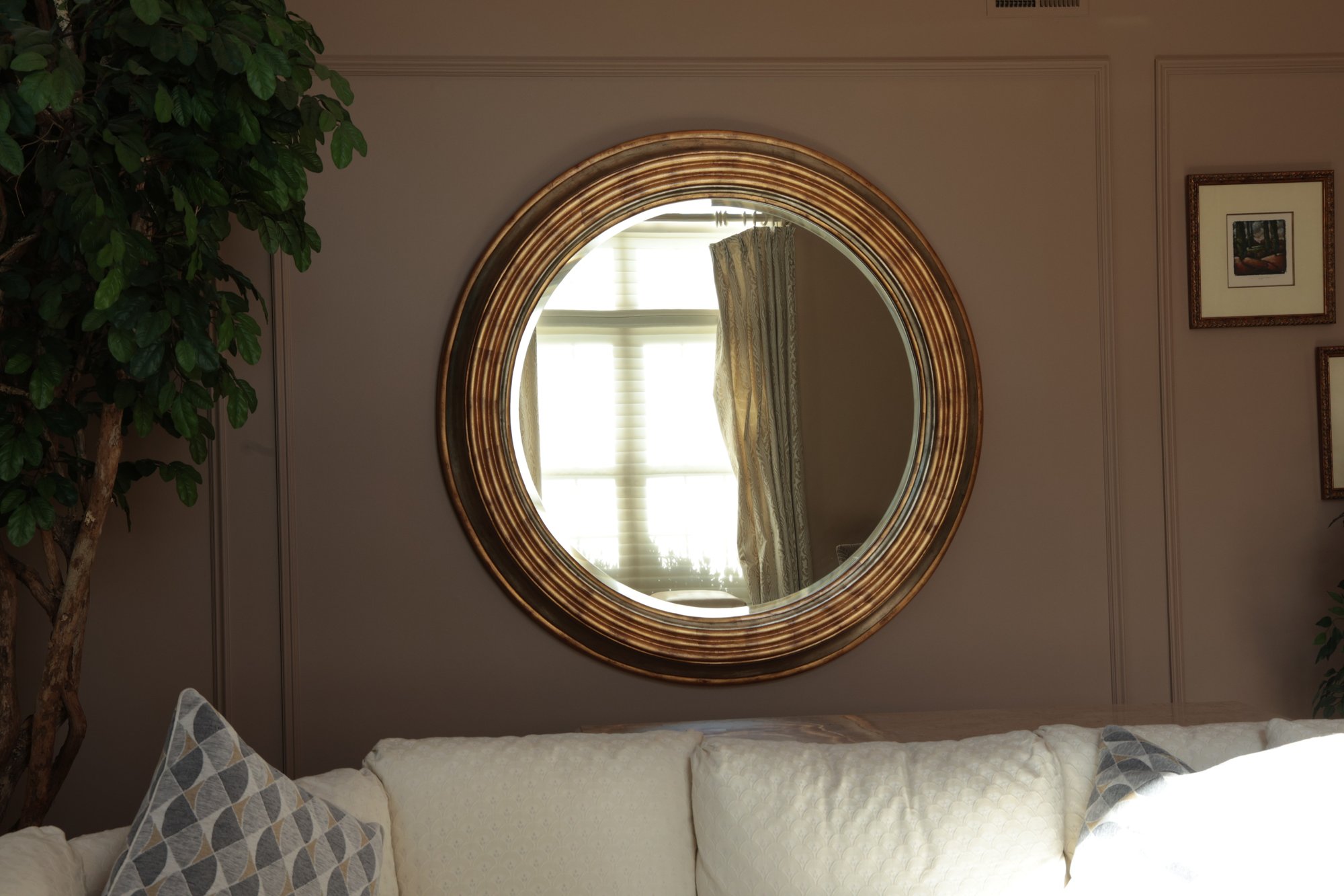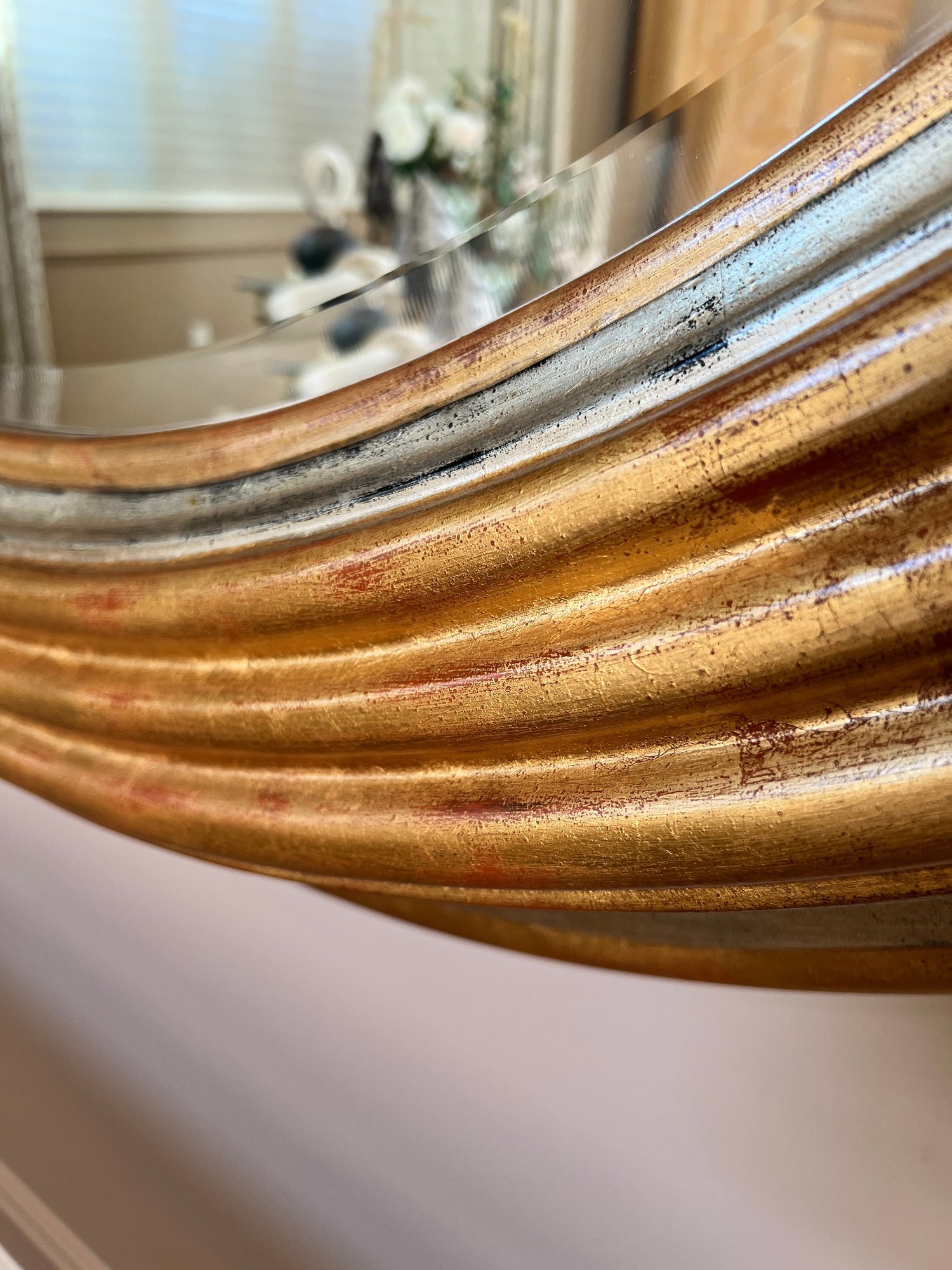 Very LARGE Round Mirror with Gold and Silver Wood Frame - this makes a fabulous statement in any room!!
