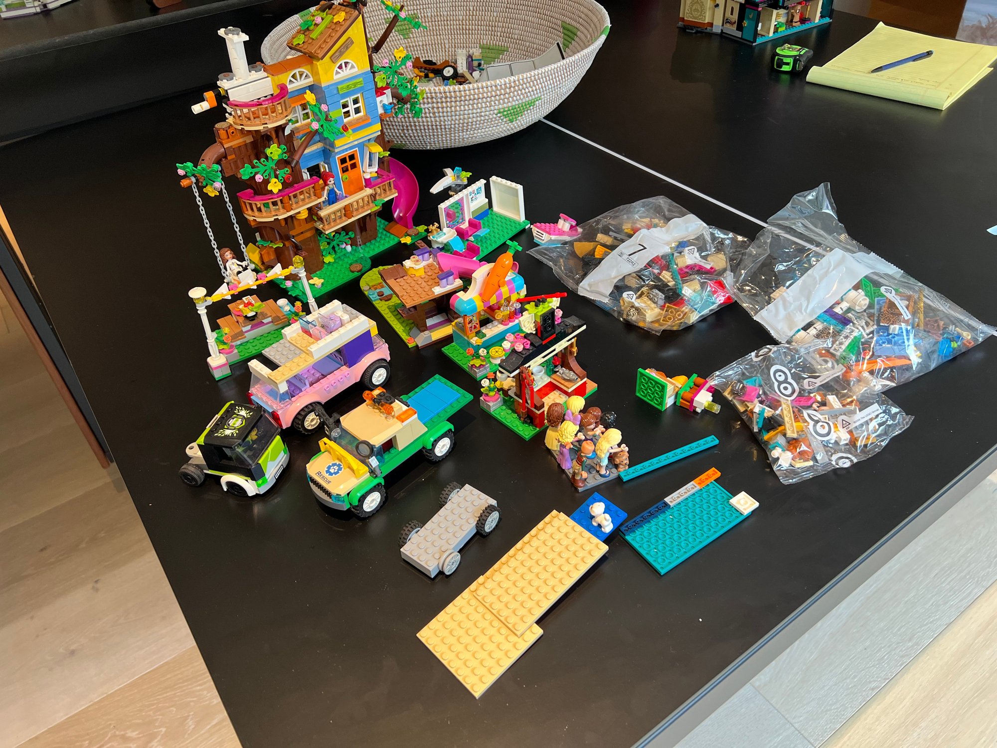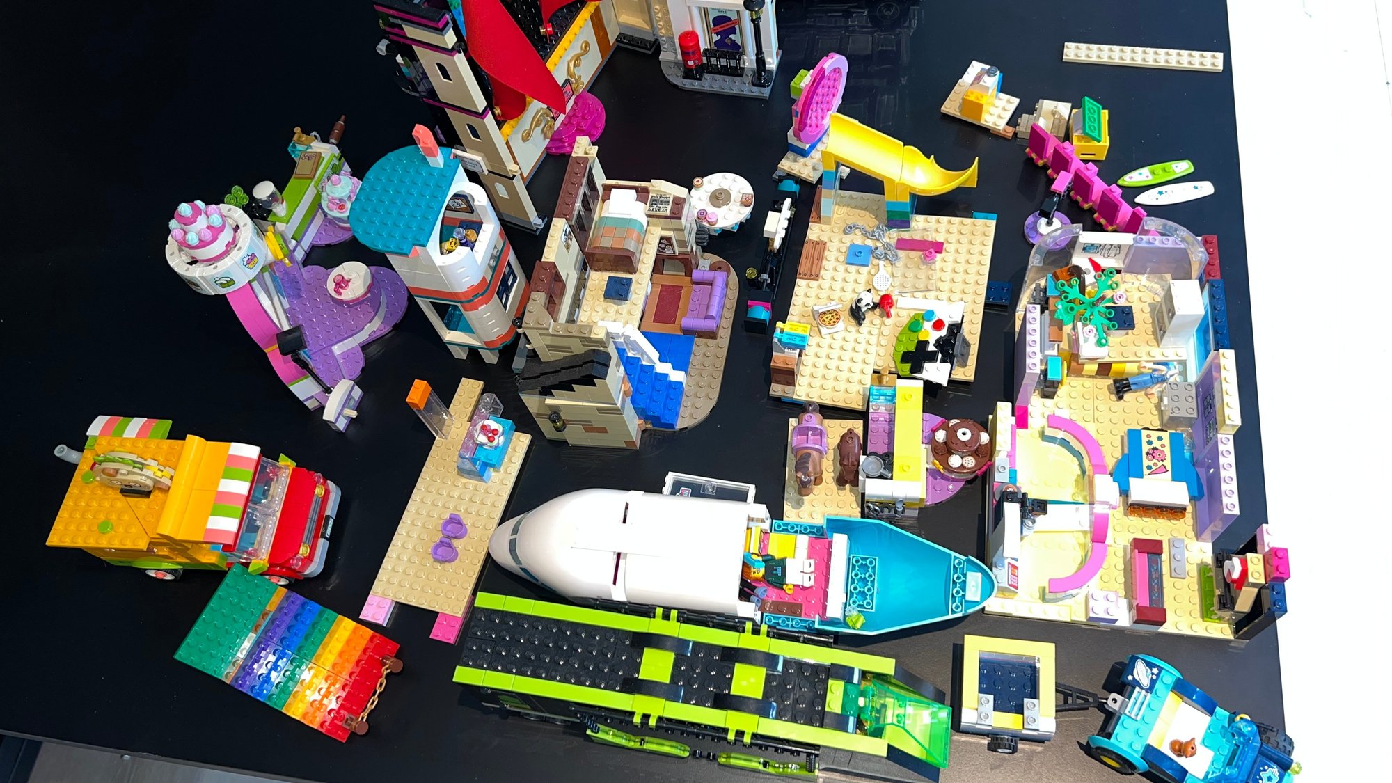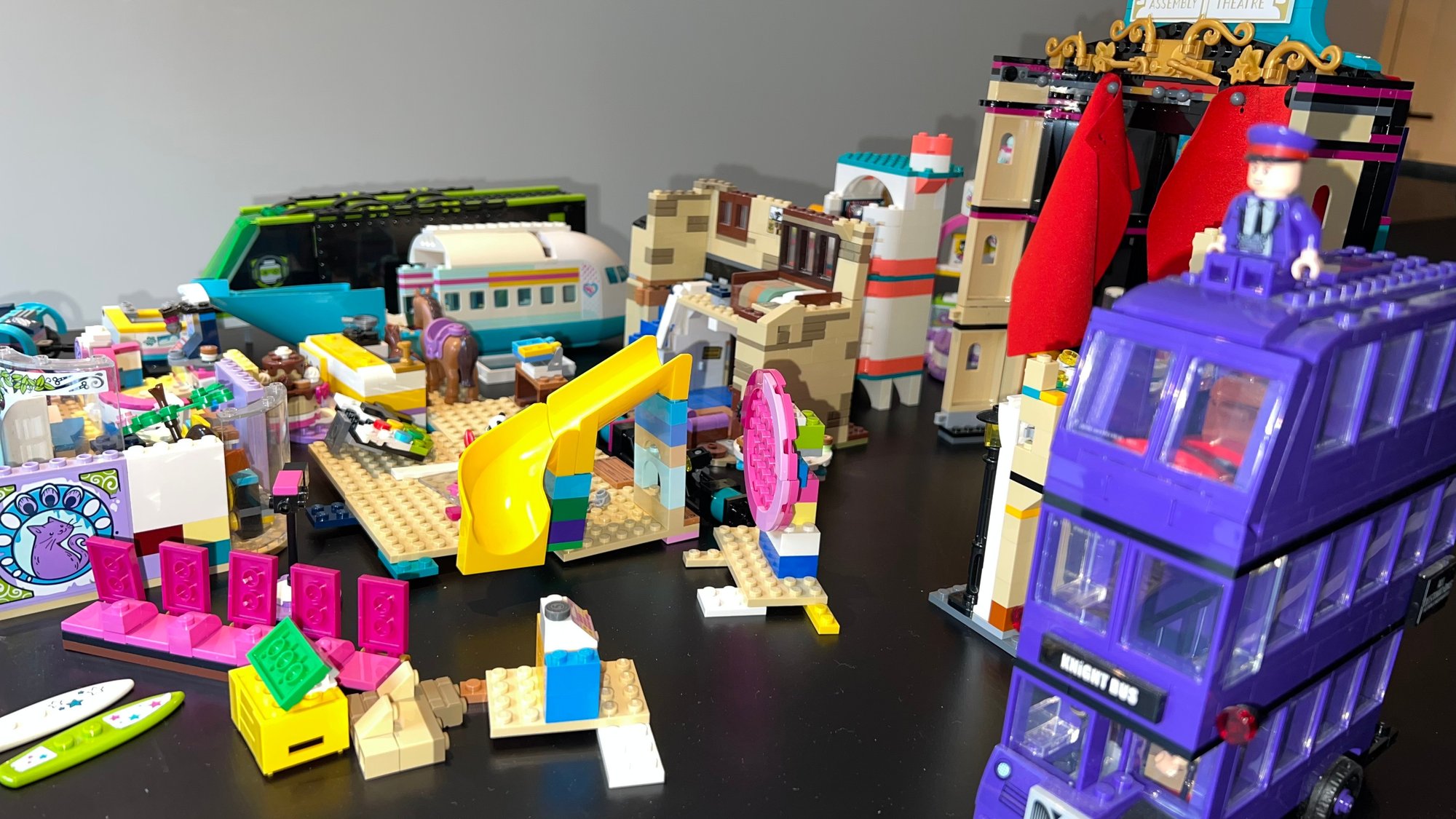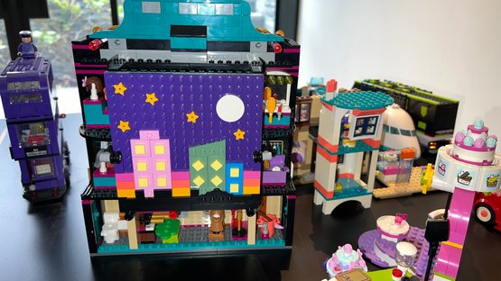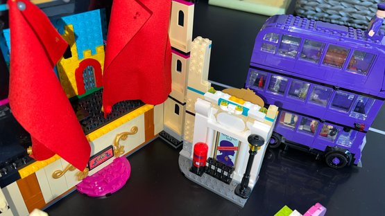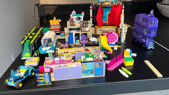 Collection includes LEGO Harry Potter 75957 The Knight Bus, LEGO Friends Andrea's Theater School playset, LEGO Friends Lighthouse Rescue Center, Baking Competition, and LEGO Friends Street Food Market. LEGO City Gaming Tournament Truck, LEGO Friends Friendship Tree House, and more