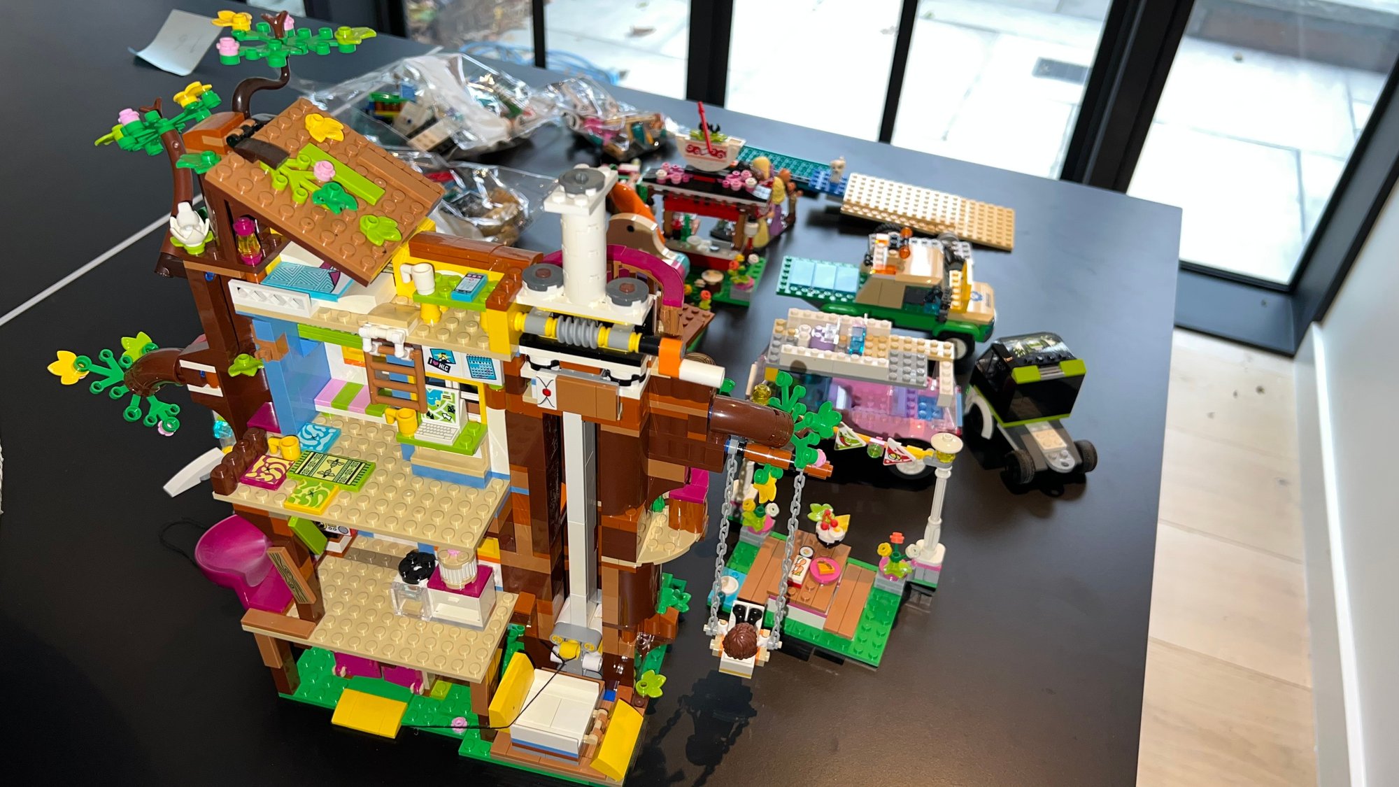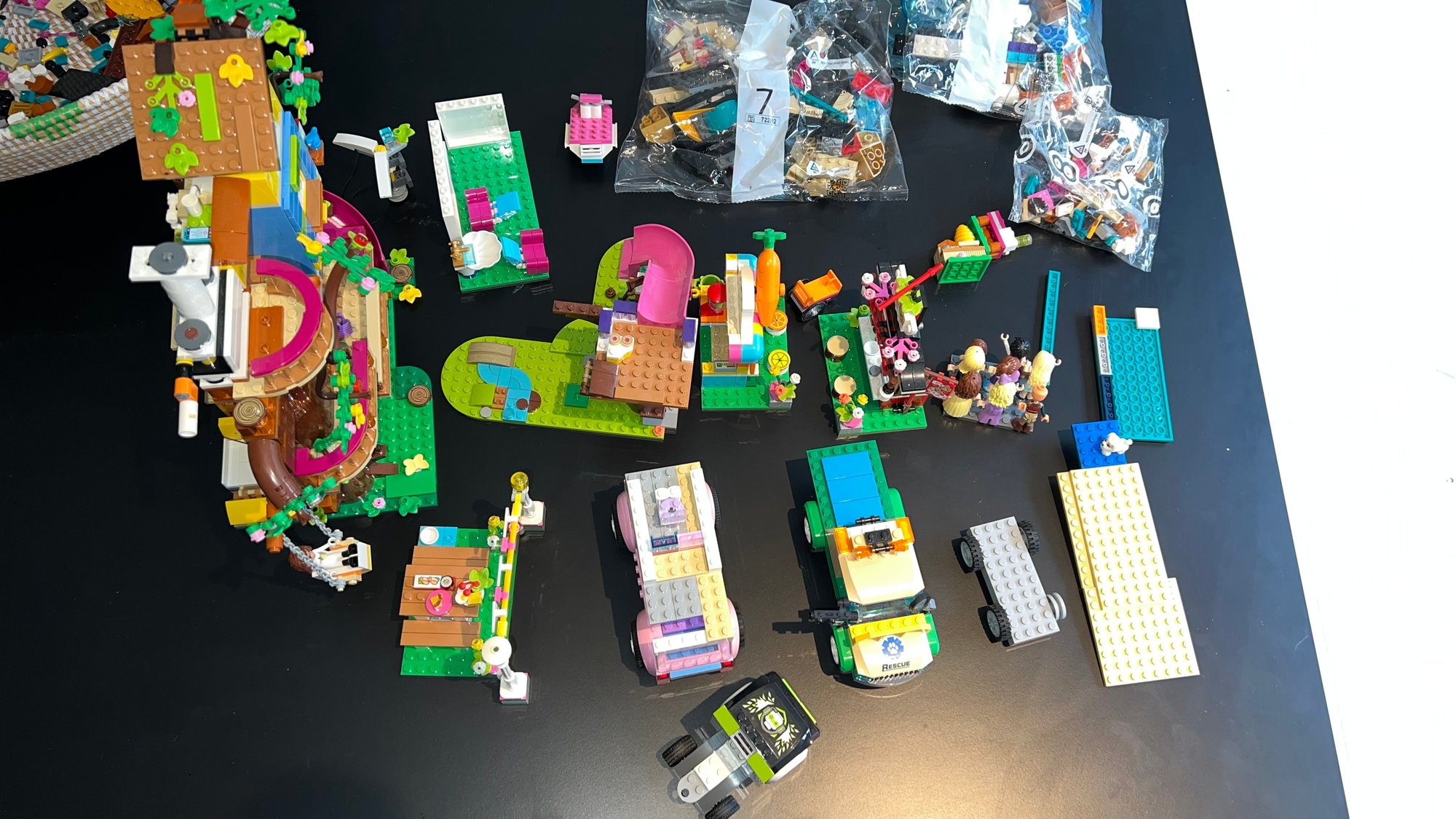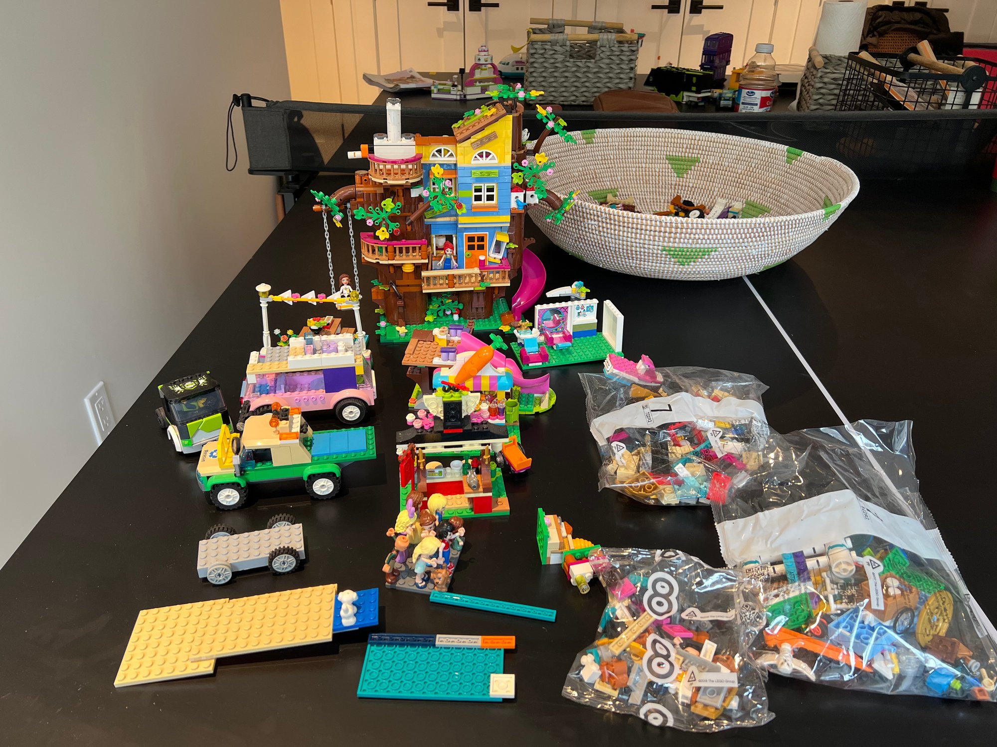 Collection includes LEGO Harry Potter 75957 The Knight Bus, LEGO Friends Andrea's Theater School playset, LEGO Friends Lighthouse Rescue Center, Baking Competition, and LEGO Friends Street Food Market. LEGO City Gaming Tournament Truck, LEGO Friends Friendship Tree House, and more