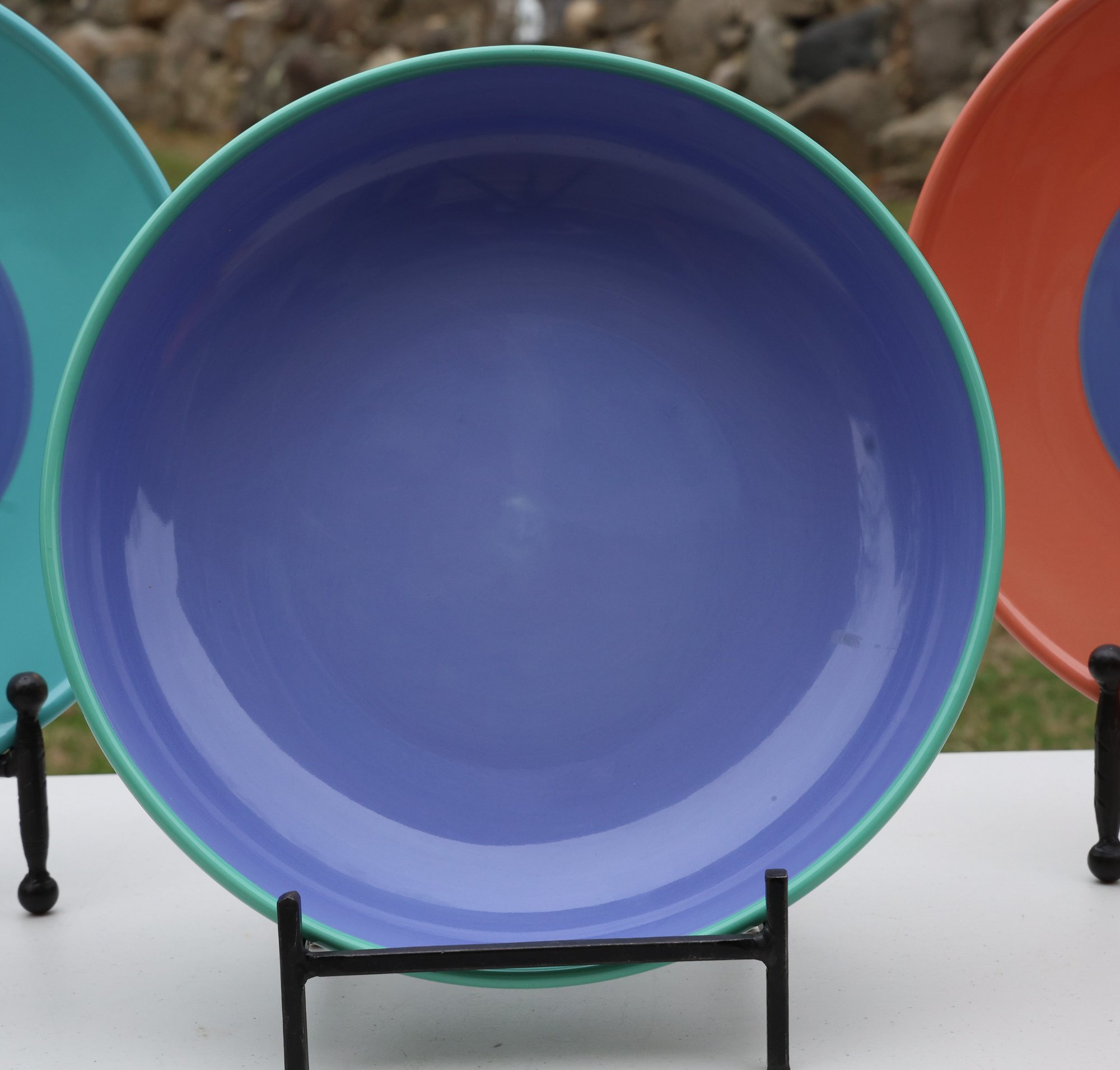 No longer in production: 1980s dinnerware founded by California artist John Stymeist, known for its minimalism. The pieces are free from chips or cracks. Highly Collectible!
