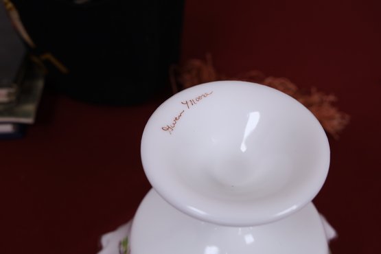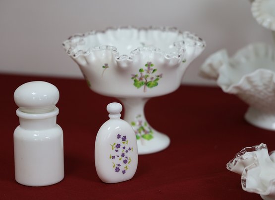 - Fenton Silver Crest Ruffled Pedestal Bowl, hand-painted and signed by Gwen Moore - 7.75"D x 6"H