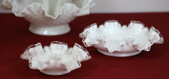 - Fenton set of two ruffled Silver Crest bowls - 8"D x 2"H & 6"D x 2"H