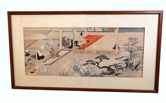 This is a Japanese woodblock print that currently resides in a private collection. The print, measuring 23" x 12.5", is in excellent condition and is unsigned. The artist responsible for its creation is Hanabusa Itchō, a painter, calligrapher, and haiku poet born in Osaka in 1652. Though initially trained in the Kanō style under Kanō Yasunobu, Itchō eventually rejected this style and became a literati, or bunjin, instead.