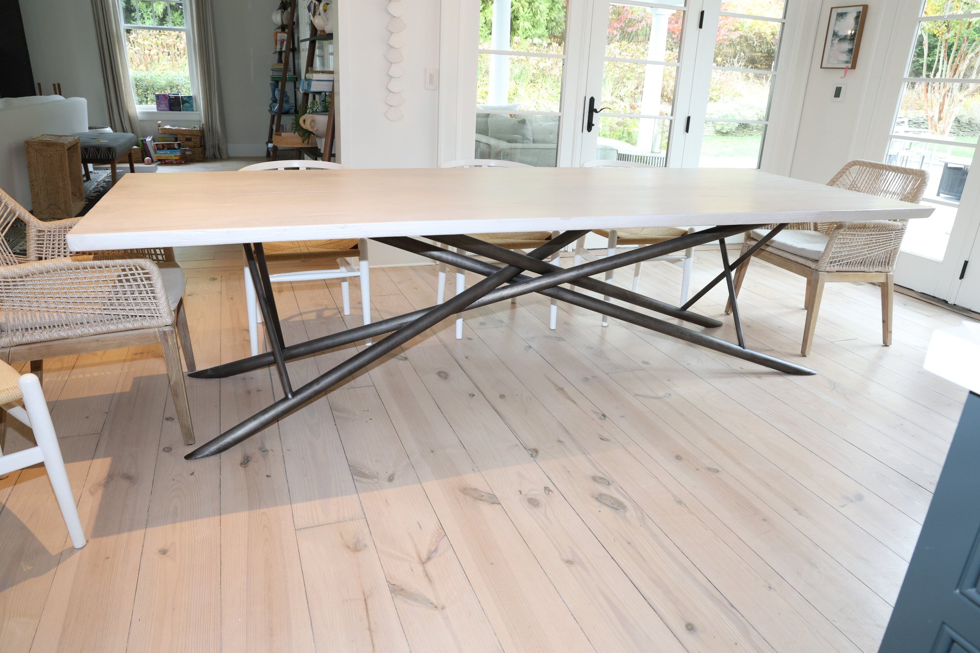 The Maya live-edge dining table from Home Nature with a sun-bleached finish is a testament to natural beauty! Each table is meticulously crafted with a live edge design, showcasing raw wood. The sun bleach finish adds a touch of rustic charm with heavy metal base. 112" x 41.7"D x 30"H