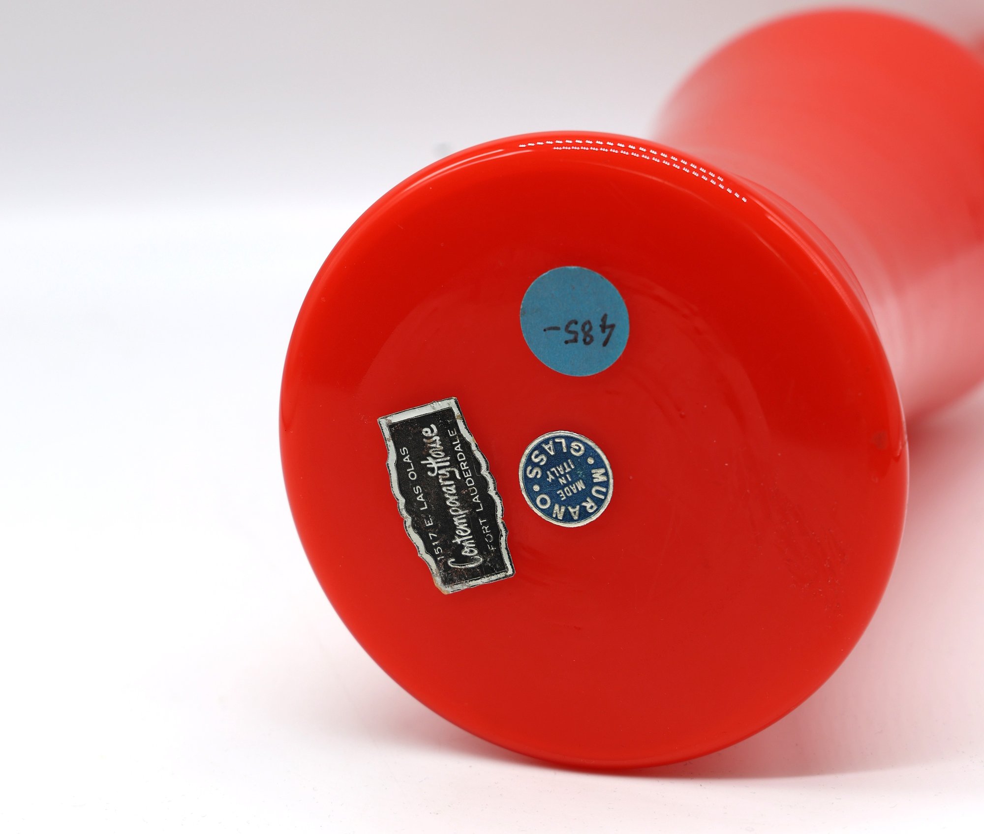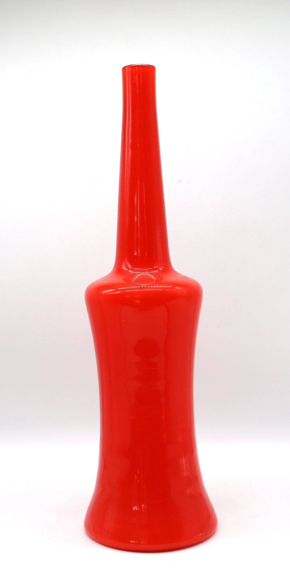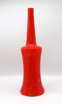 Made in Italy, Murano cased glass. Mid century modern. Brillant orange with a bottle neck vase Mid Century modern fabulous piece.