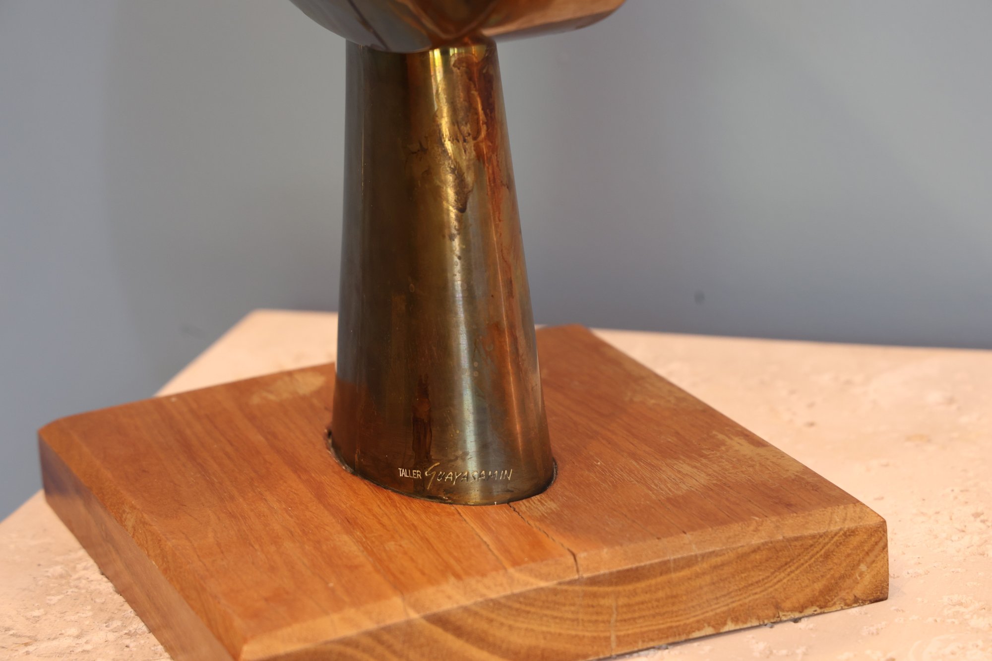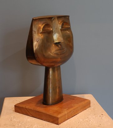 OSWALDO GUAYASAMIN Ecuadorian (1919-1999) . Brass with wood base. Signature impressed on reverse.