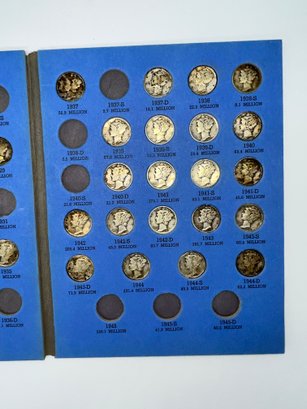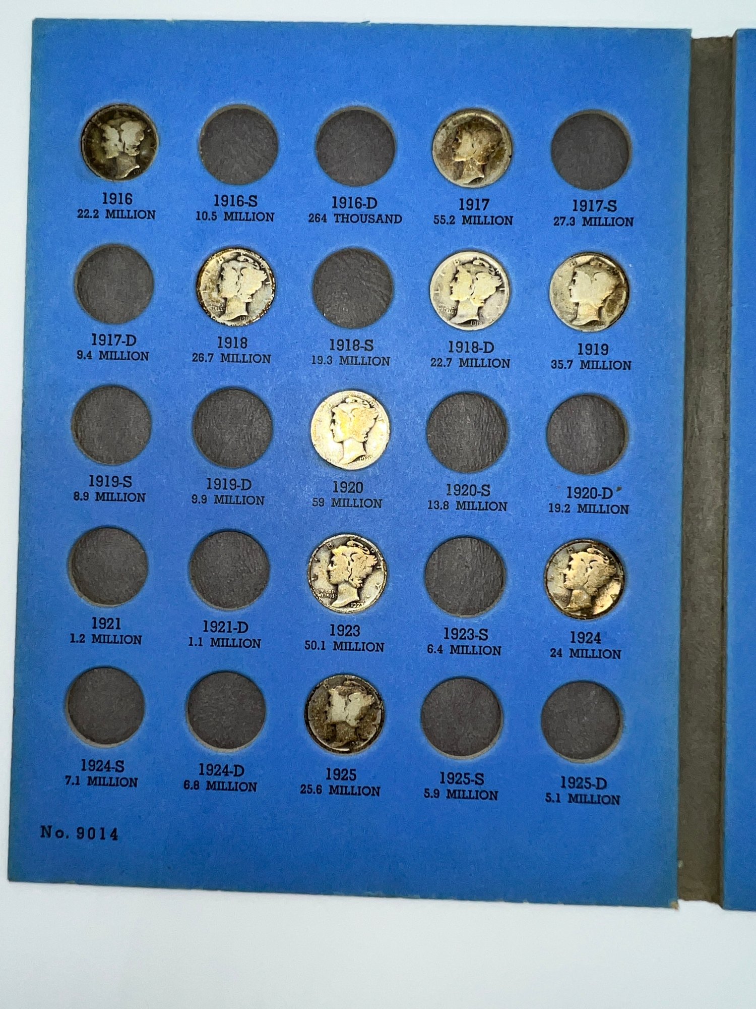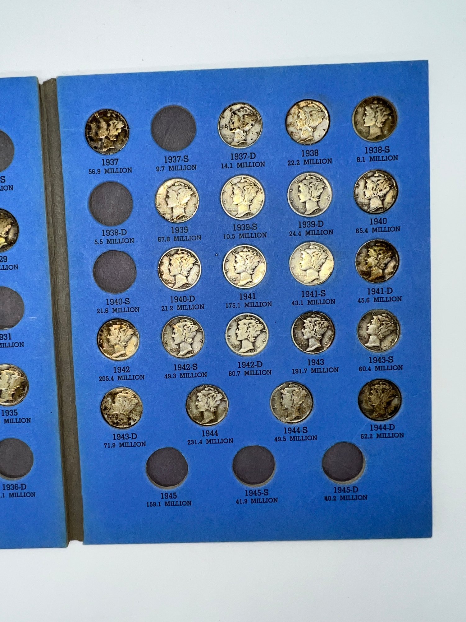 Semi-Full mercury dime collection book, circa 1916 - 1945