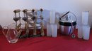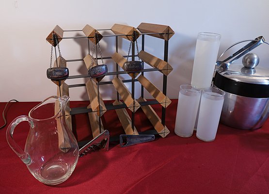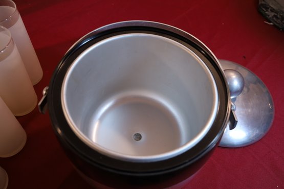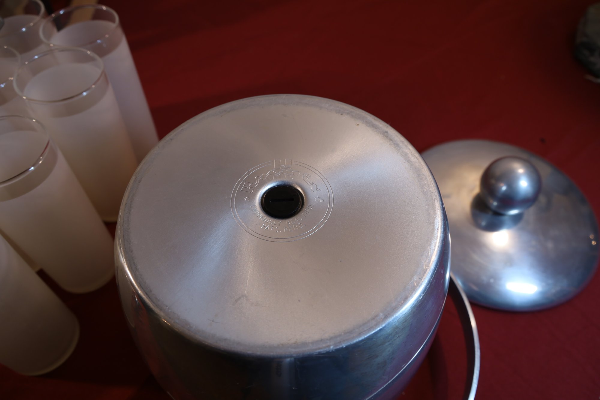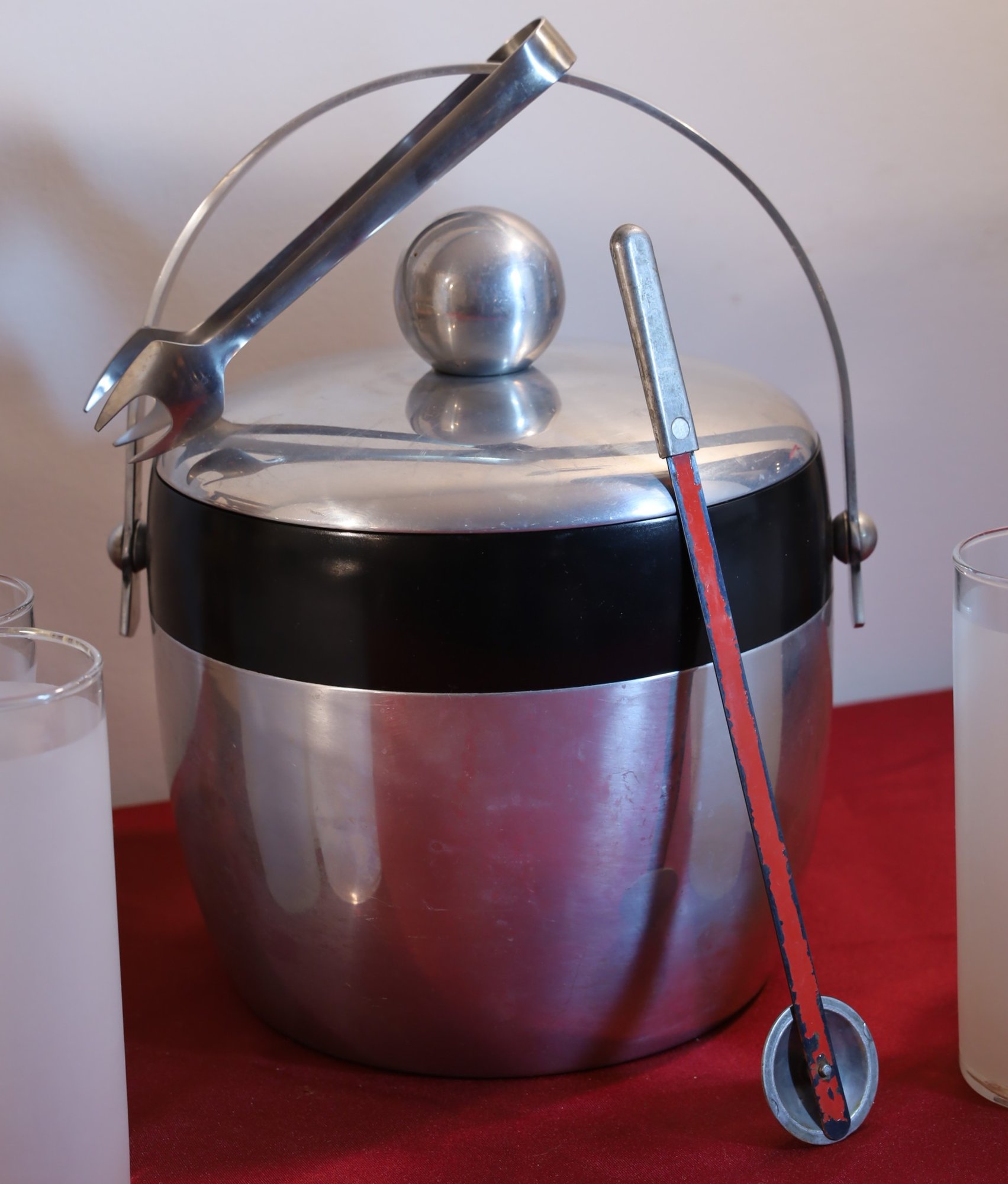 1 Mid-Century Modern Atomic Kromex tall ice bucket, 7"H with tongs