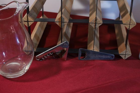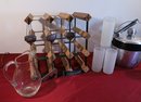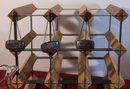 Vintage 9-bottle wine rack holder - wood and metal, 13"W x 13"H