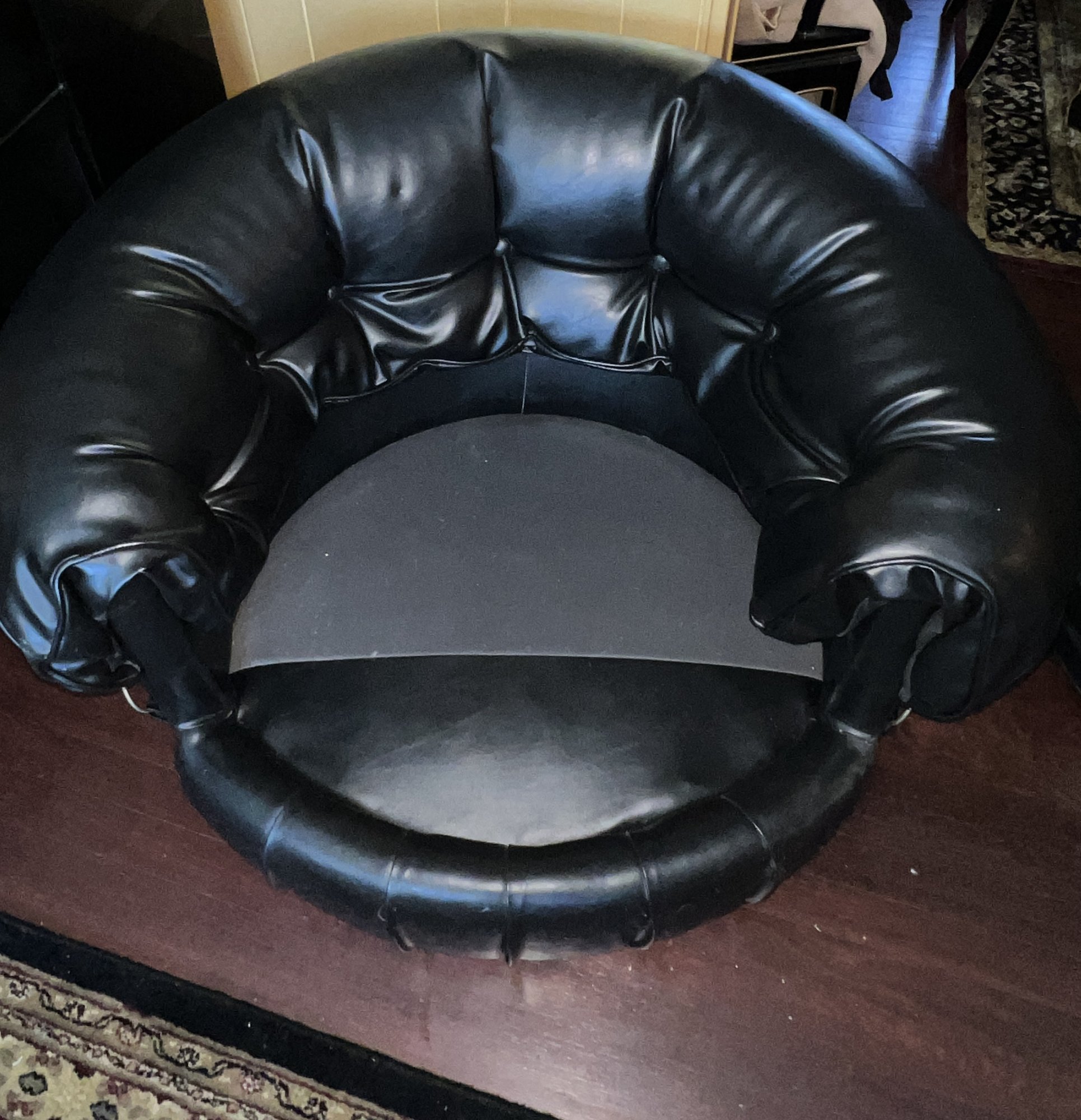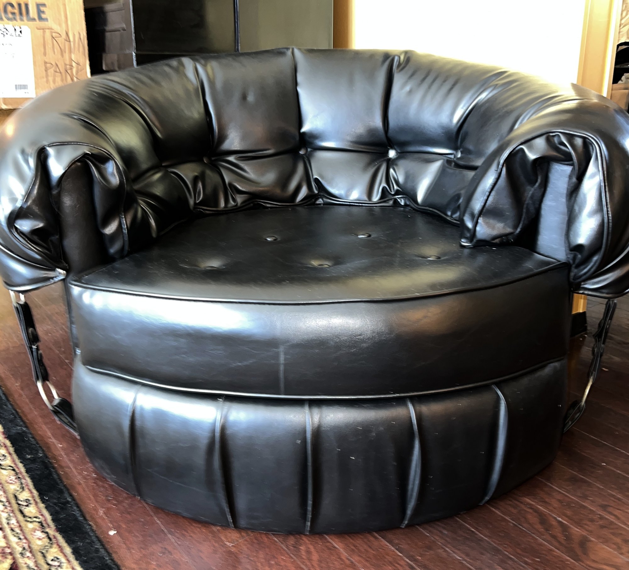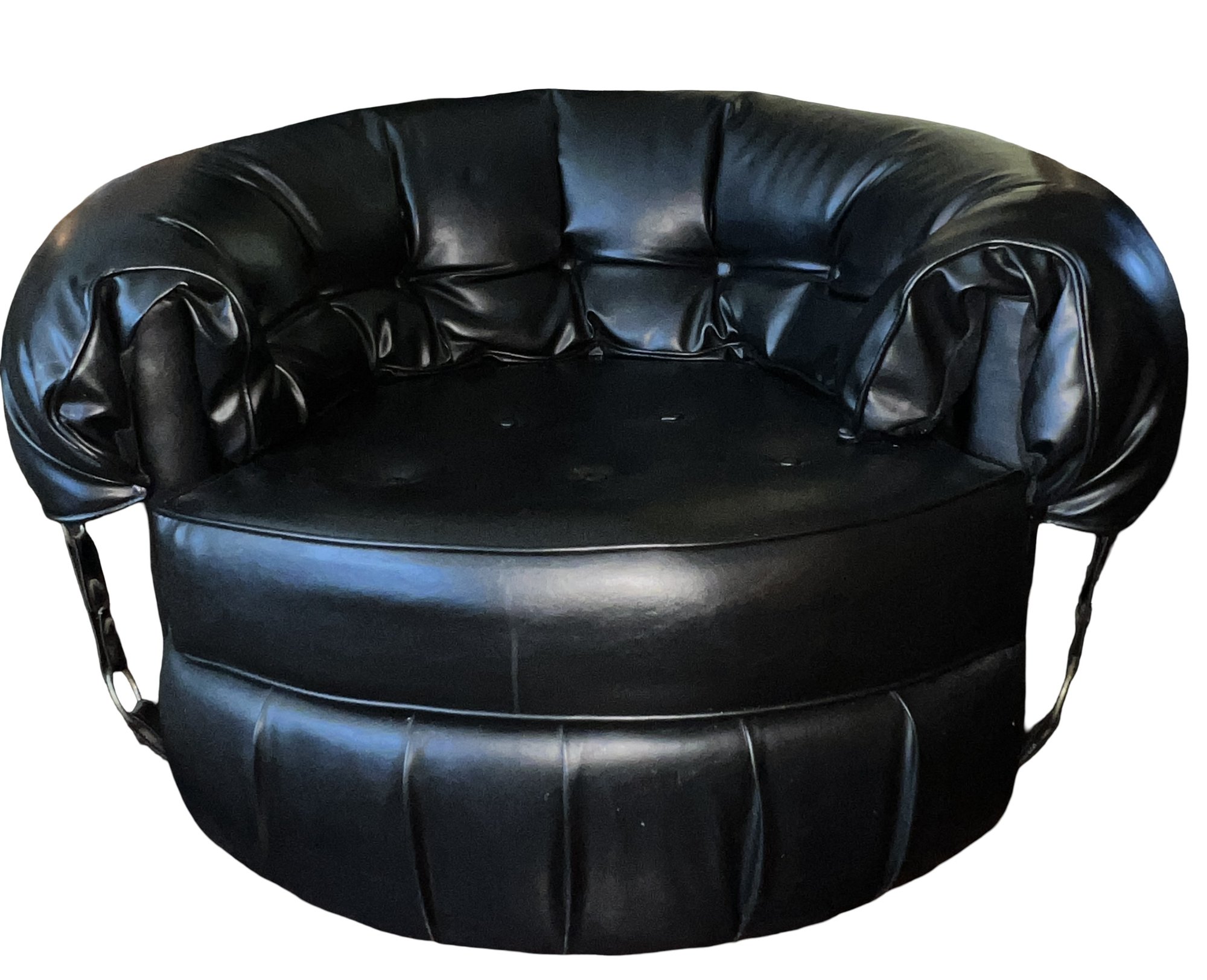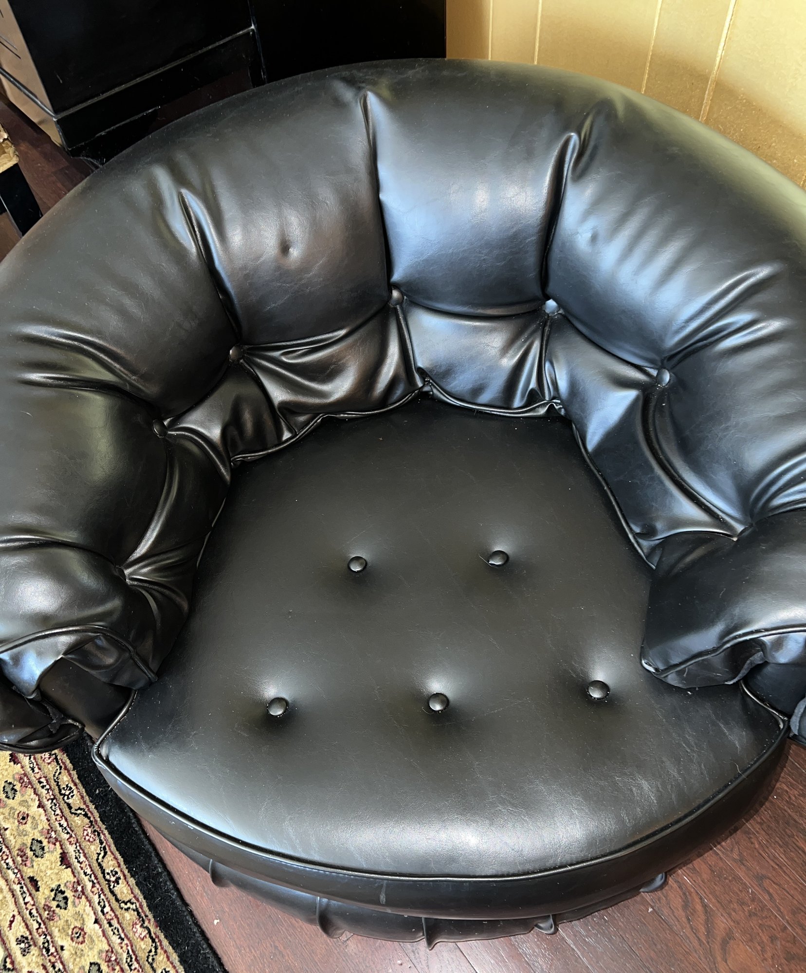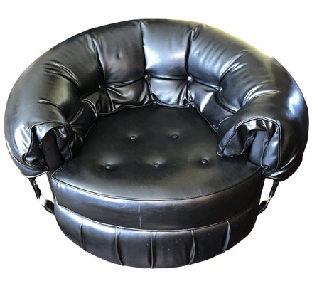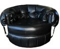 Tufted Black Lounge Chair , styled to a mid century modern circular or tub chair.
