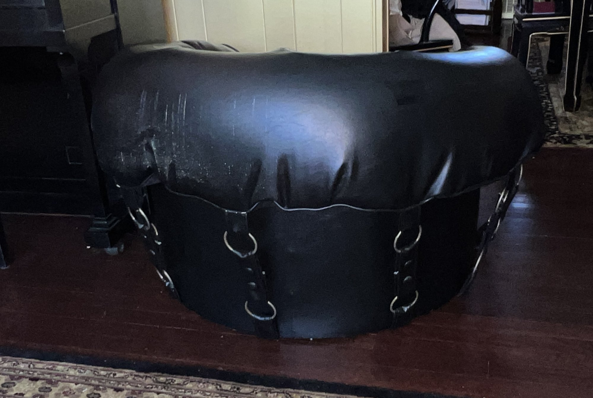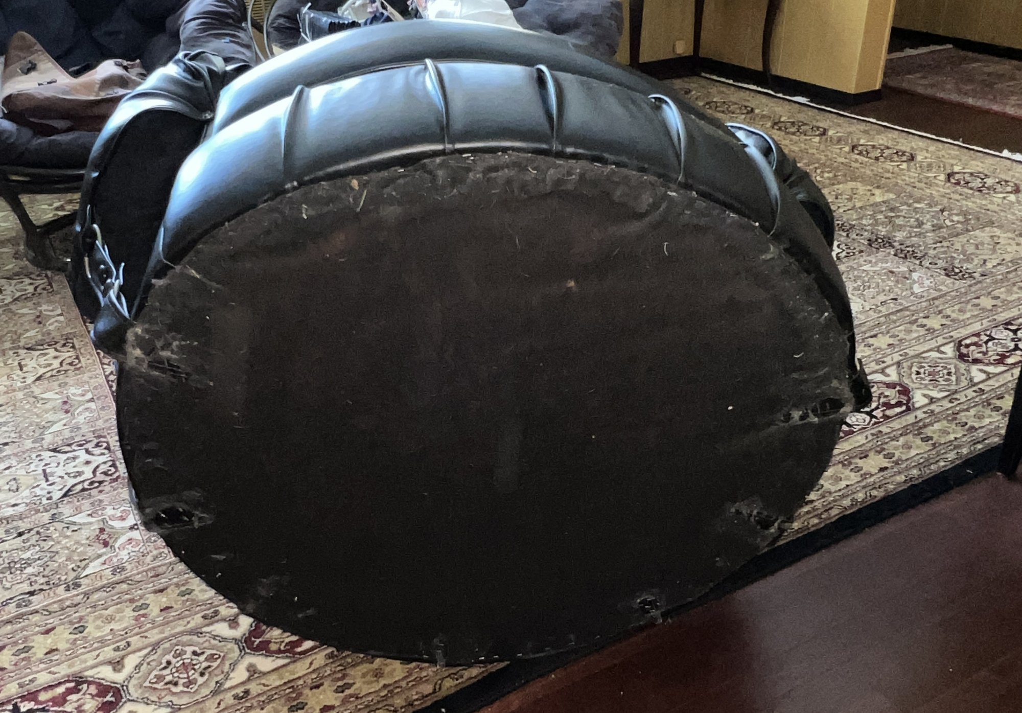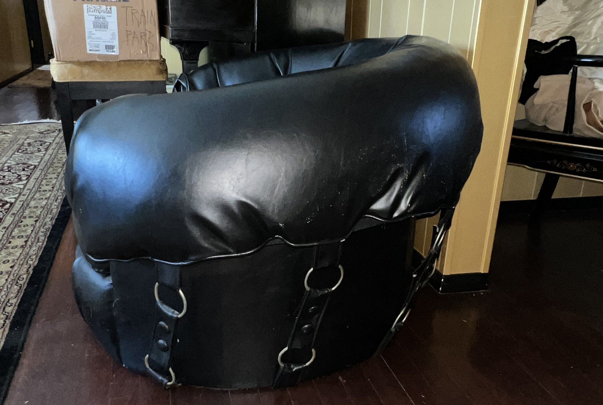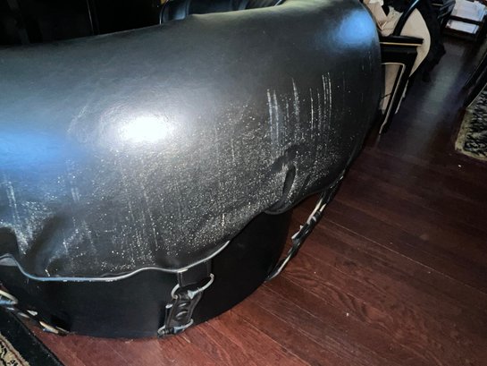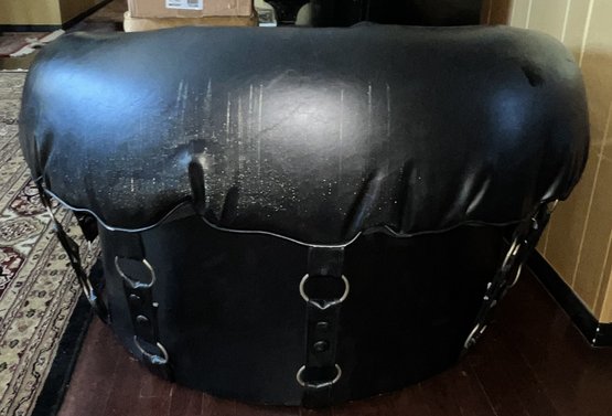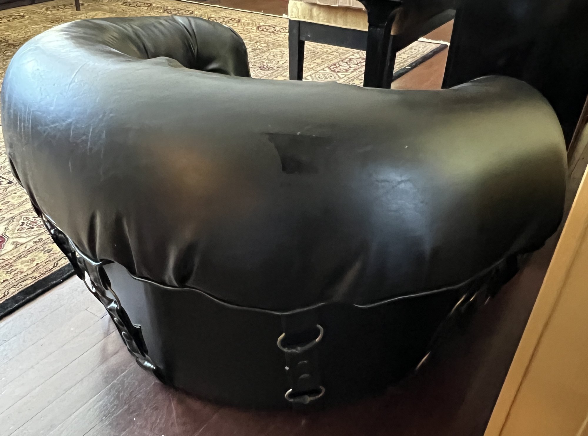 Tufted Black Lounge Chair , styled to a mid century modern circular or tub chair.