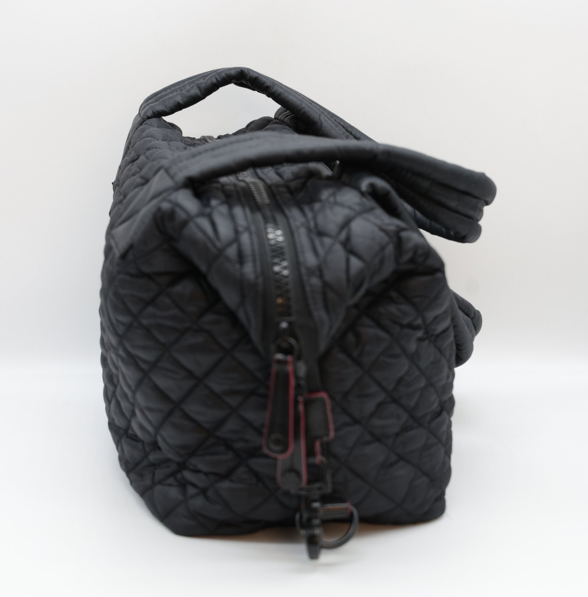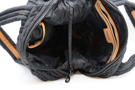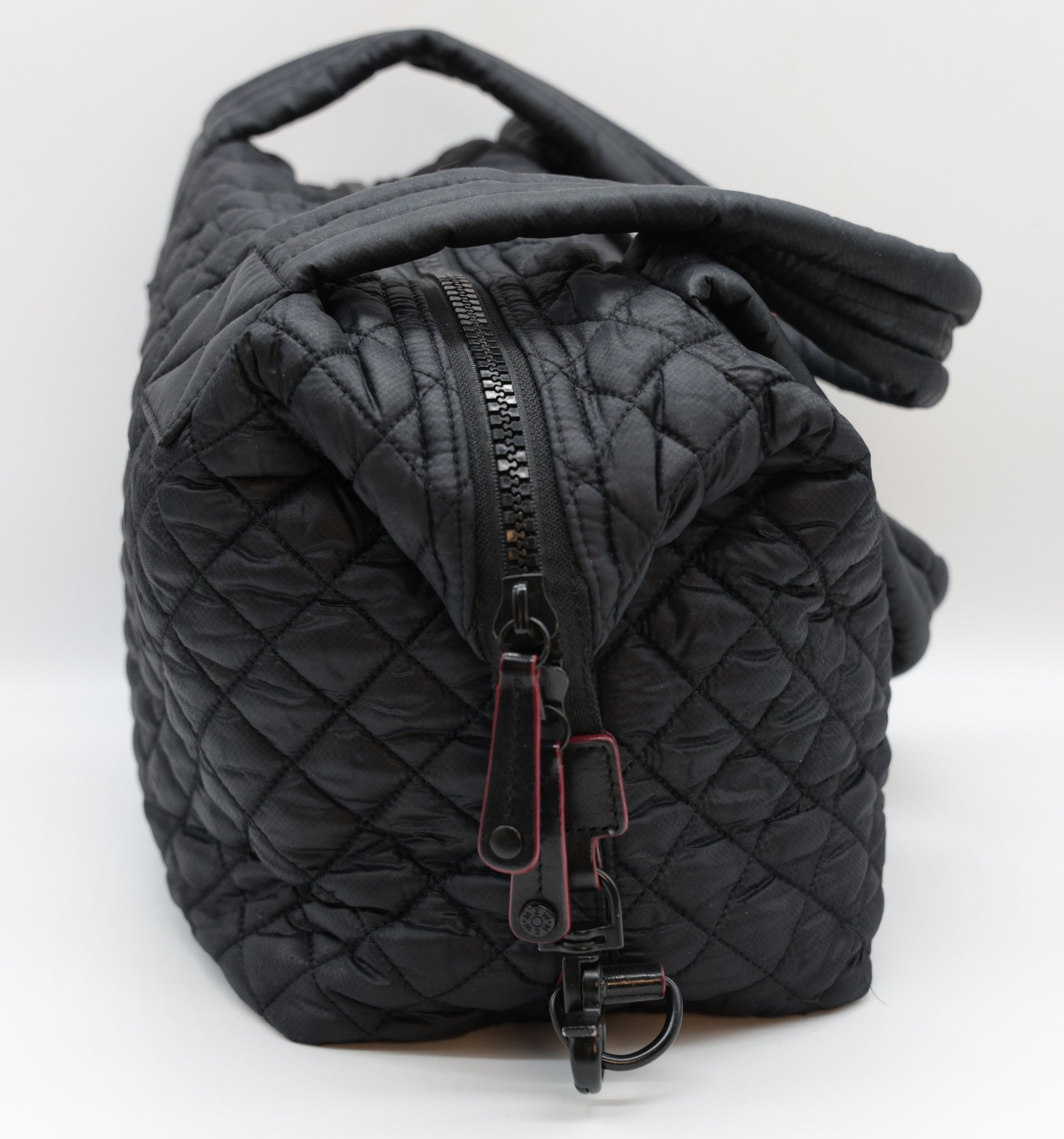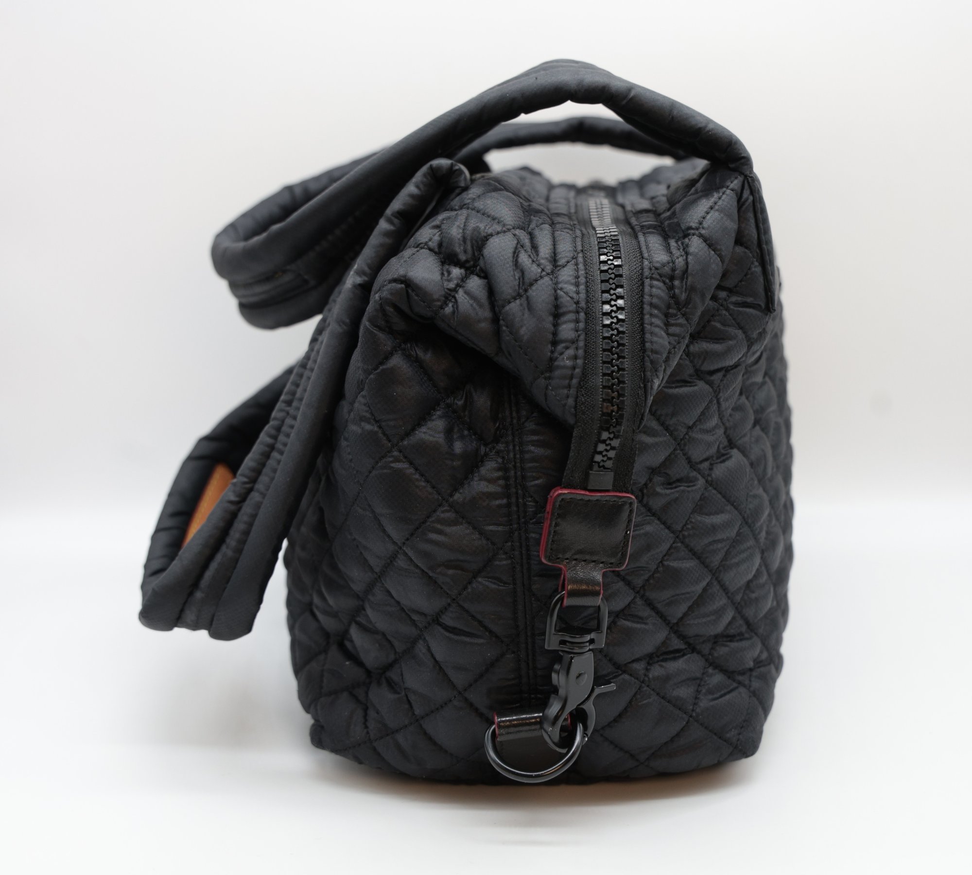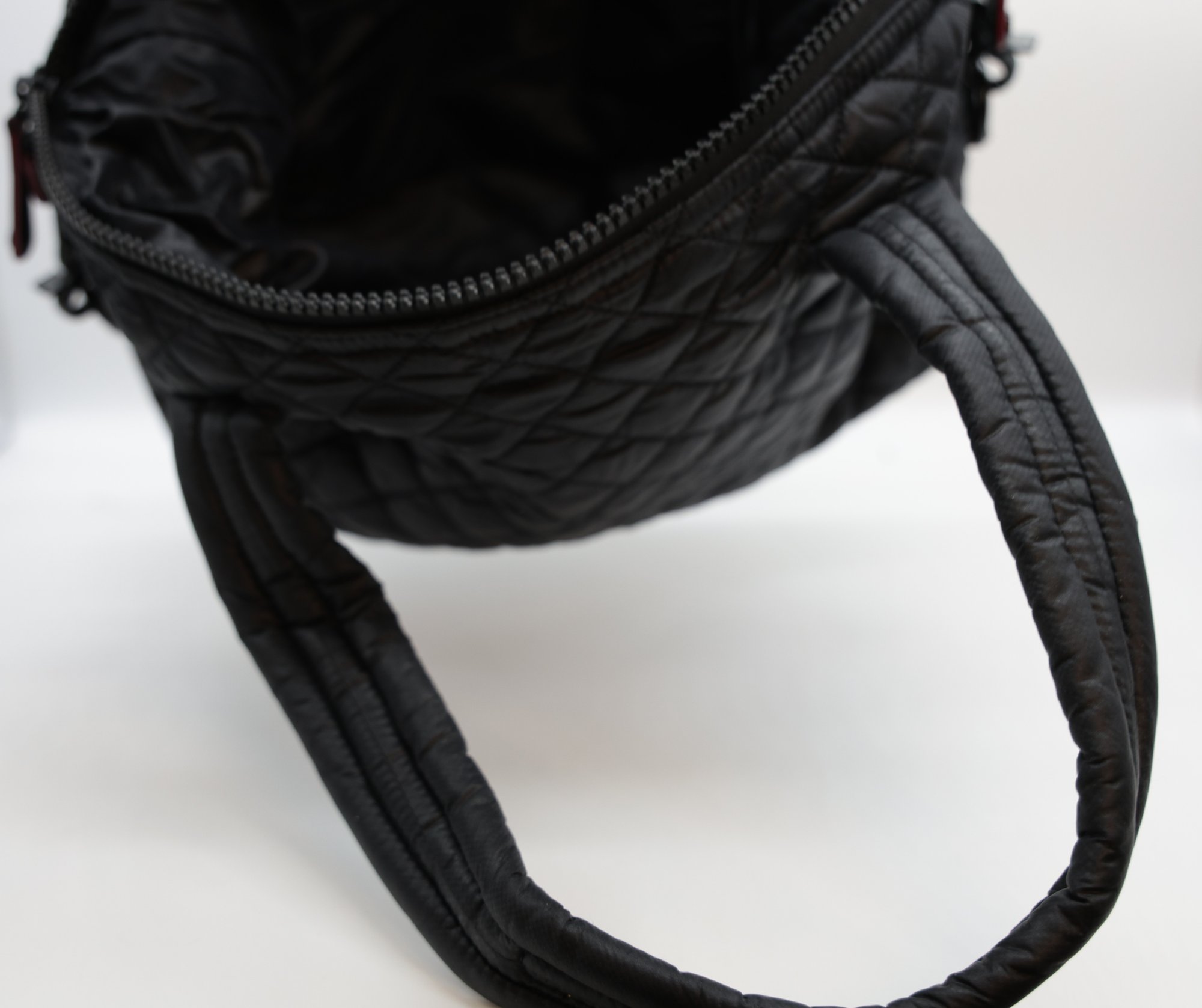 MZ Wallace Sutton Deluxe Quilted Tote with a large zipper inside, 2 pockets in black. 90% Nylon, 10% leather- Made in USA