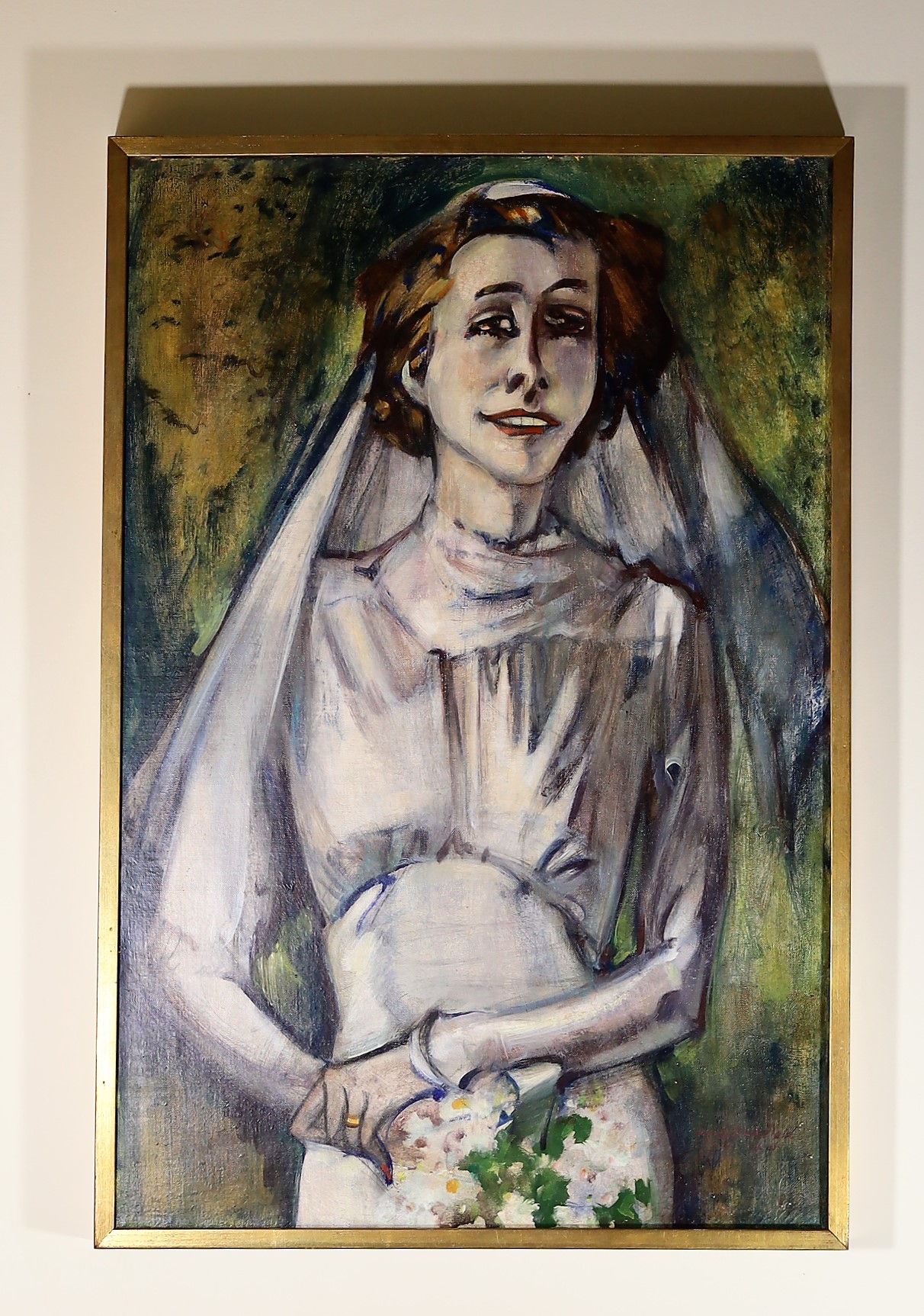 Framed oil on canvas by William H. Littlefield (1902-1969) titled "The Lovely Bride" from Boston, MA. Littlefield is known for his figures, allegory, genre painting and abstraction. This piece is dated 1946.
