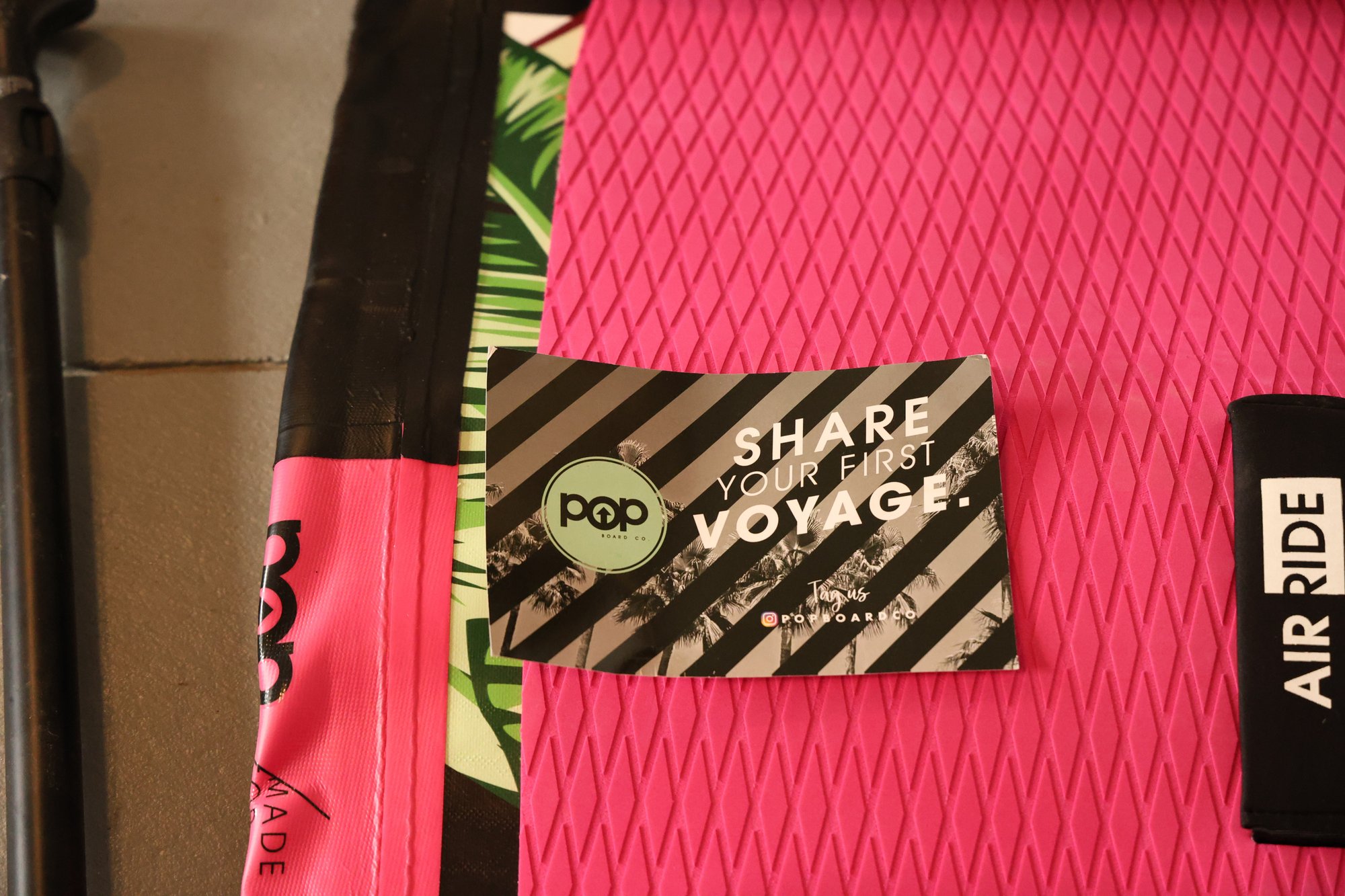 vibrant design and nimble shape make the POP Board Co. Royal Hawaiian Palm inflatable stand up paddle board a guaranteed good time. It's a fun ride for both beginner and expert paddlers. Retail $800.00