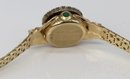 STUNNING watch features a round face concealed behind a hinged gold cover rimmed with diamonds and centered with a single emerald cabochon. It has a Swiss 17-jewel stem wind movement. The total diamond weight is approximately 0.32 carats. Approximately 0.25 carats of round-cut and cabochon emeralds. It is a limited-edition piece, with this specific one being 228 of 2500