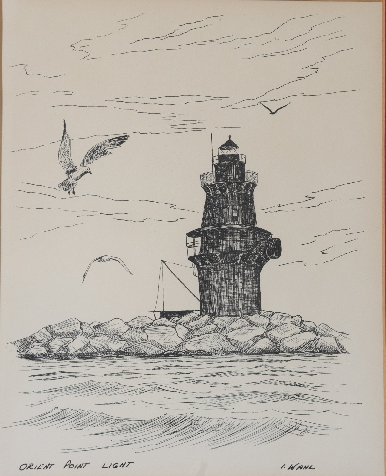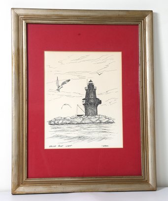 Beautifully framed and matted Ink picture of Orient Point lighthouse. Signed lower right