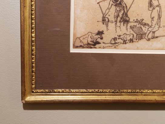 Original George Chinnery (1774-1852) " Water Bearers" Pen and Ink drawing.